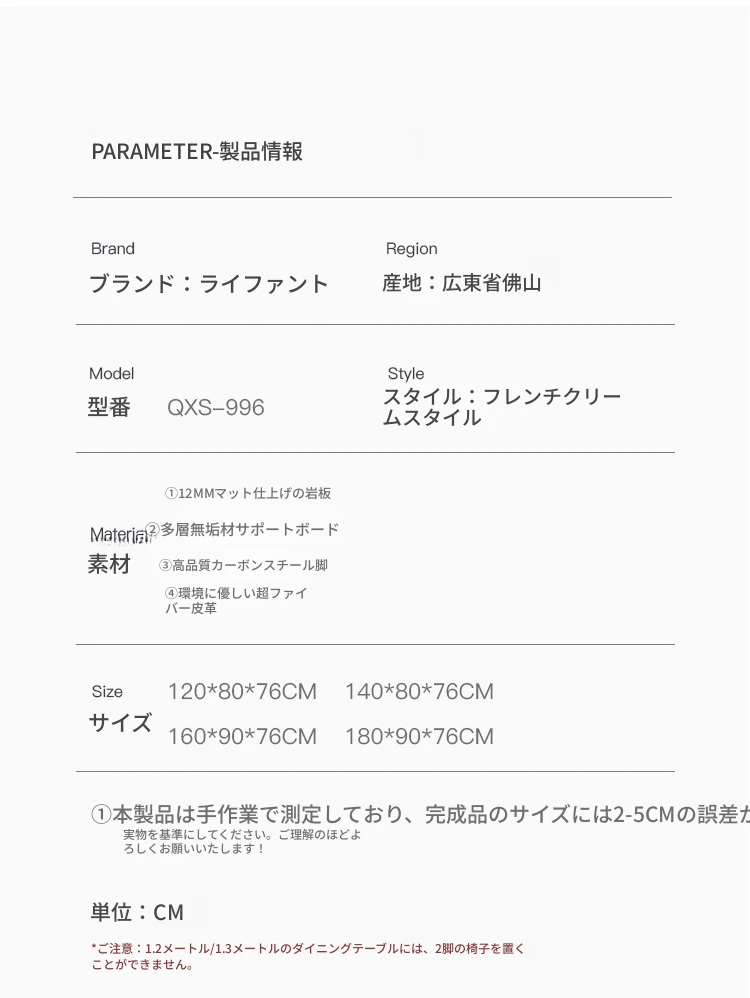 1.8メートルのダイニングテーブル+4椅子