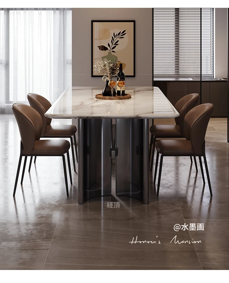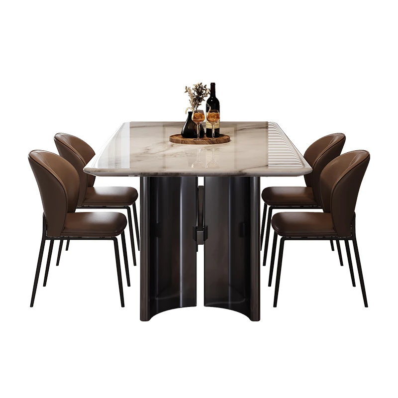 モダンでシンプルなデザインの軽奢感大理石ダイニングテーブルセット - 小型住宅に最適!スタイリッシュな長方形テーブルと椅子の組み合わせで、毎日の食事を特別なひとときに。