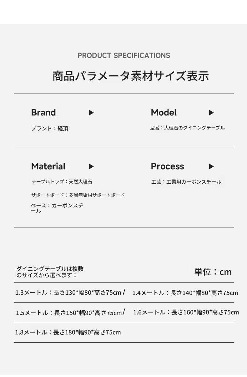 高級大理石ダイニングテーブル単体