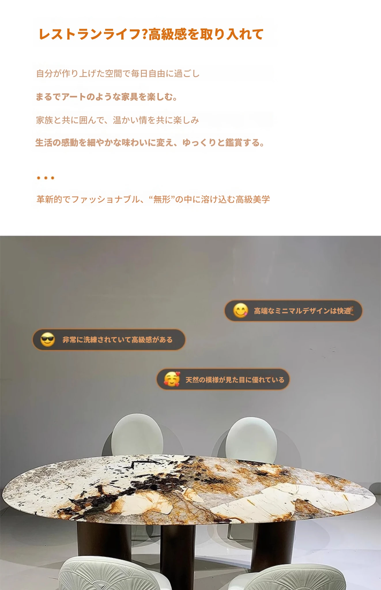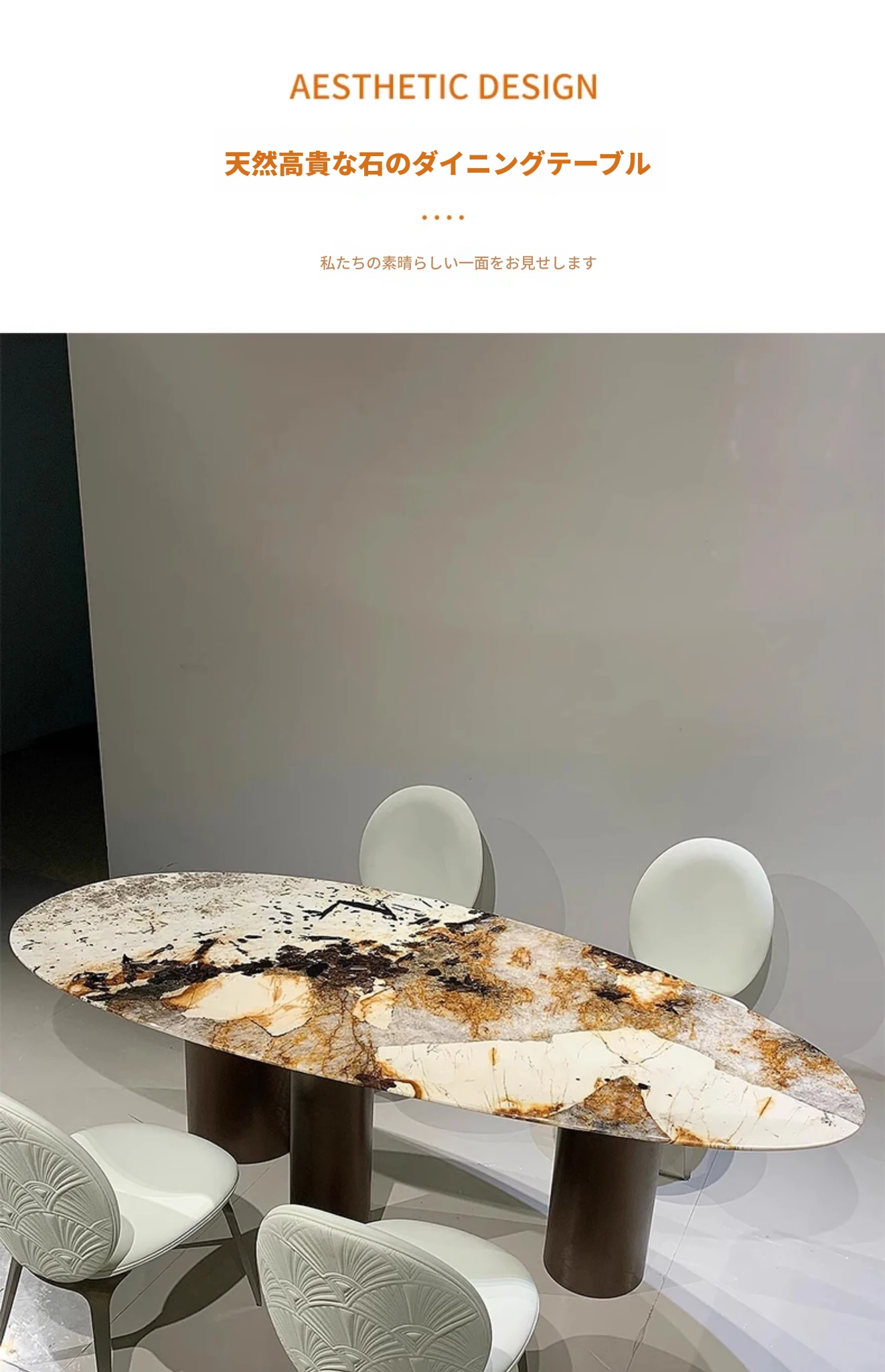 加澄パンテラ水滴型ダイニングテーブル|高級天然大理石使用|モダンでシンプルなイタリアンアートデザイン|優雅な食卓を演出します!