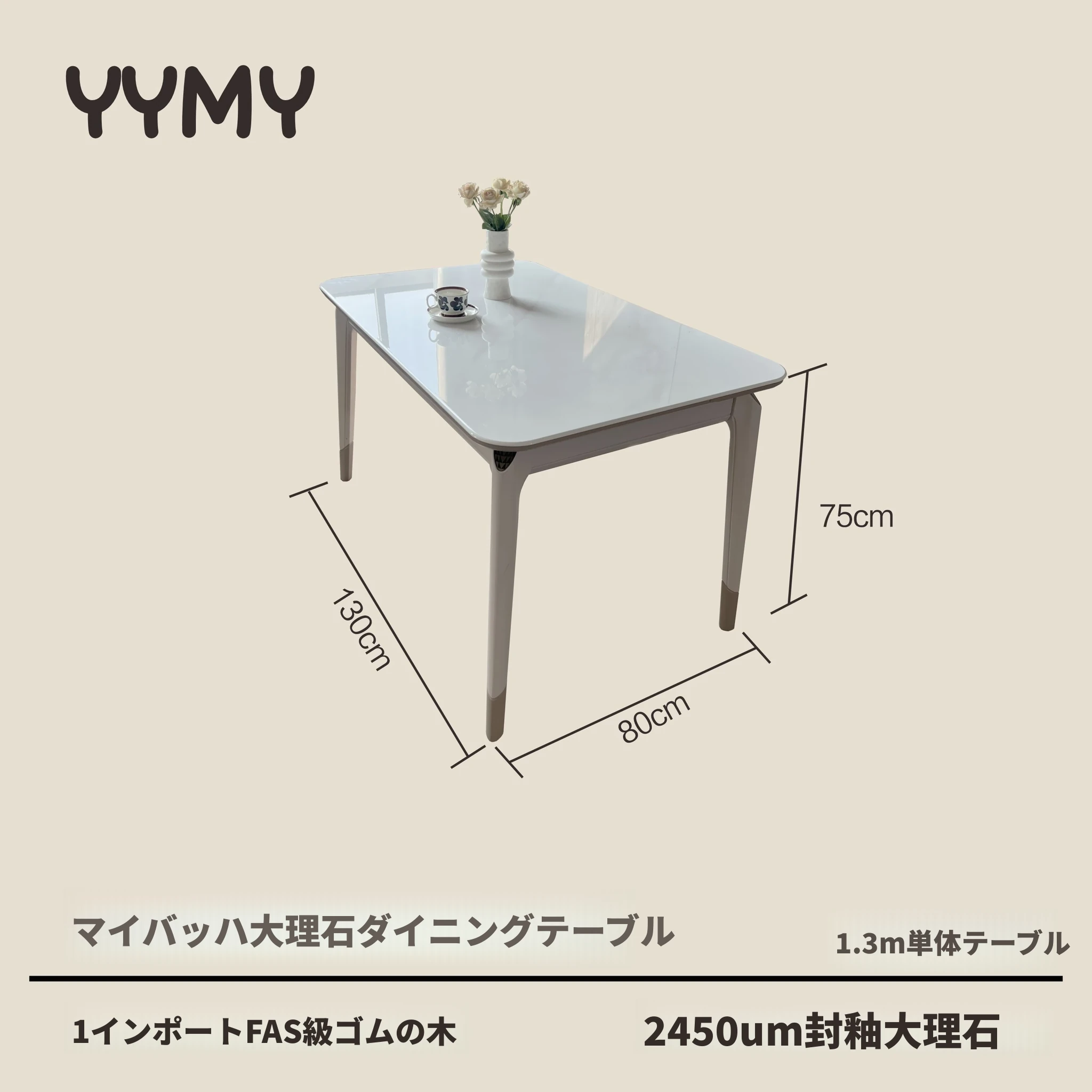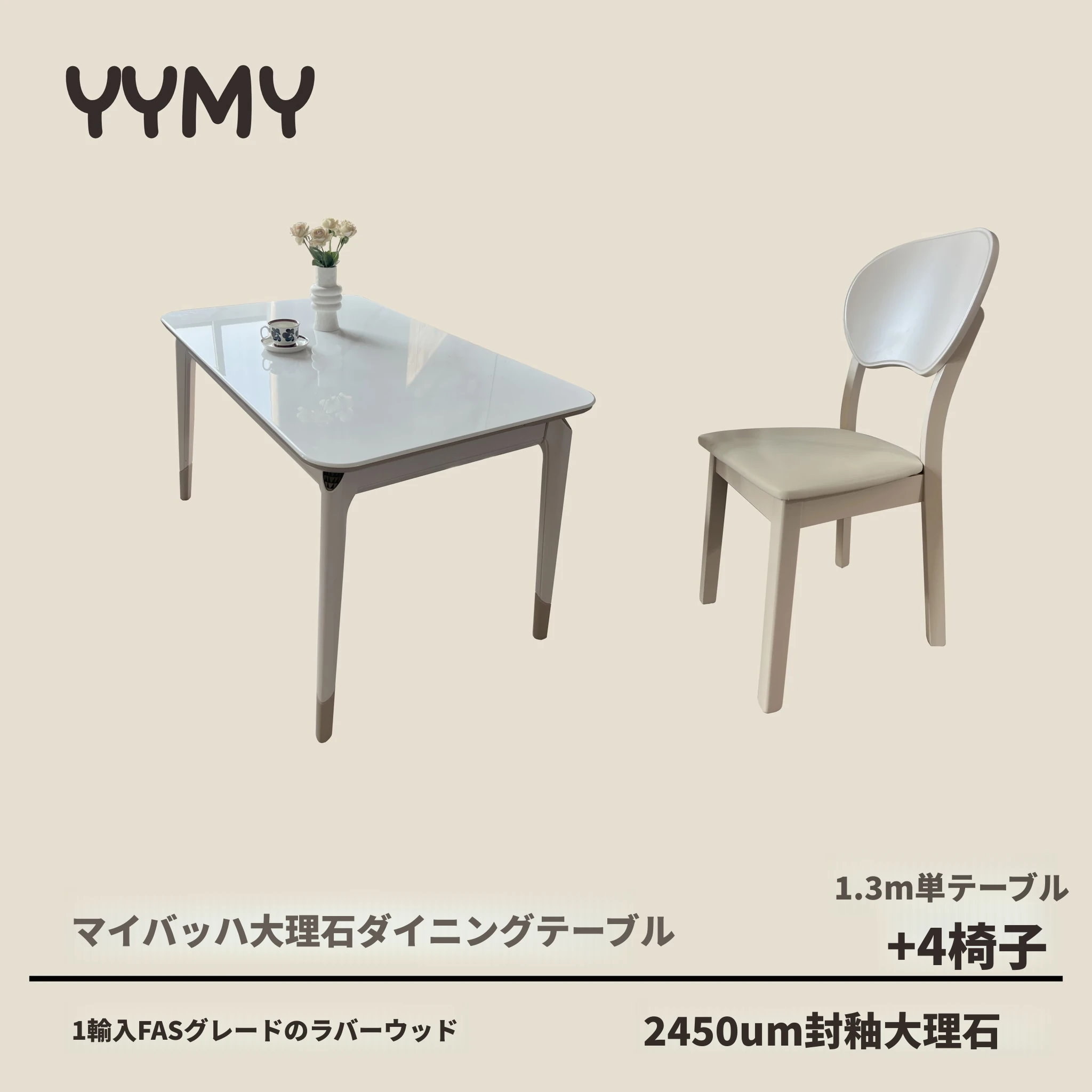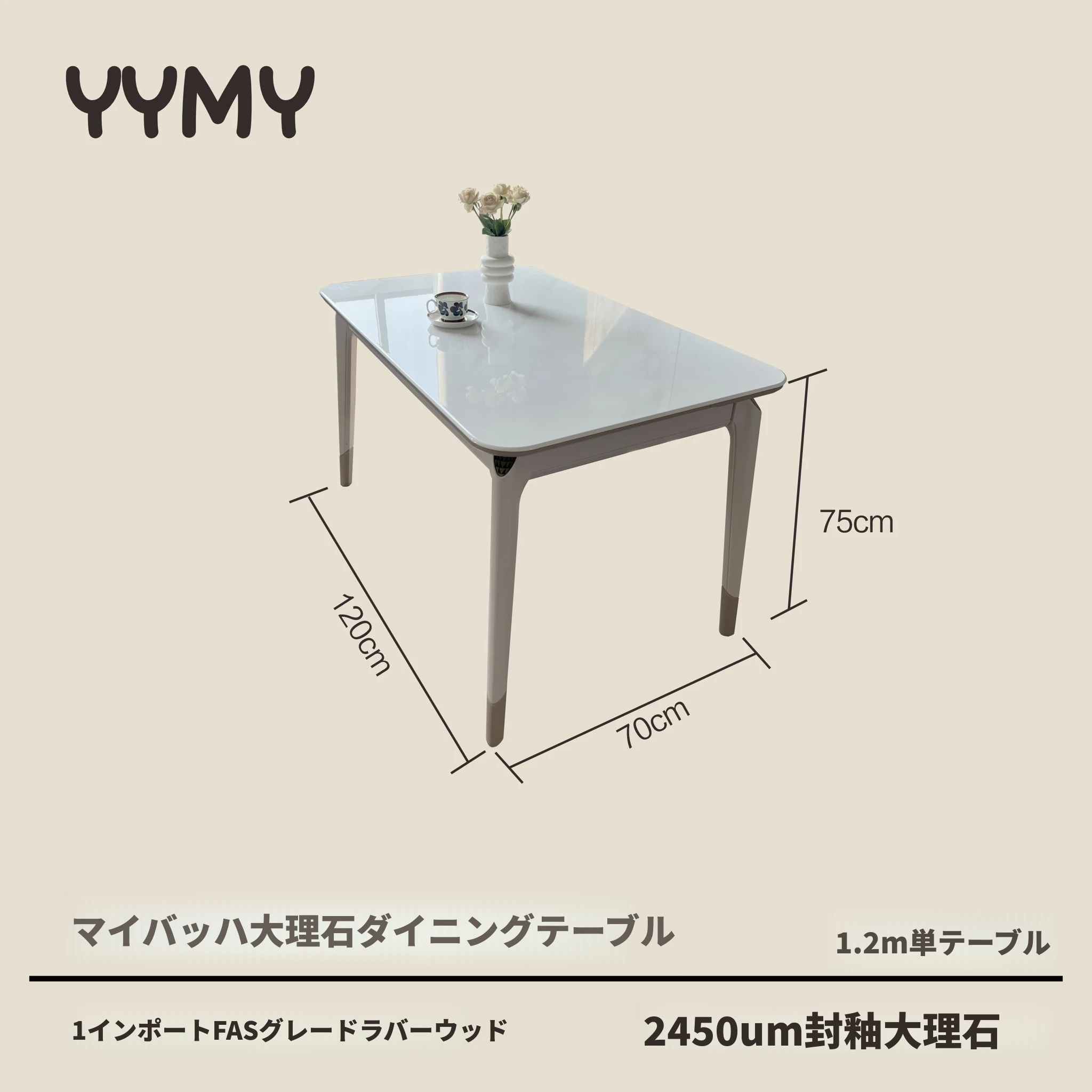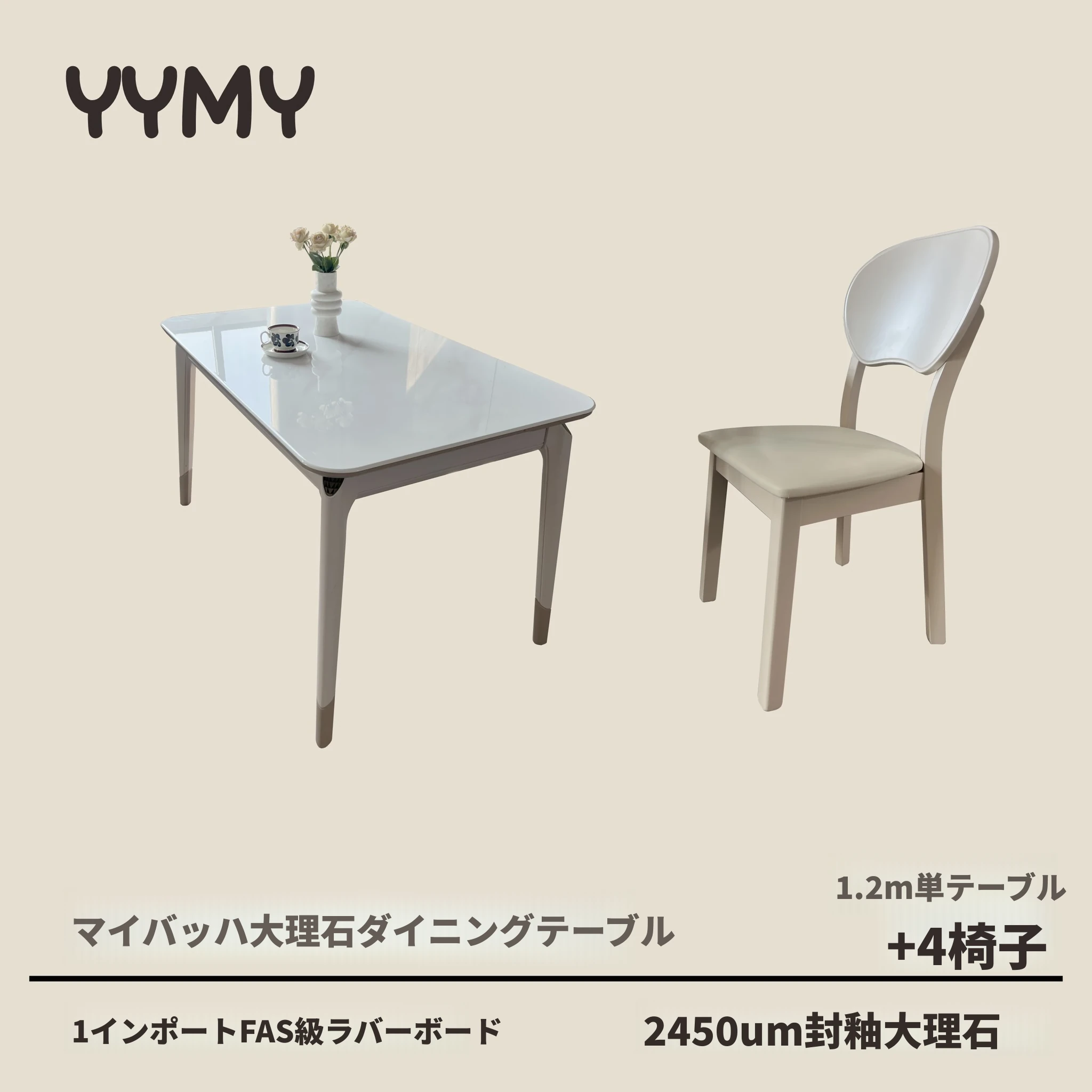 天然大理石使用の高級感溢れる長方形ダイニングテーブル&チェアセット - 小さなリビングにも最適なクリームカラーの天然木製テーブルで、食卓を華やかに演出!