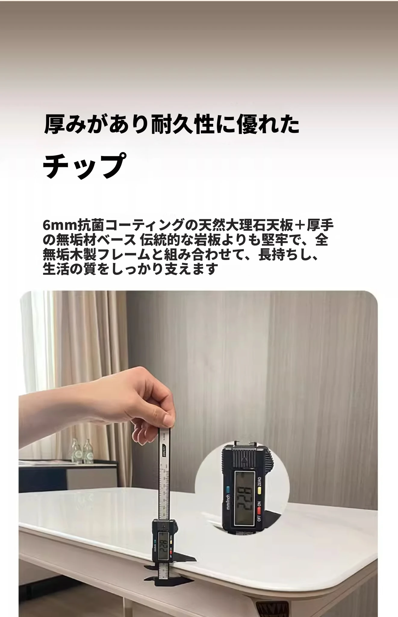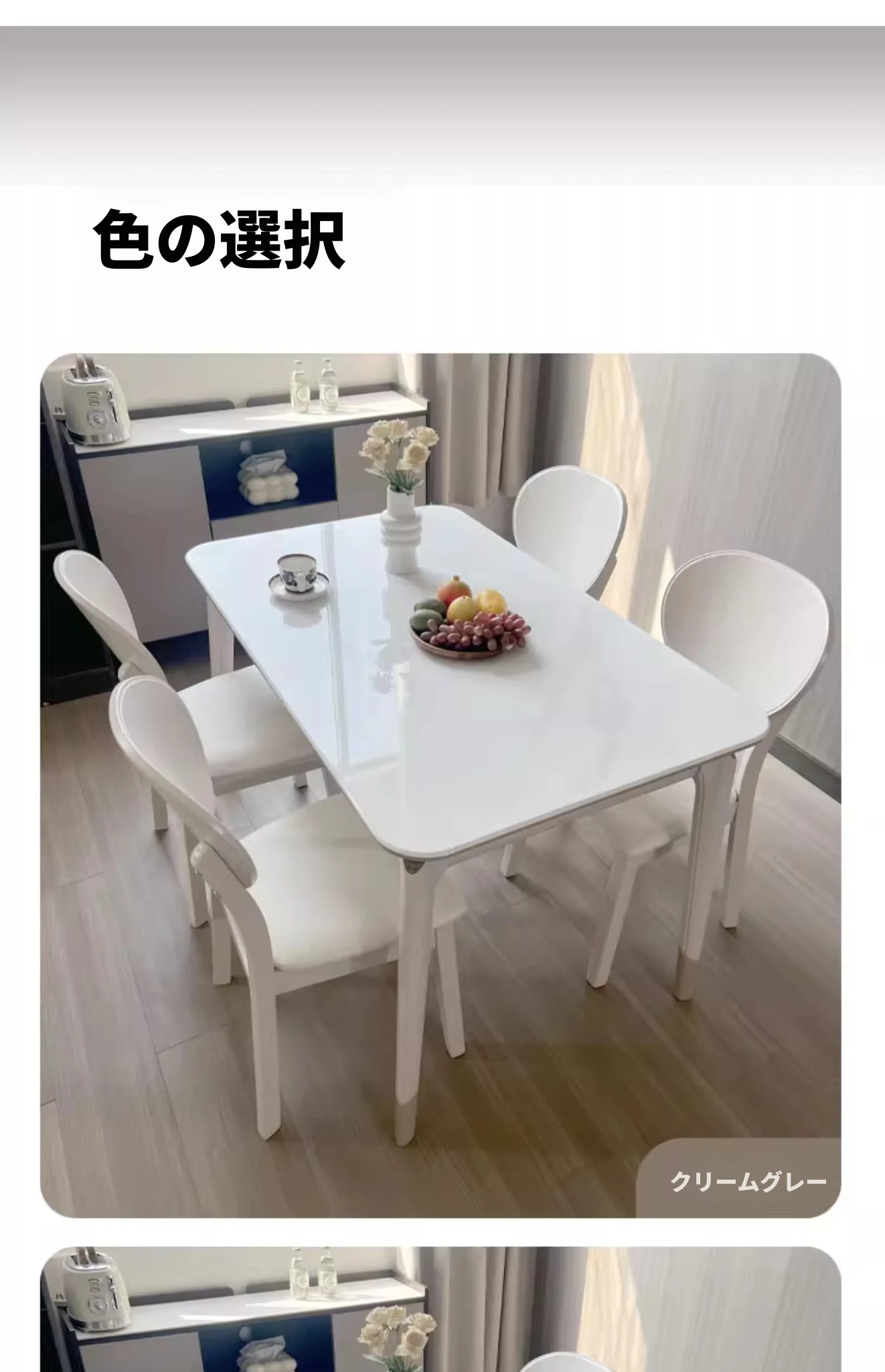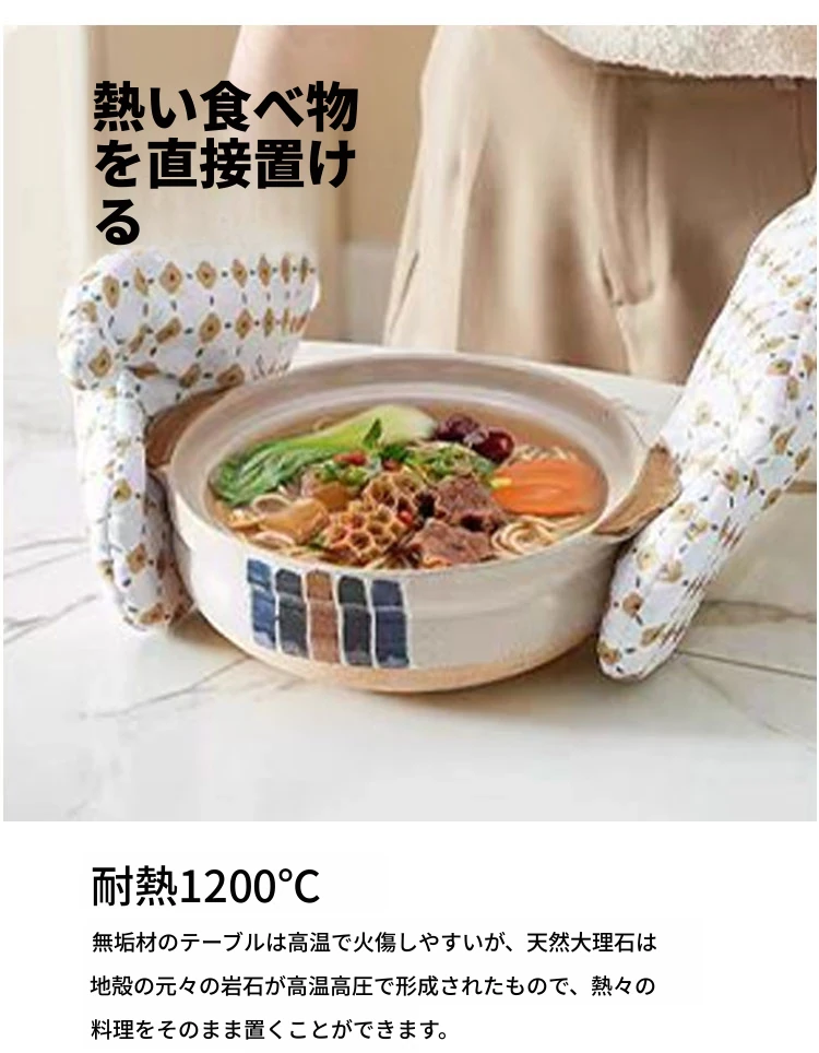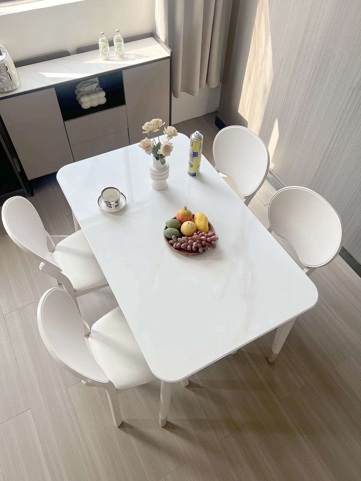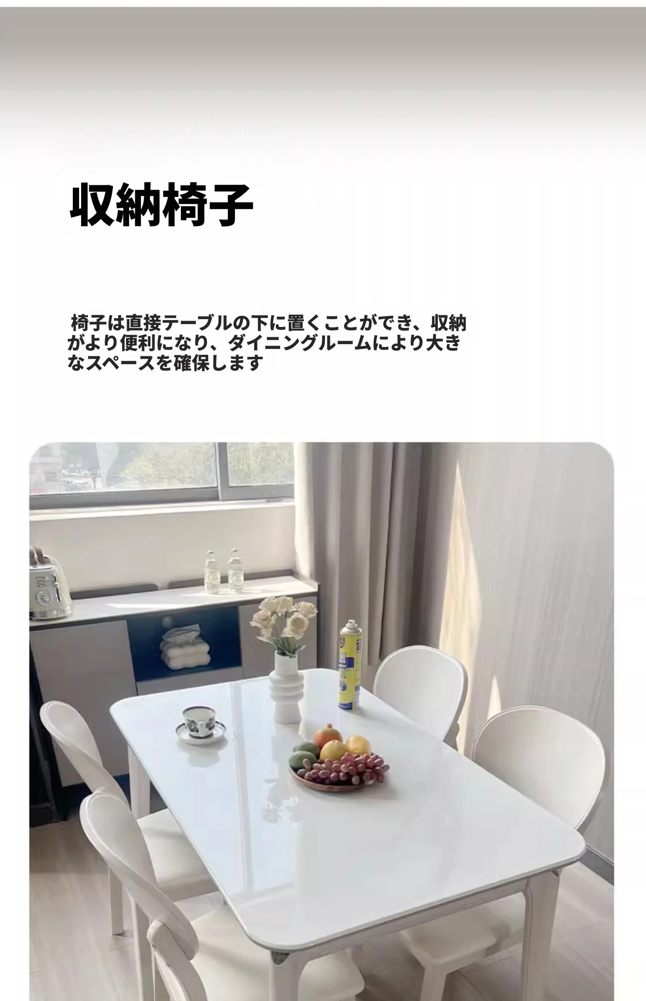 天然大理石使用の高級感溢れる長方形ダイニングテーブル&チェアセット - 小さなリビングにも最適なクリームカラーの天然木製テーブルで、食卓を華やかに演出!
