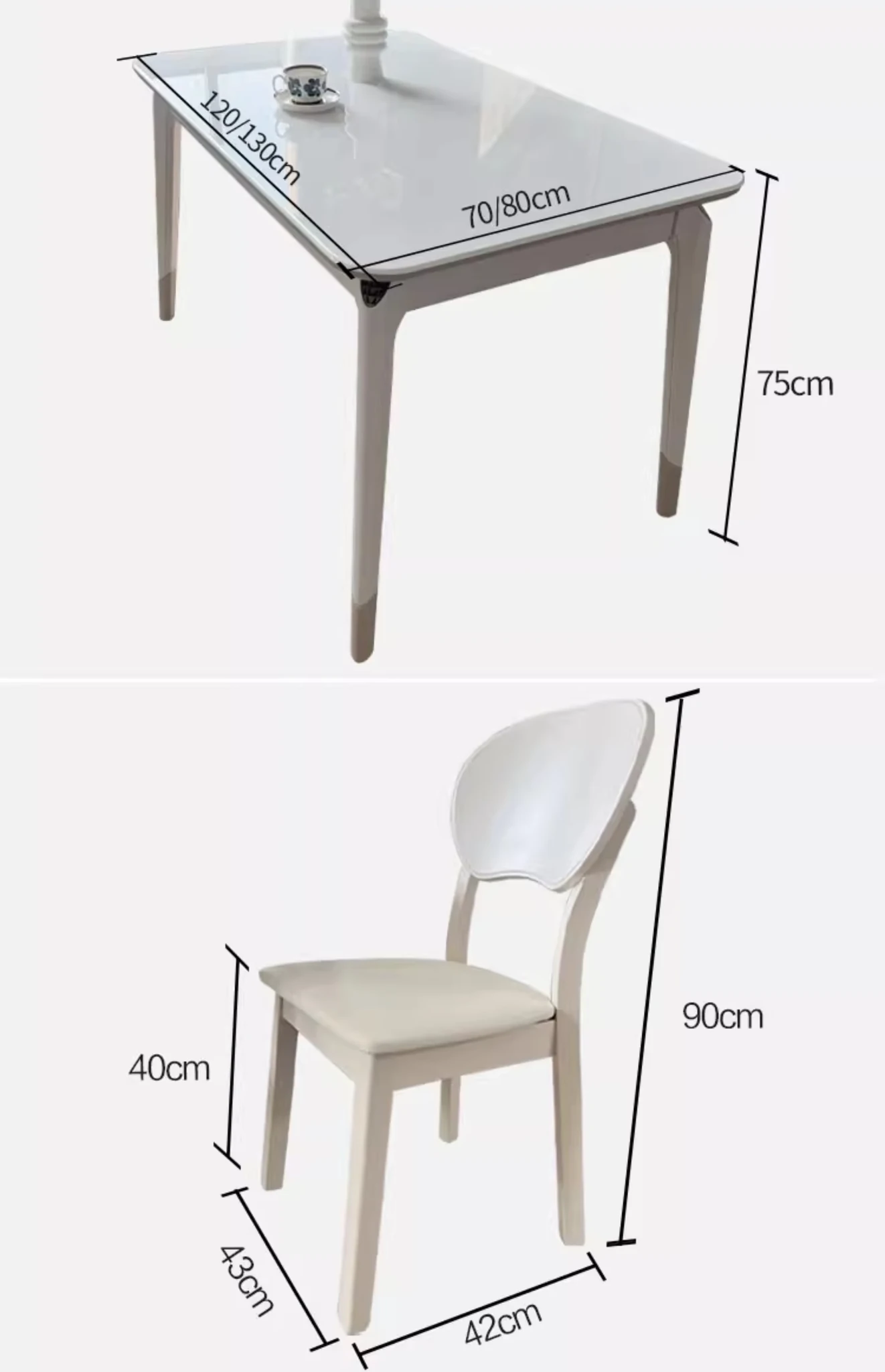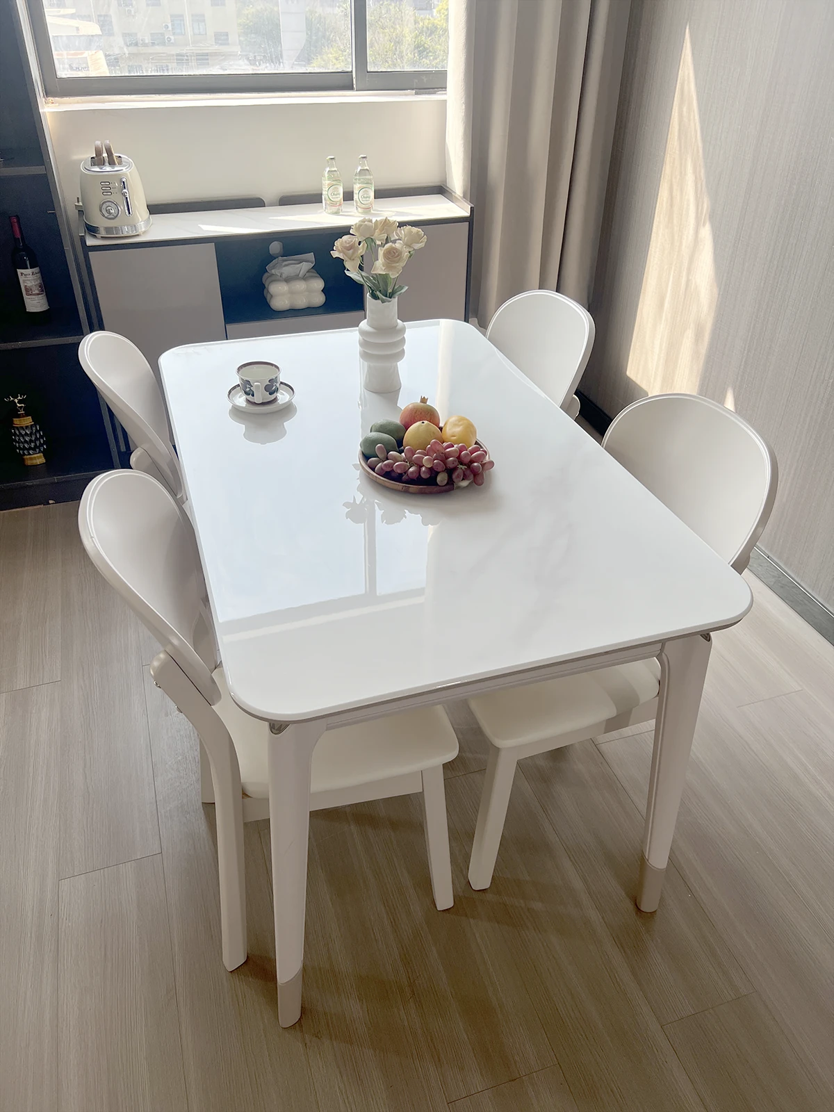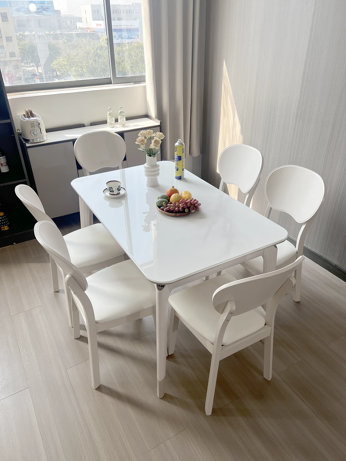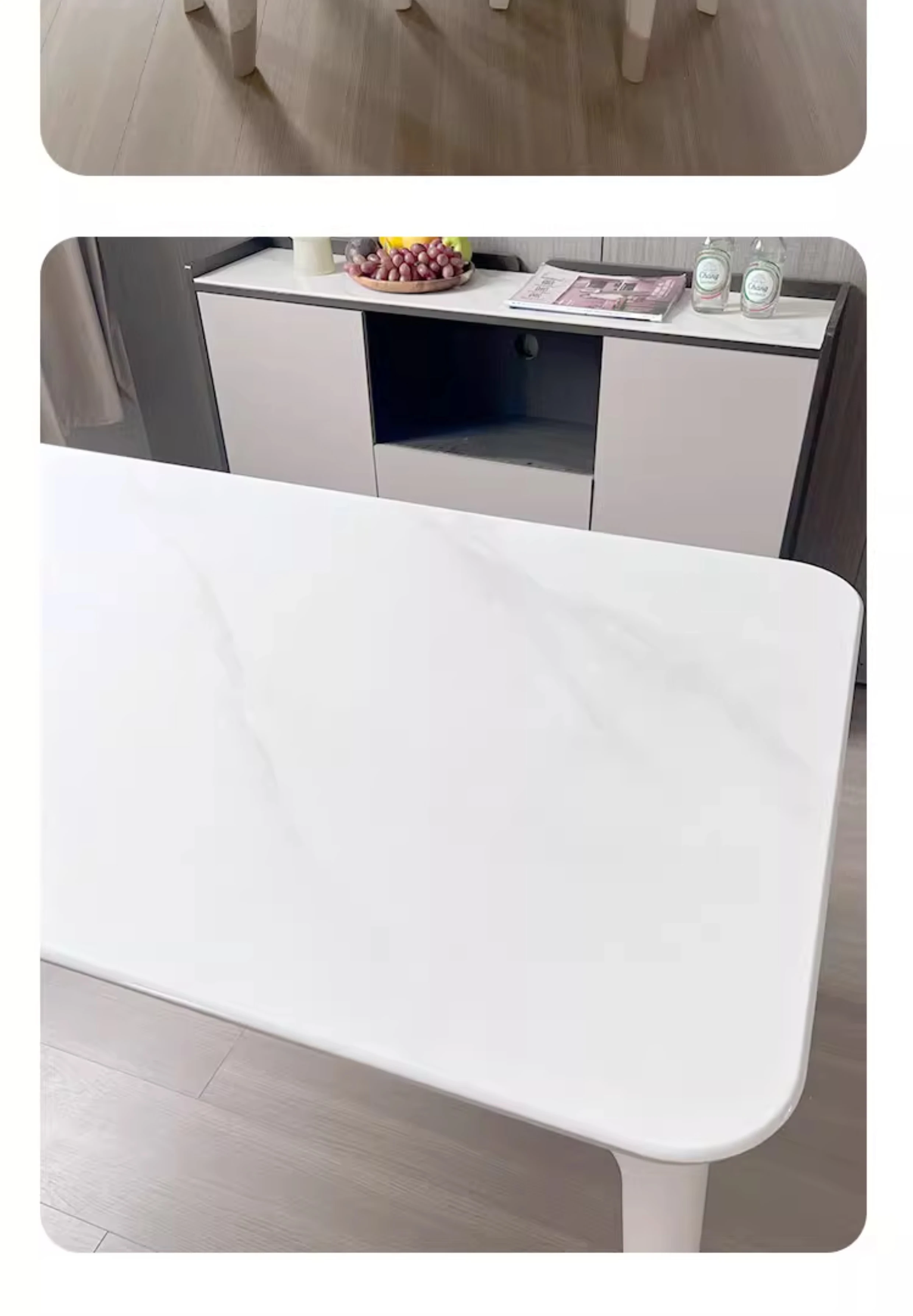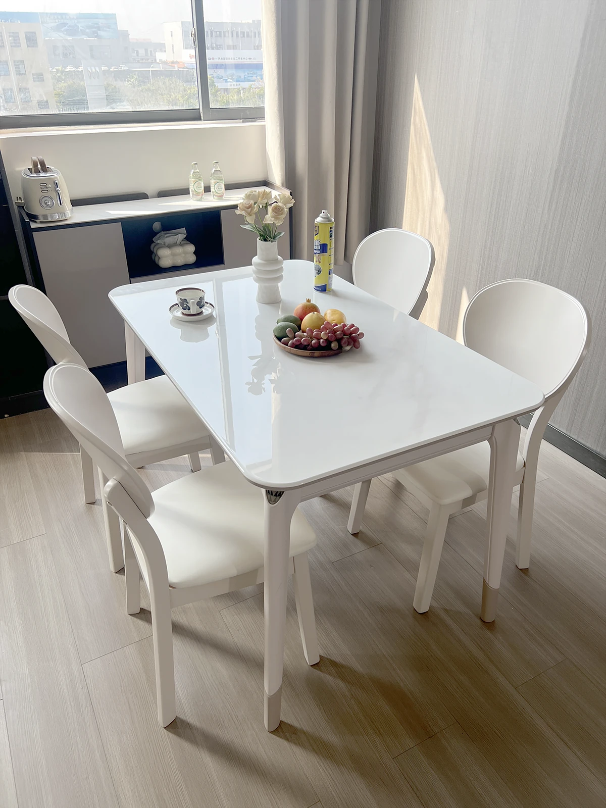 天然大理石使用の高級感溢れる長方形ダイニングテーブル&チェアセット - 小さなリビングにも最適なクリームカラーの天然木製テーブルで、食卓を華やかに演出!