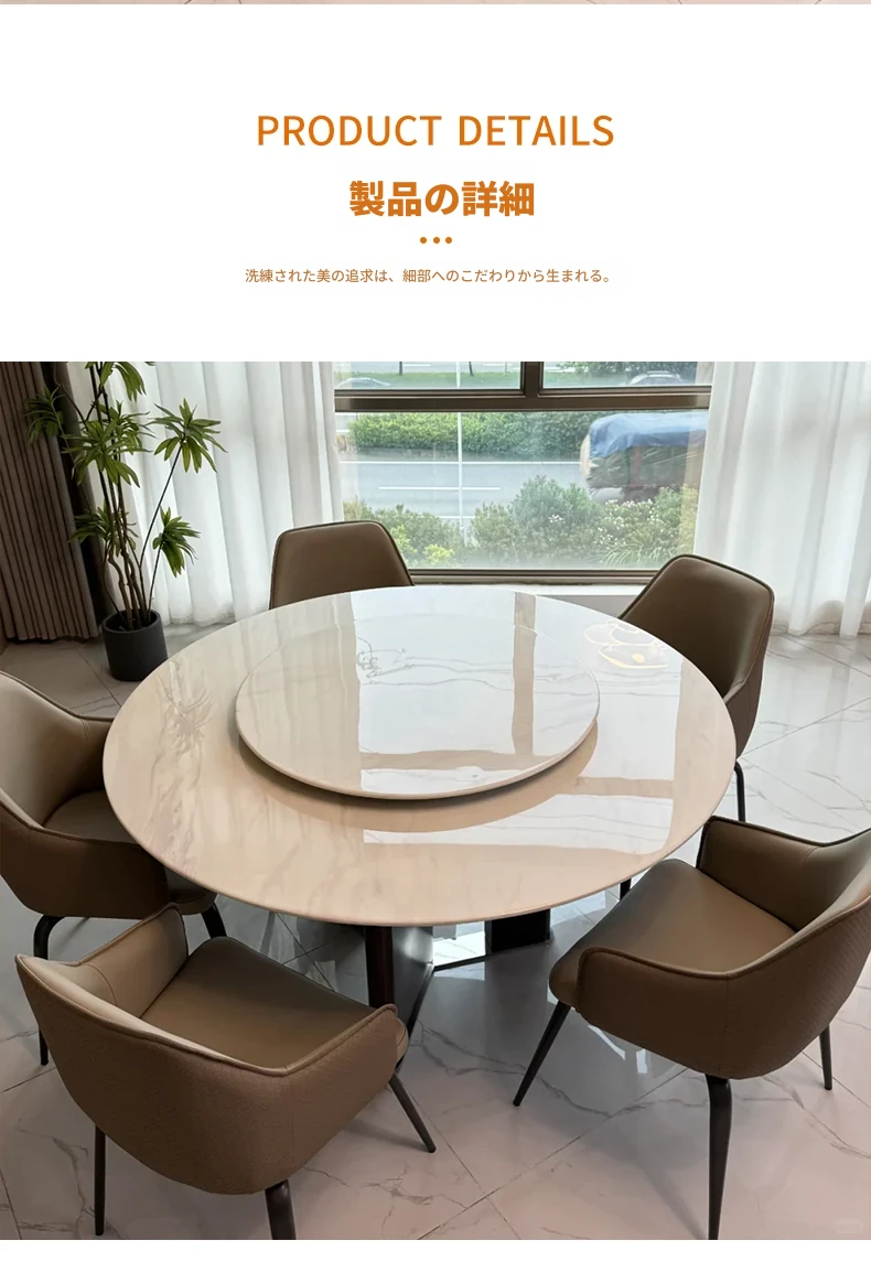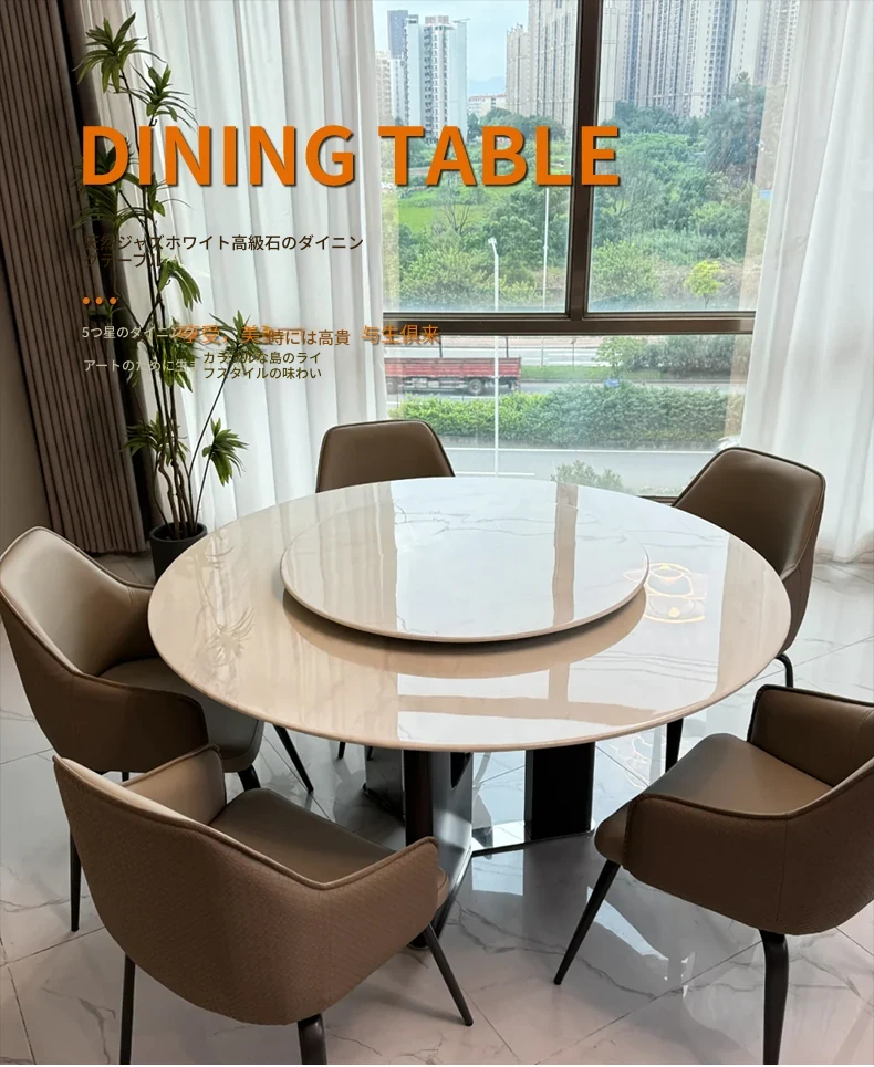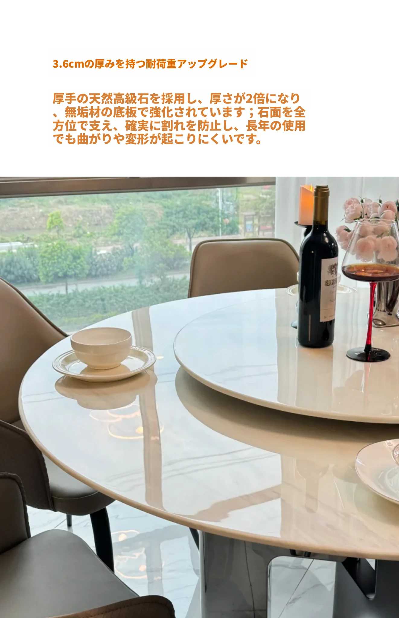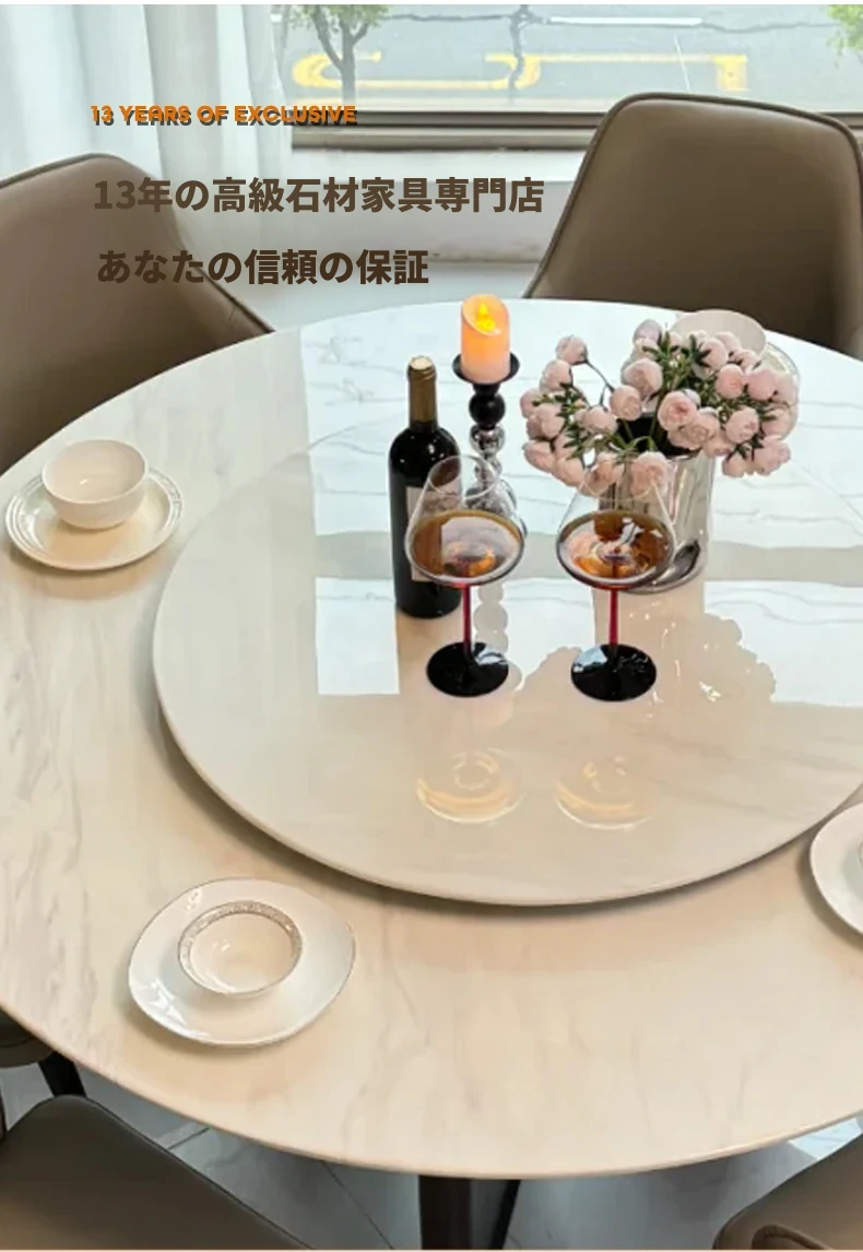 加澄天然ジャズホワイトラグジュアリー石製ターンテーブル付き円形ダイニングテーブル - モダンでシンプル、高級大理石使用のミニマリストスタイル円形テーブル