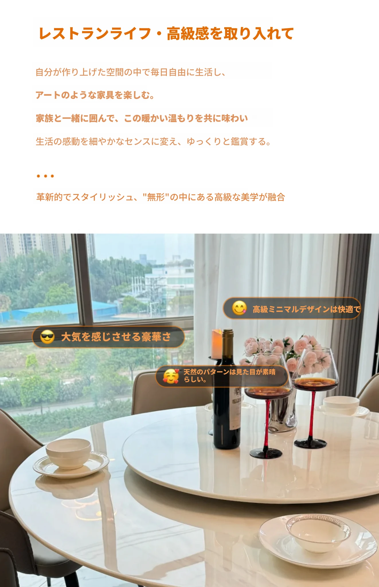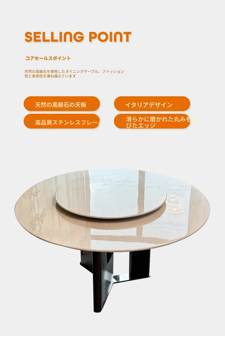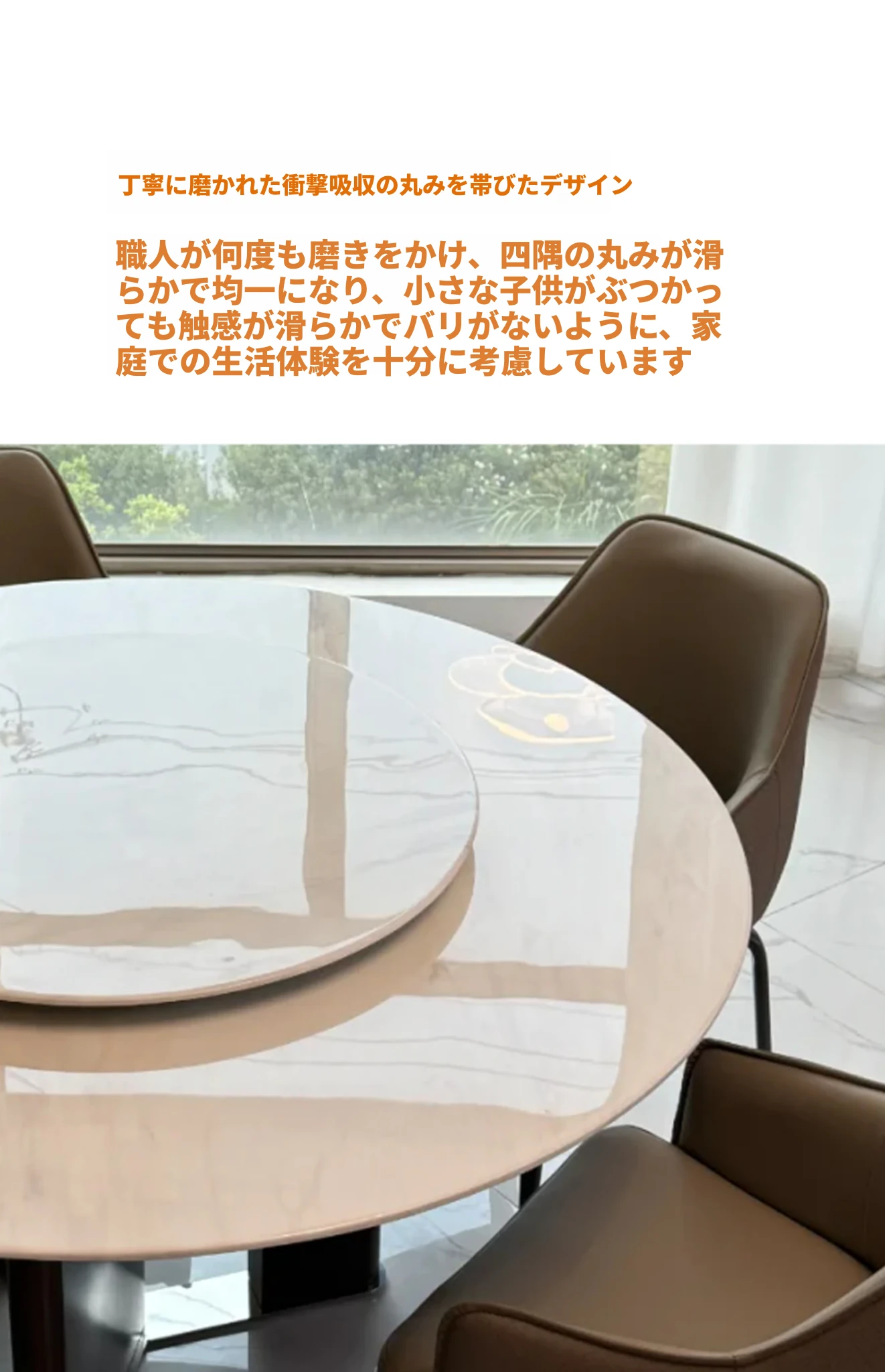 加澄天然ジャズホワイトラグジュアリー石製ターンテーブル付き円形ダイニングテーブル - モダンでシンプル、高級大理石使用のミニマリストスタイル円形テーブル