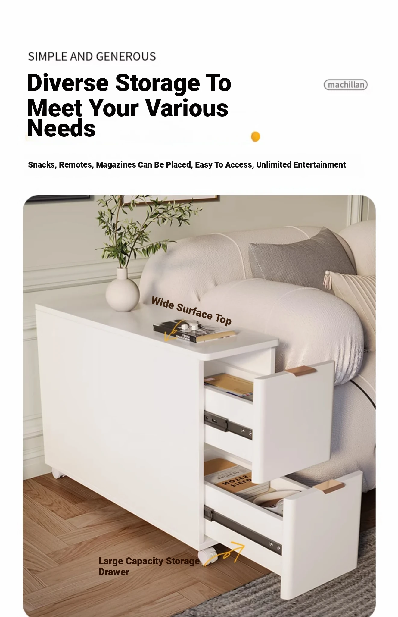Elegant Side Table with Storage – Versatile and Compact Nightstand for Living Room, Bedroom, or Narrow Spaces – Stylish and Functional Accent Table for Easy Mobility