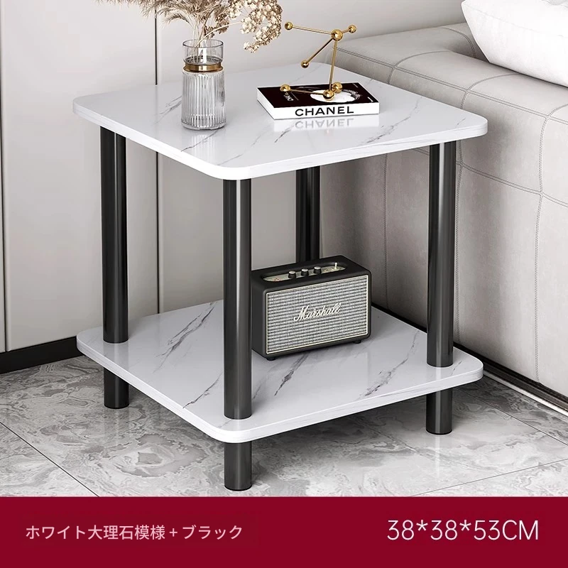 【スクエア二段タイプ】⭐ホワイト大理石模様+深黒スタンド38*38*53CM⭐厚板材 より頑丈