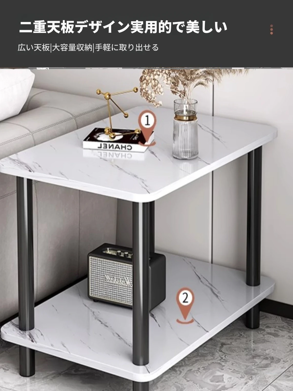 【メイン画像人気商品】二段高幅タイプ⭐ホワイト大理石模様+深黒スタンド80*40*53CM⭐厚板材 より頑丈