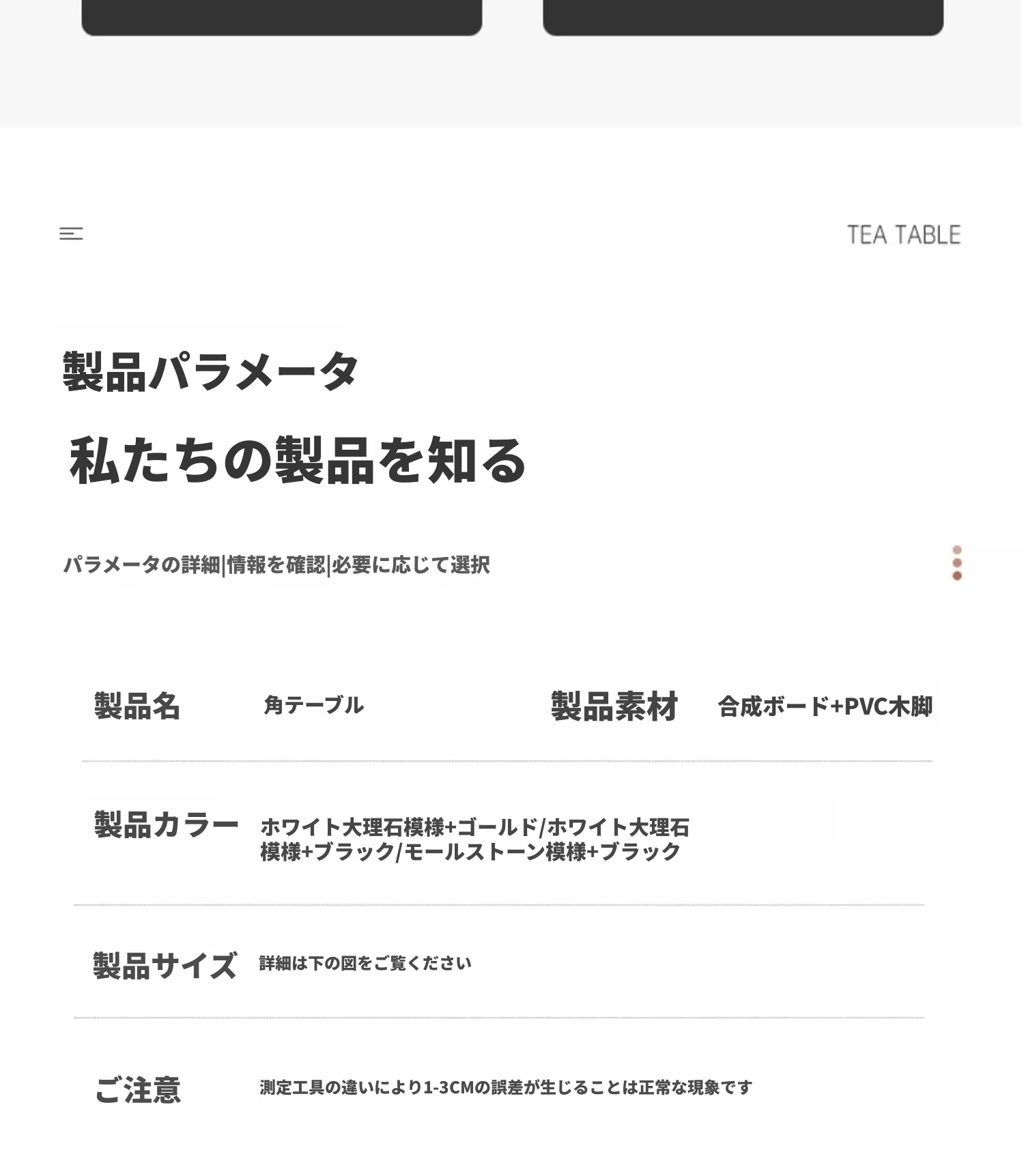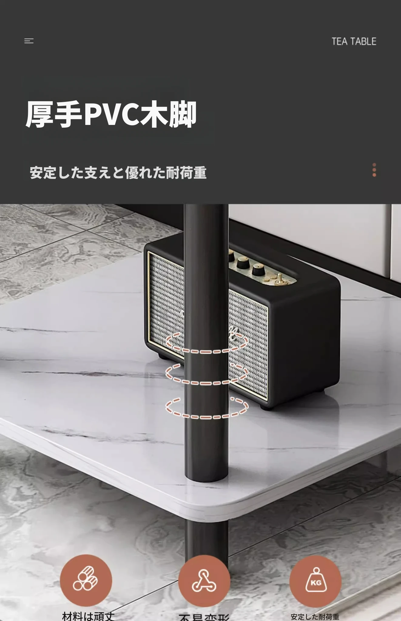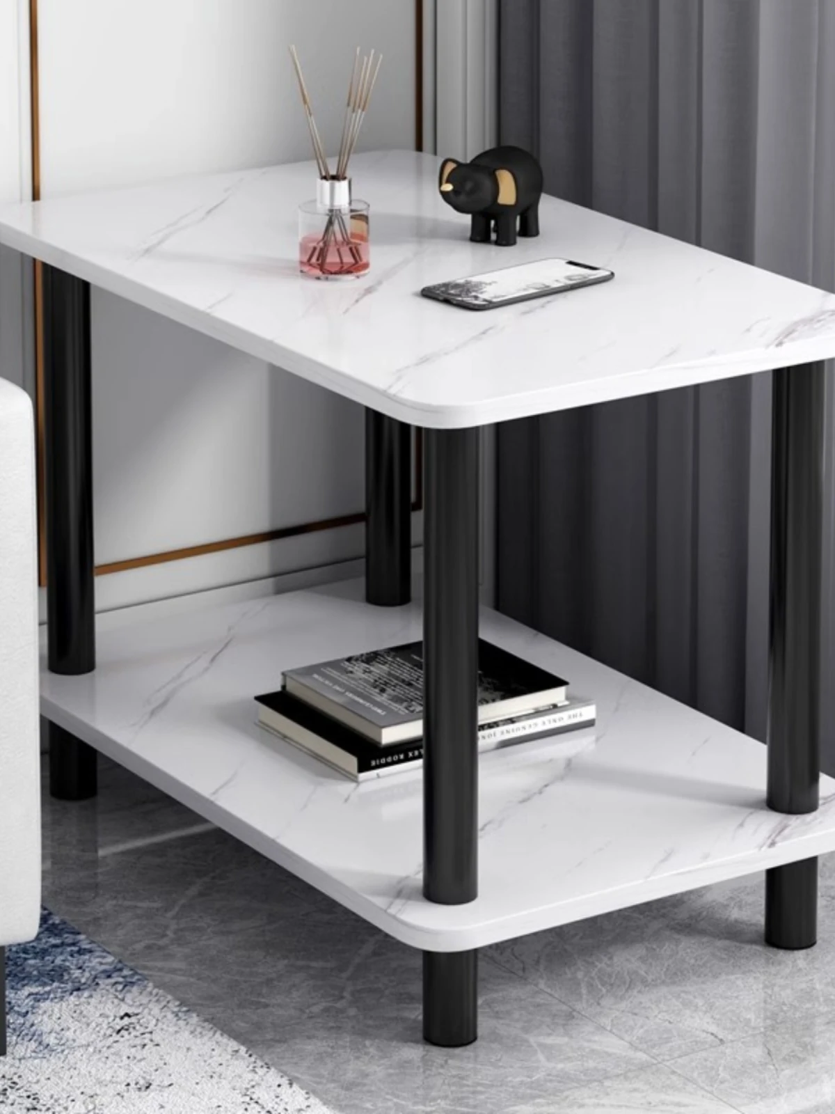 【スクエア一段タイプ】⭐ホワイト大理石模様+深黒テーブル脚40*40*42CM⭐
