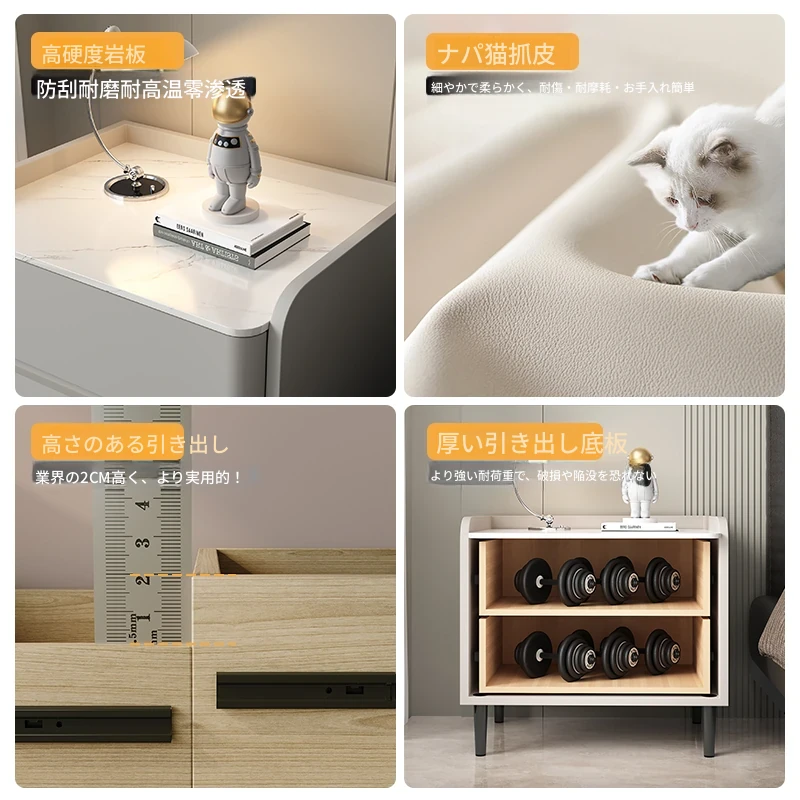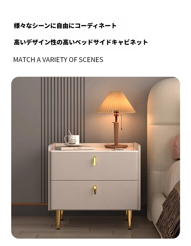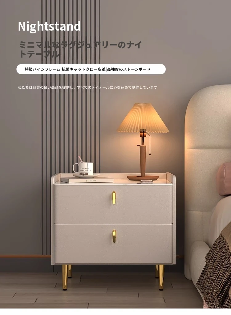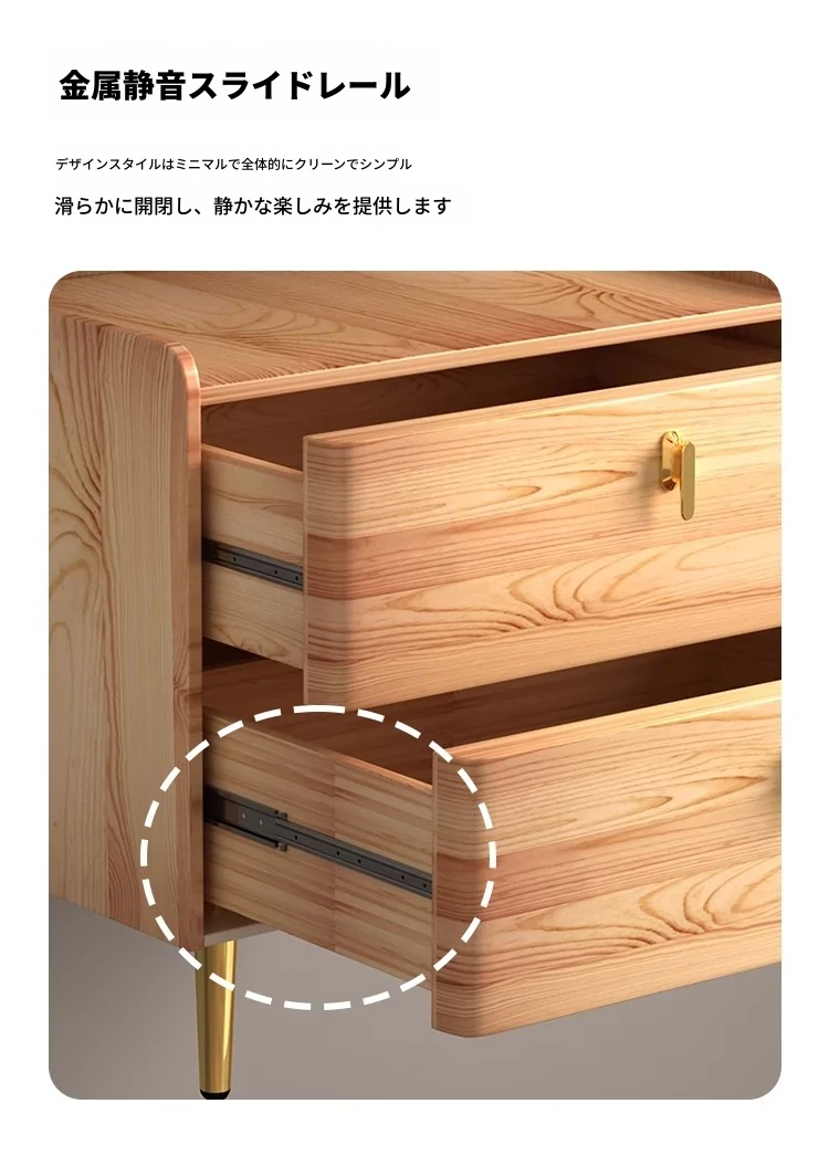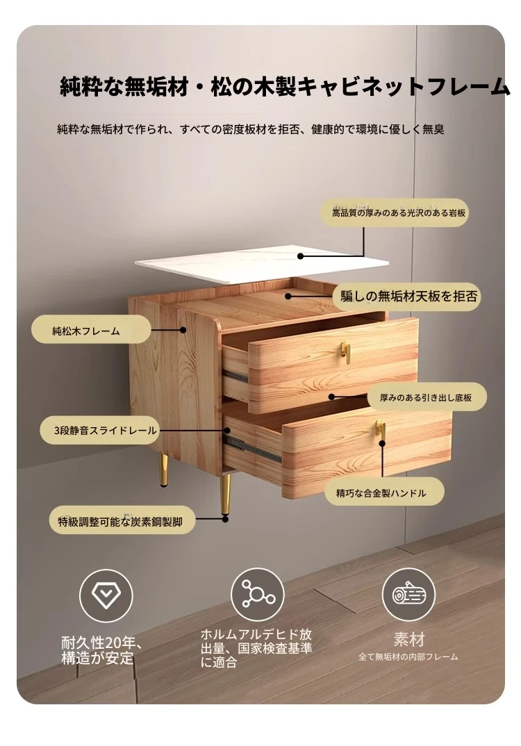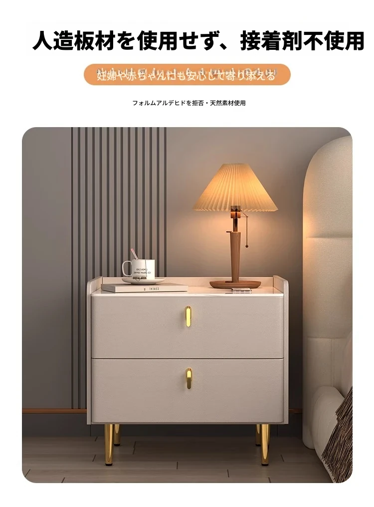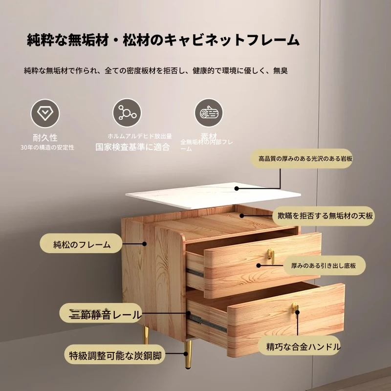 2025年新作!高級感あふれる無垢材ベッドサイドキャビネット - シンプルでモダンなデザイン、寝室にぴったりのコンパクト収納!