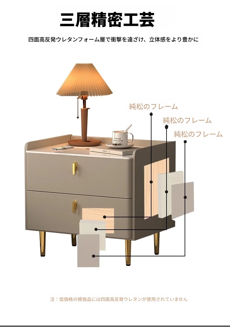 奶白色+金(厚手多層無垢フレーム+無垢引き出し)