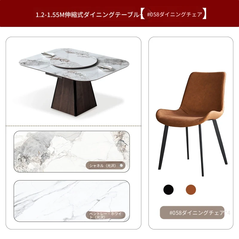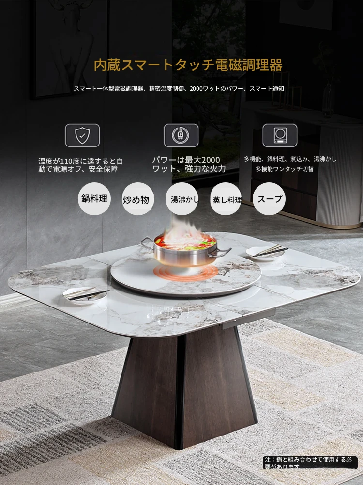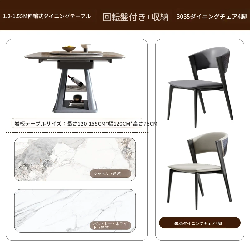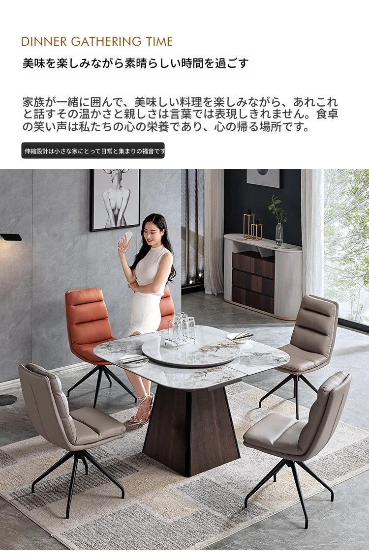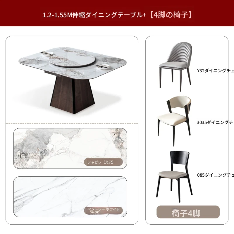 伸縮可能な岩板ダイニングテーブル - 小型住宅に最適!高級感あふれる正方形デザイン、回転盤付きで便利。折りたたみ式椅子と天然木製で、スタイリッシュな食卓を実現します。