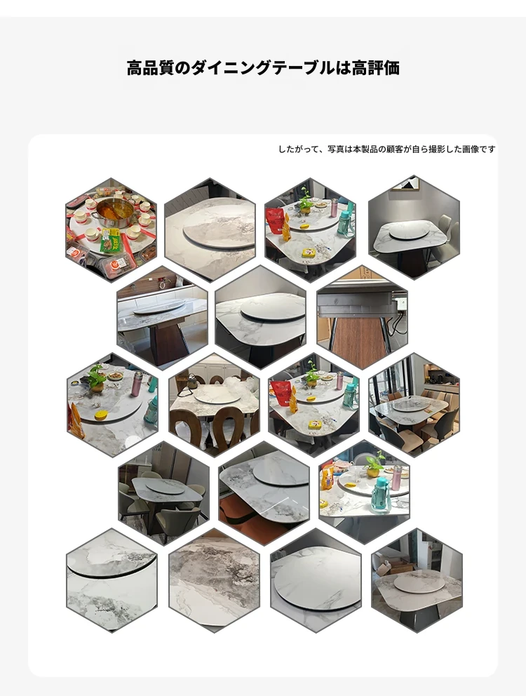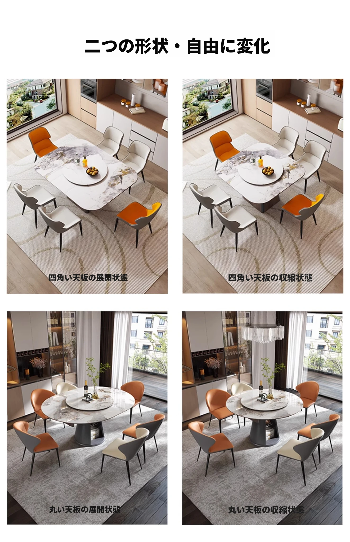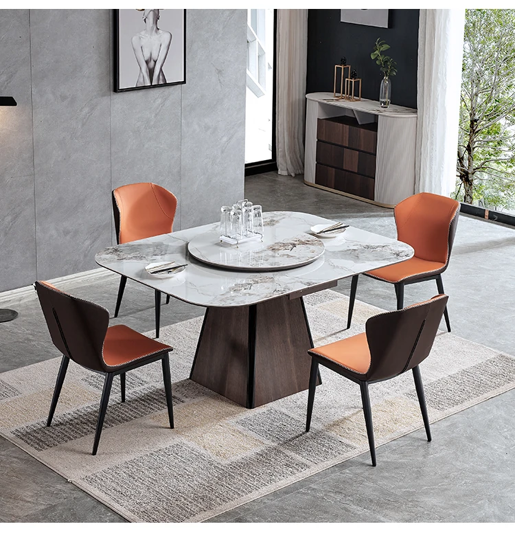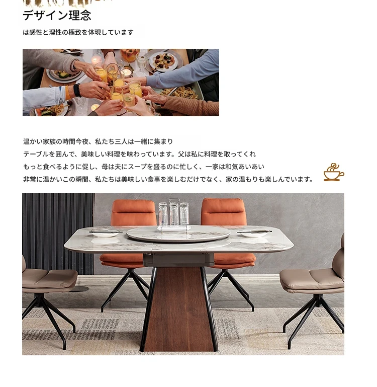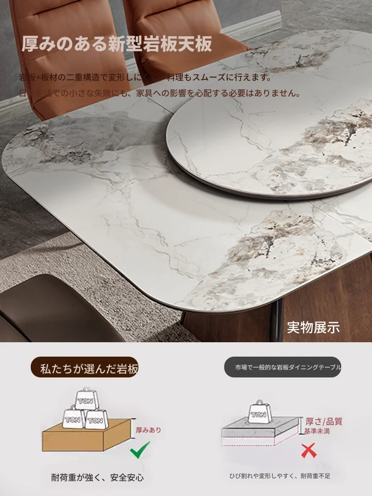 伸縮可能な岩板ダイニングテーブル - 小型住宅に最適!高級感あふれる正方形デザイン、回転盤付きで便利。折りたたみ式椅子と天然木製で、スタイリッシュな食卓を実現します。