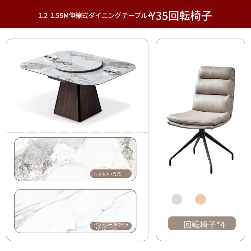 1.2m伸縮ダイニングテーブル+4脚の椅子#Y35回転椅子