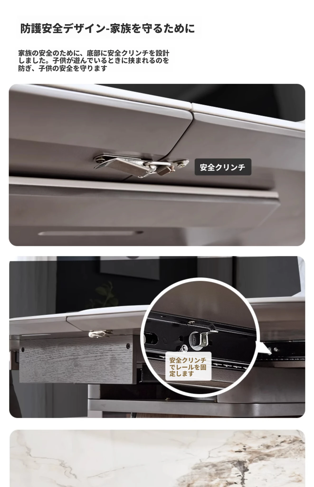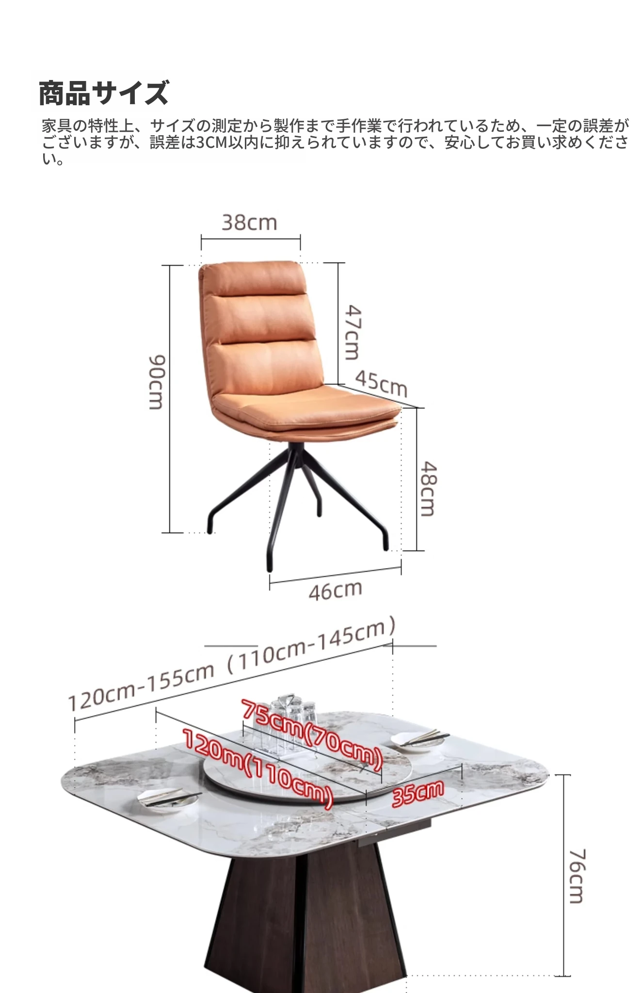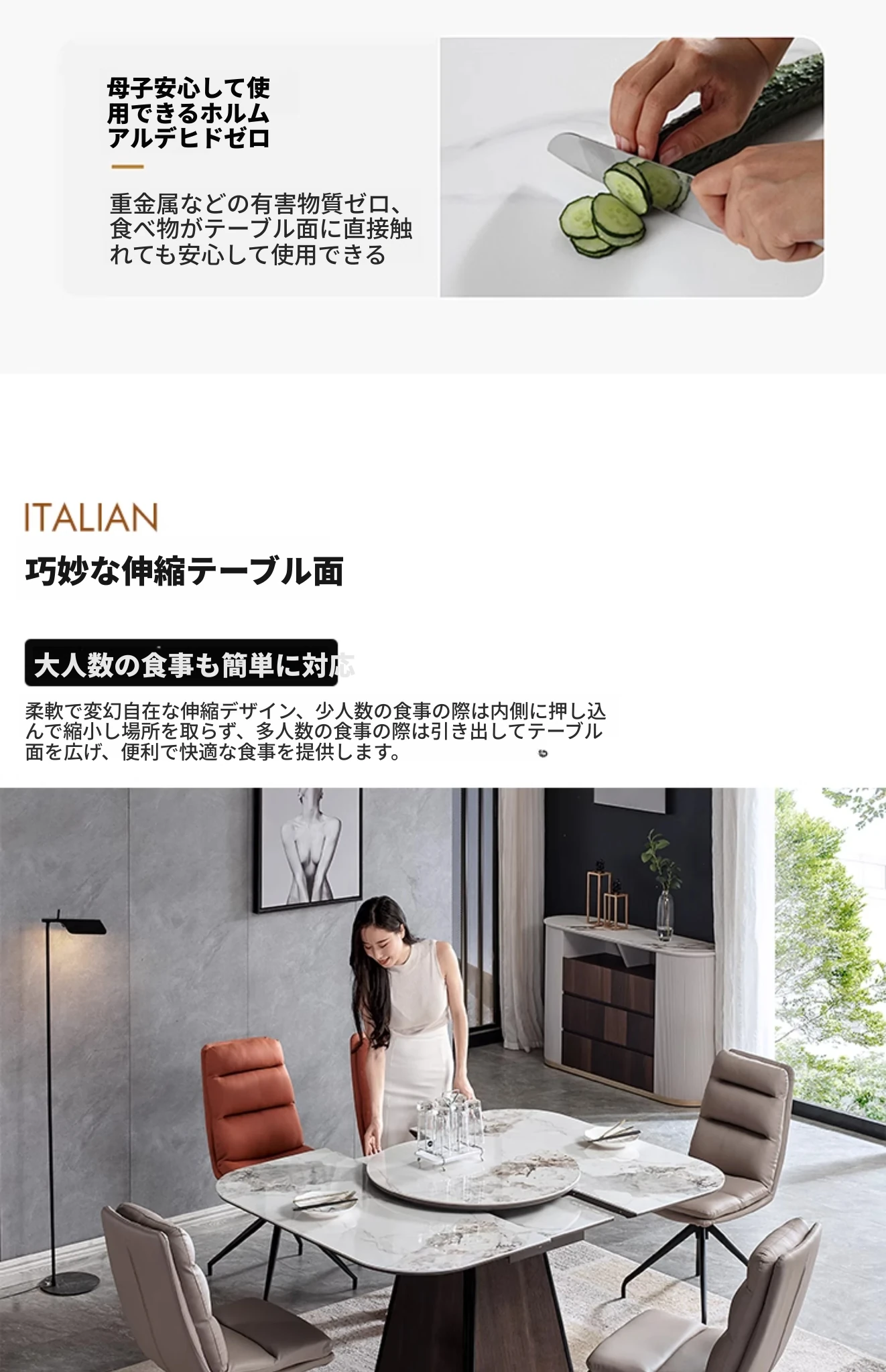 【大理石-超晶石】1.2m-1.55m伸縮ダイニングテーブル#621【固定回転盤付き】