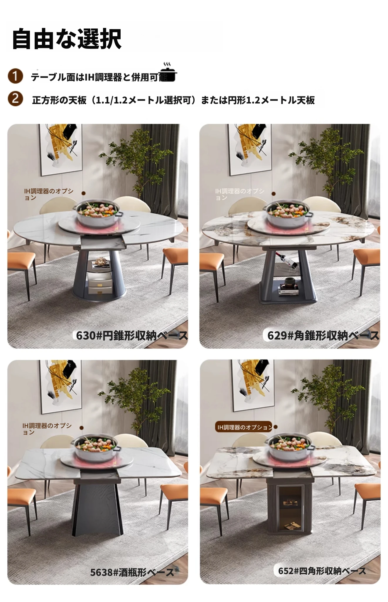 1.2m-1.55m伸縮ダイニングテーブル【回転盤と電磁調理器付き】