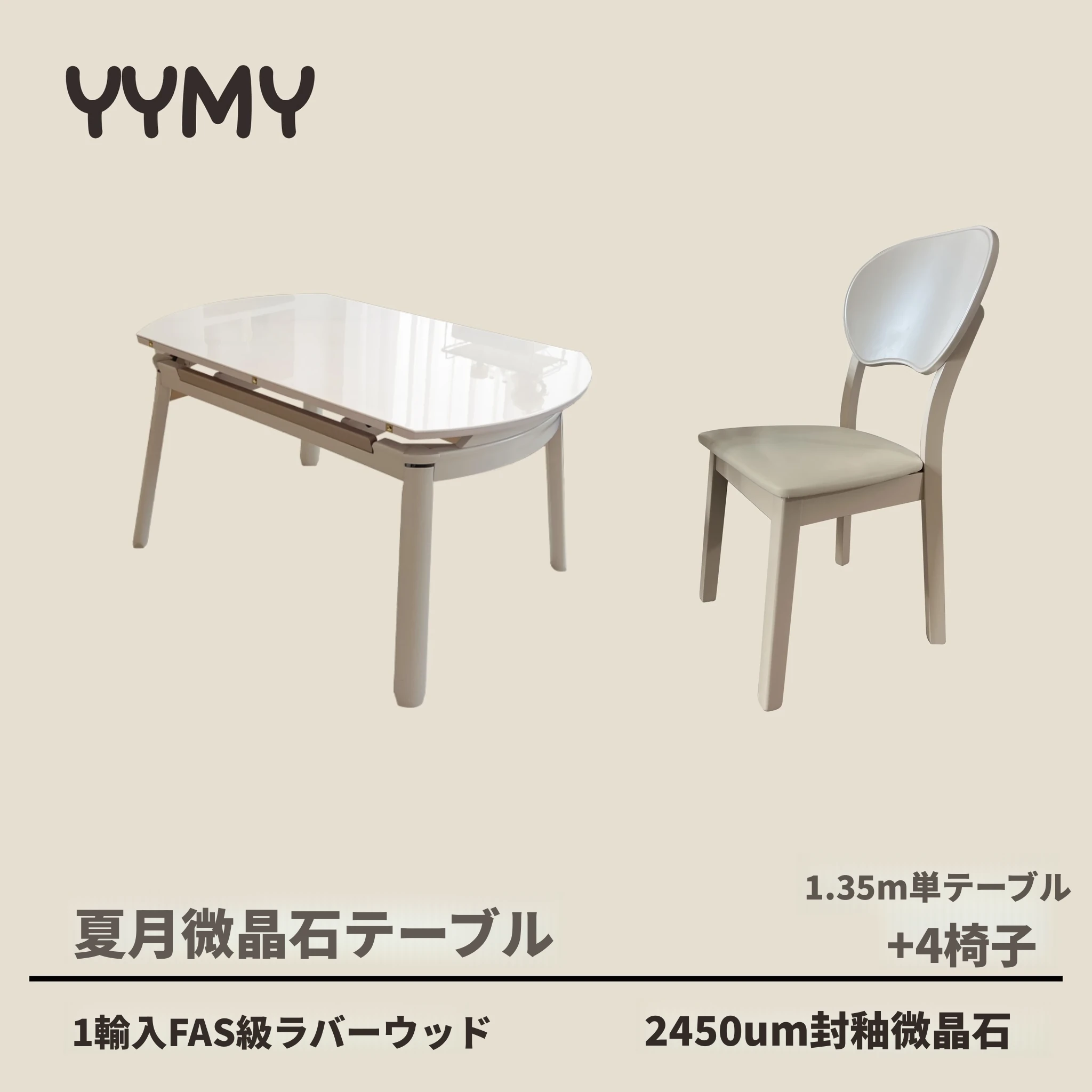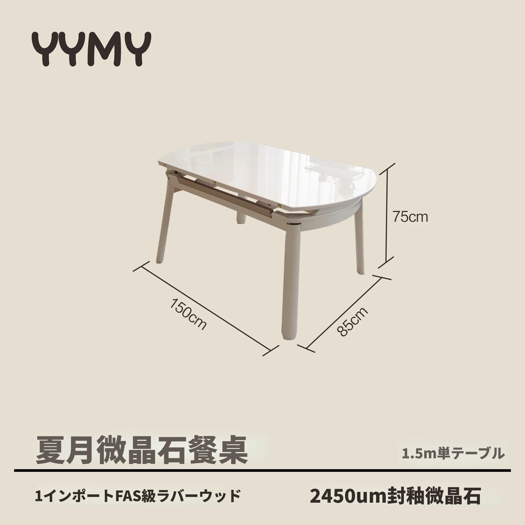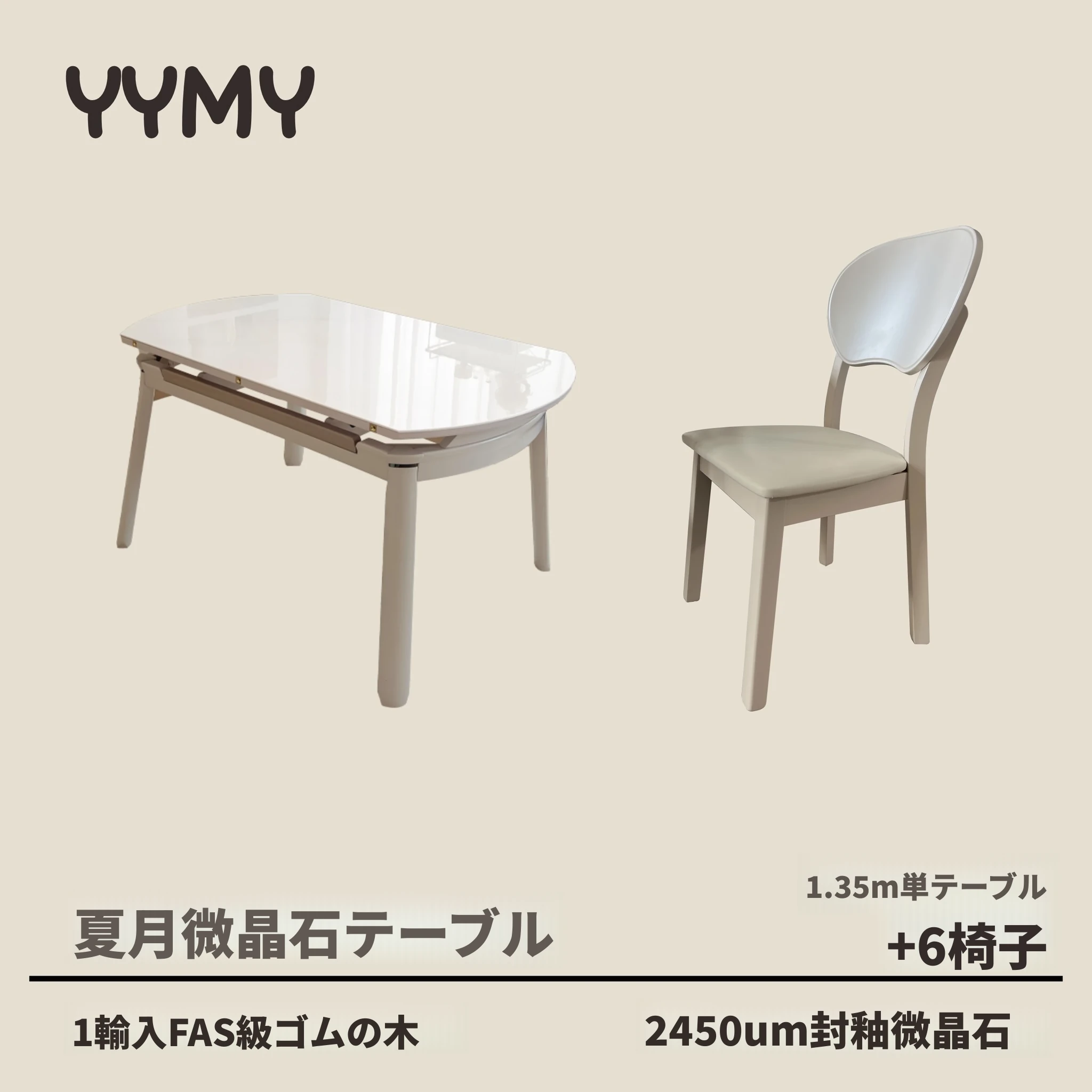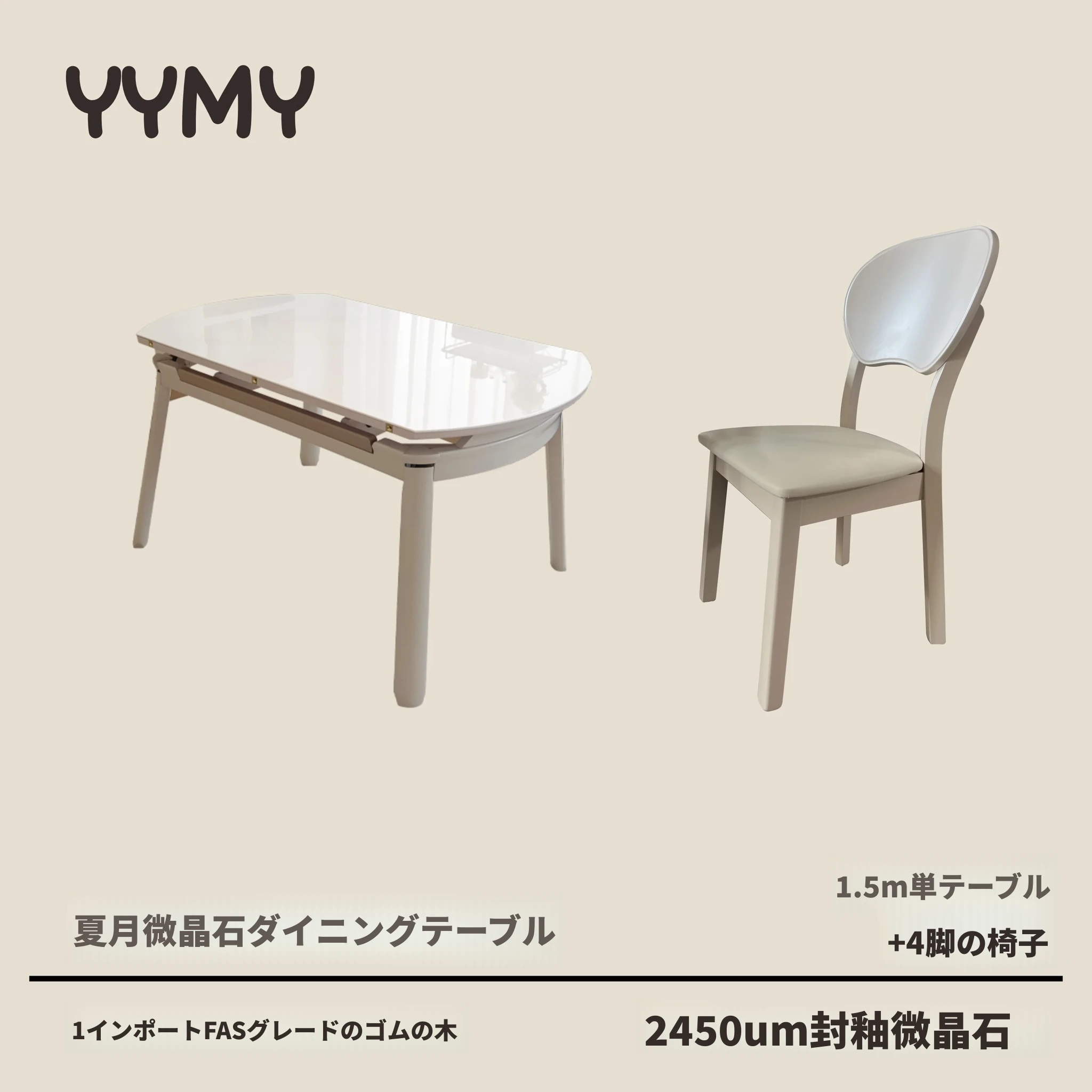 エレガントなフレンチスタイルの大理石ダイニングテーブルセット - 拡張可能な円形デザイン、上質なホワイトウッド仕上げ、家庭にぴったりの高級感あふれるインテリアアイテム!