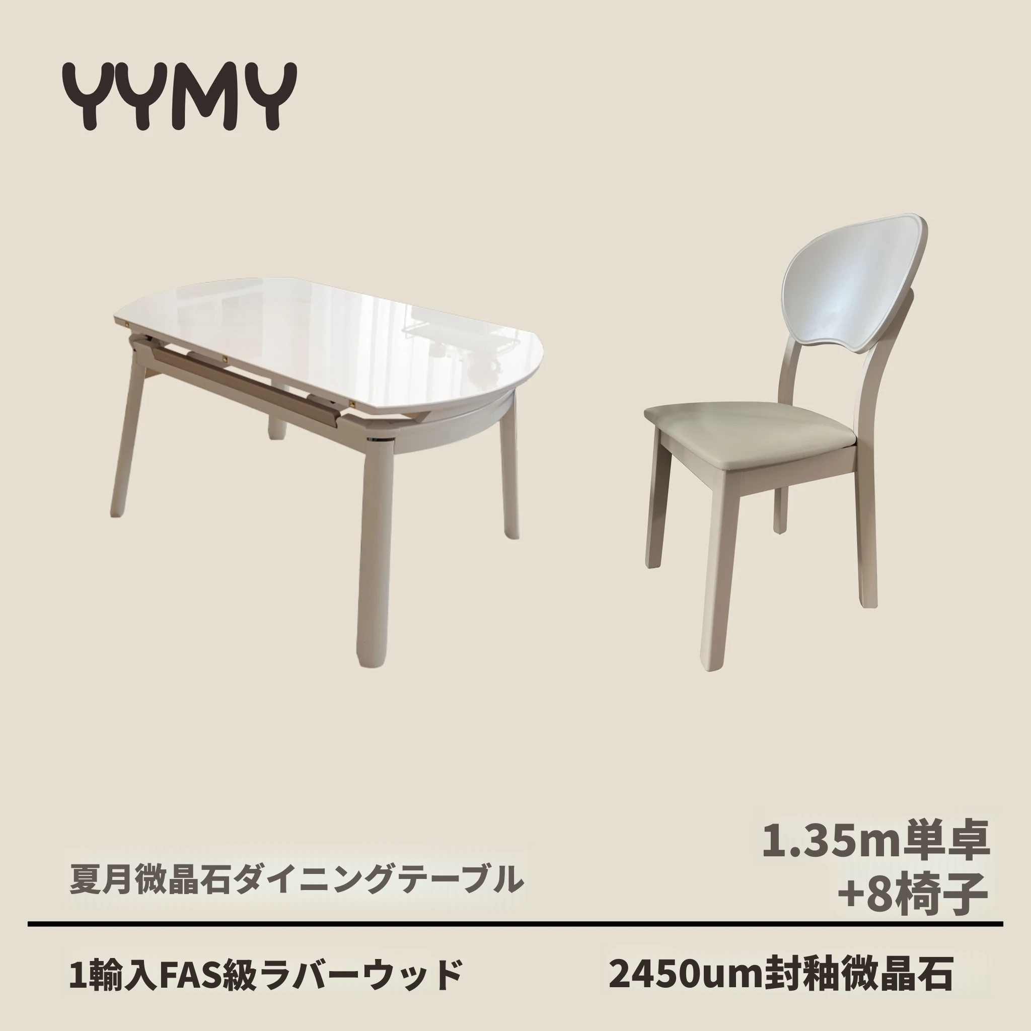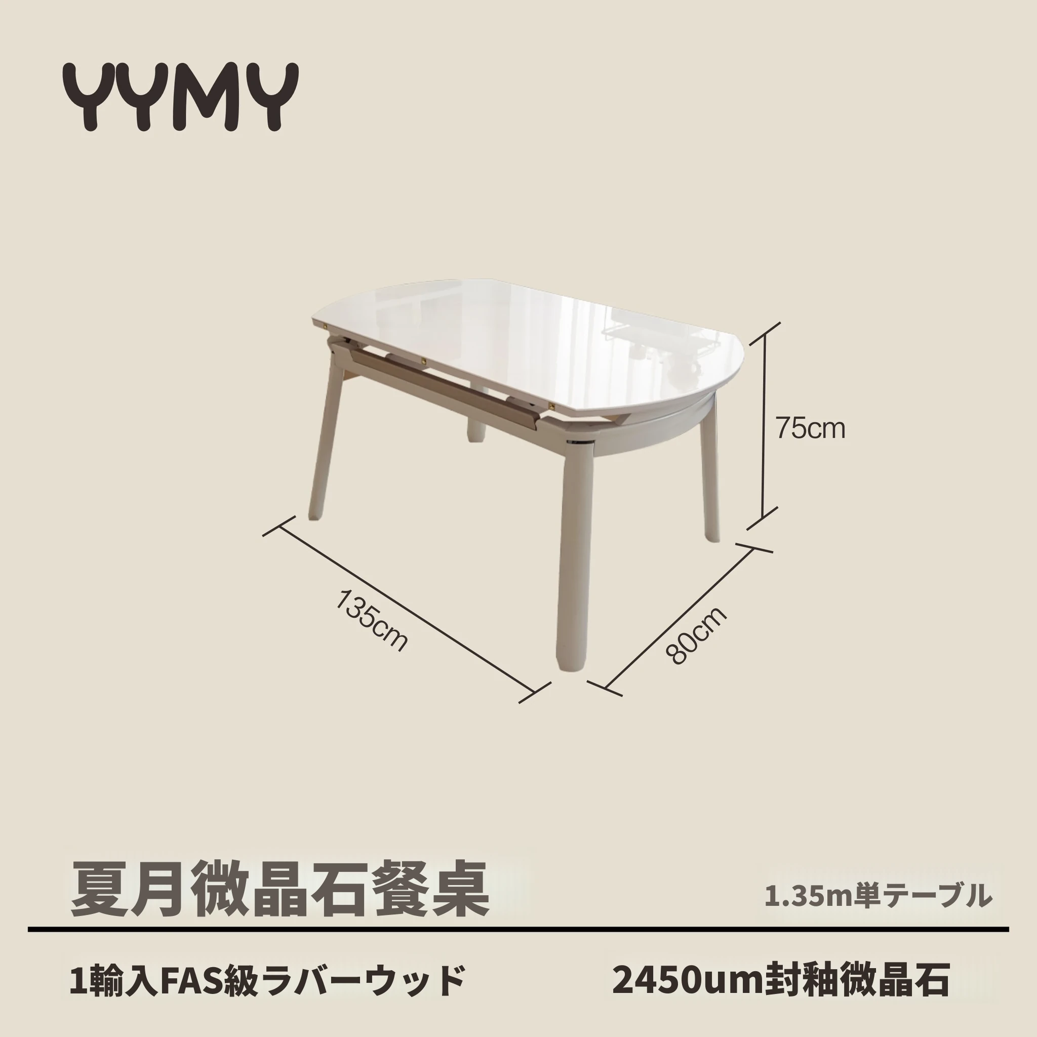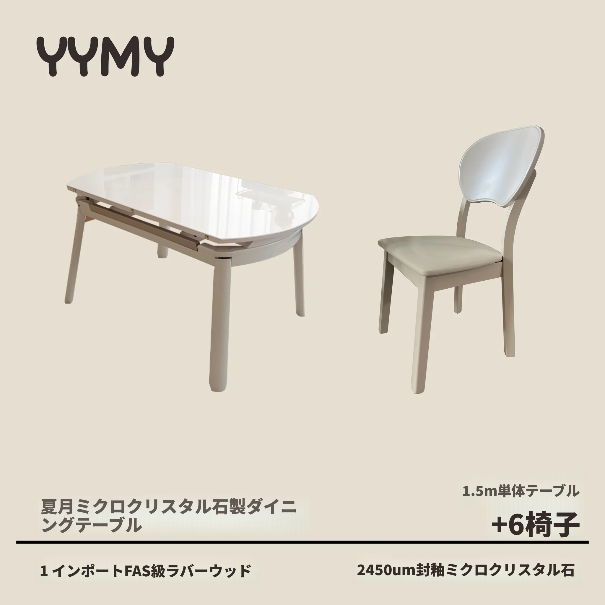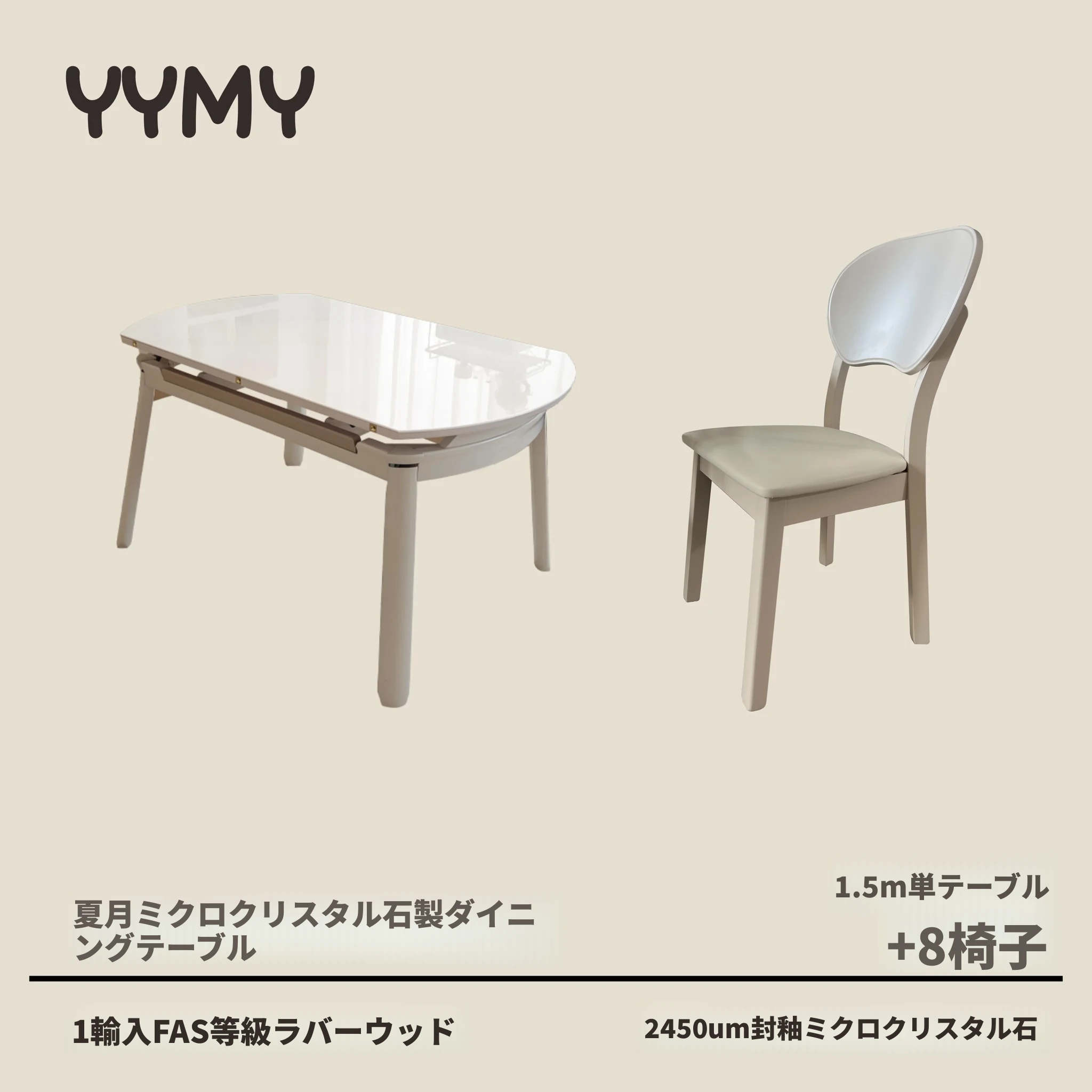エレガントなフレンチスタイルの大理石ダイニングテーブルセット - 拡張可能な円形デザイン、上質なホワイトウッド仕上げ、家庭にぴったりの高級感あふれるインテリアアイテム!