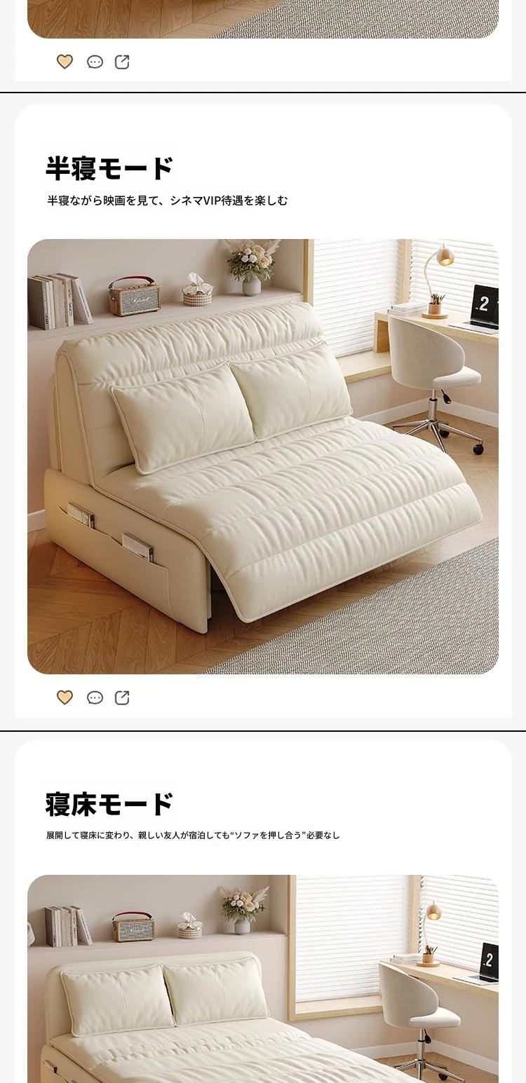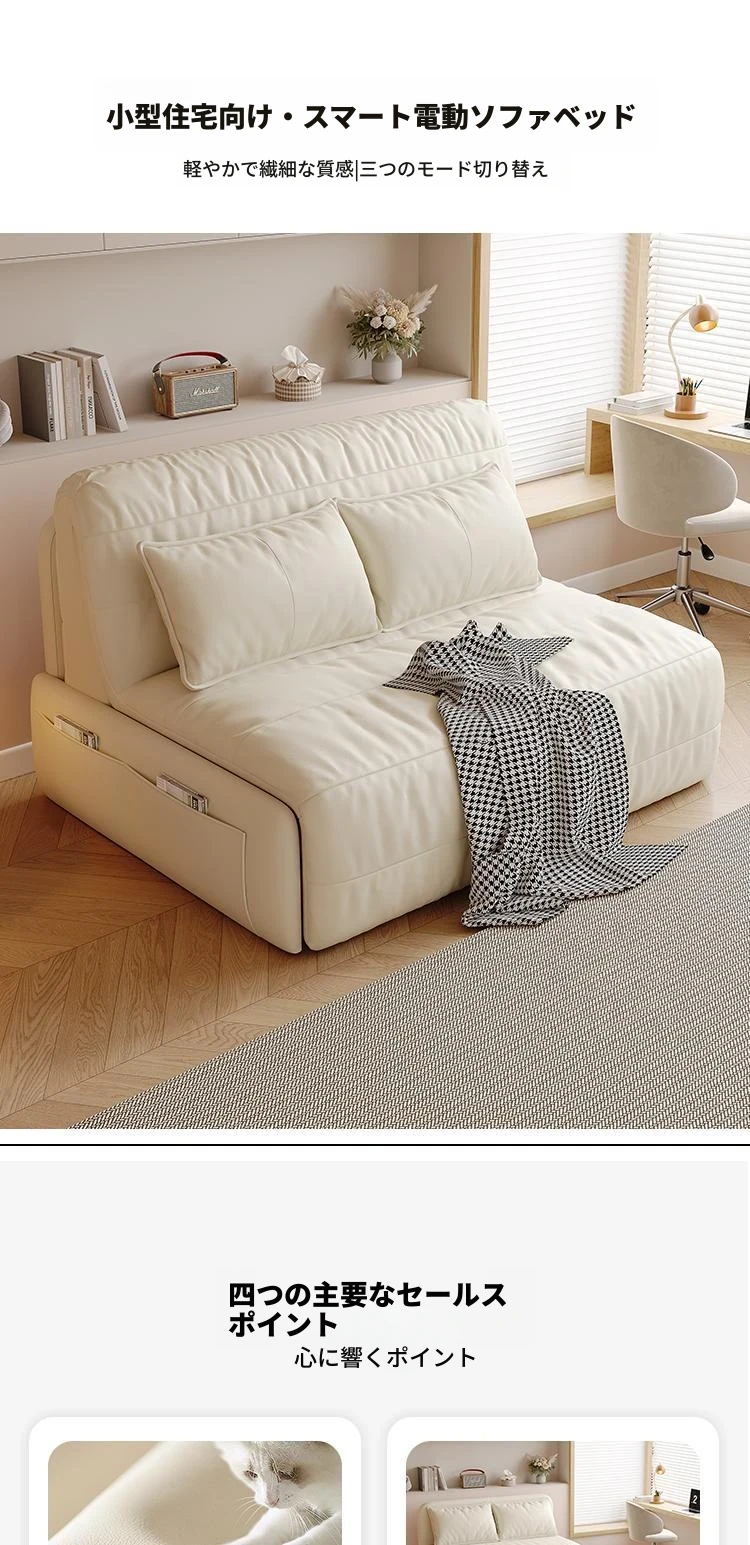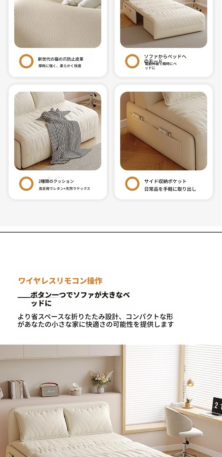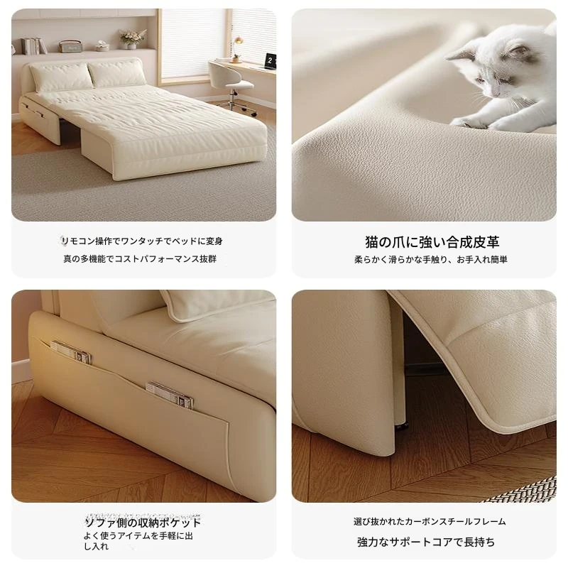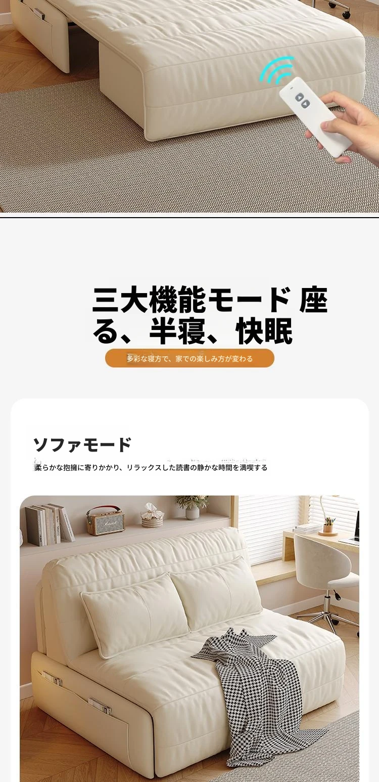 【香港送料無料】スマート電動リクライニングベッド!高級レザーソファベッド、2WAY機能付きで小型スペースにも最適!折りたたみ可能で、快適な睡眠とくつろぎを実現!