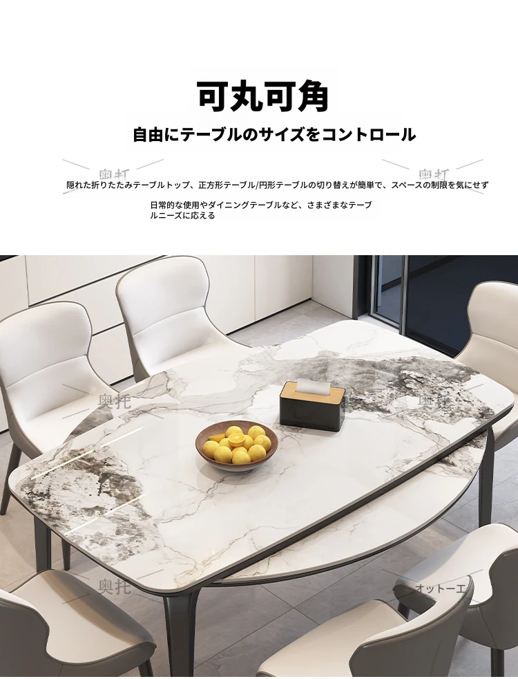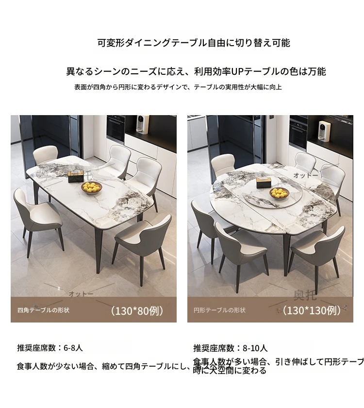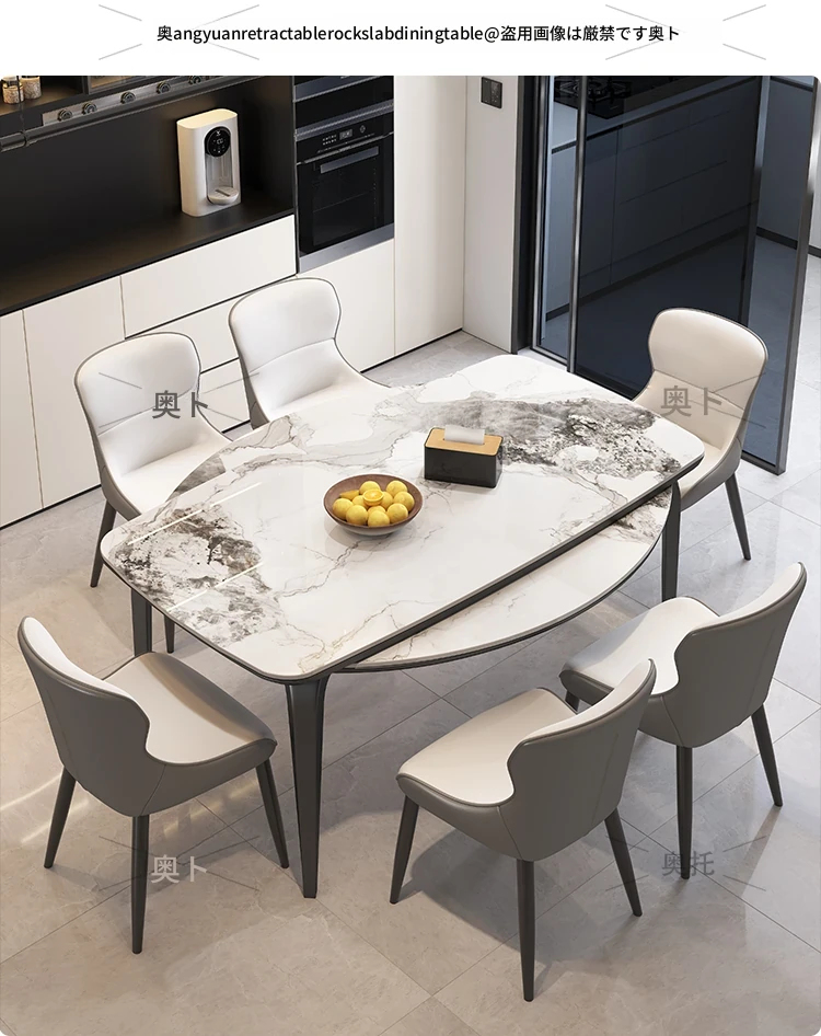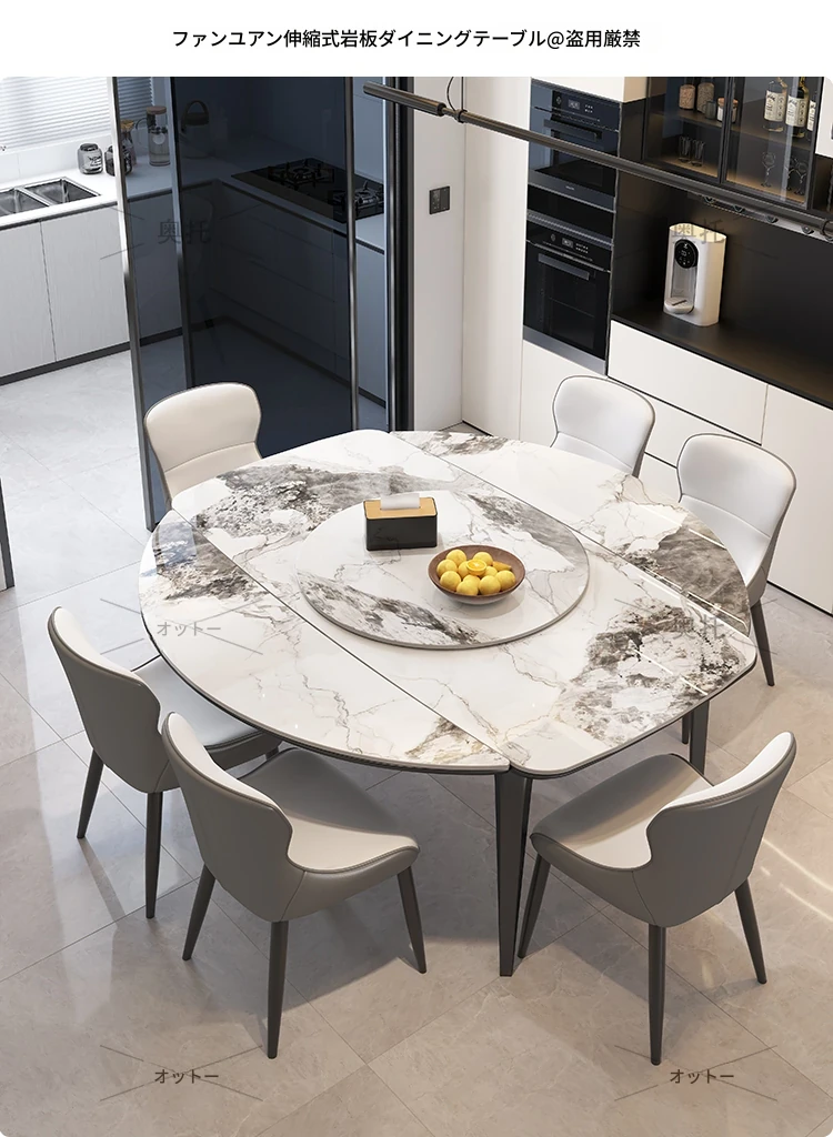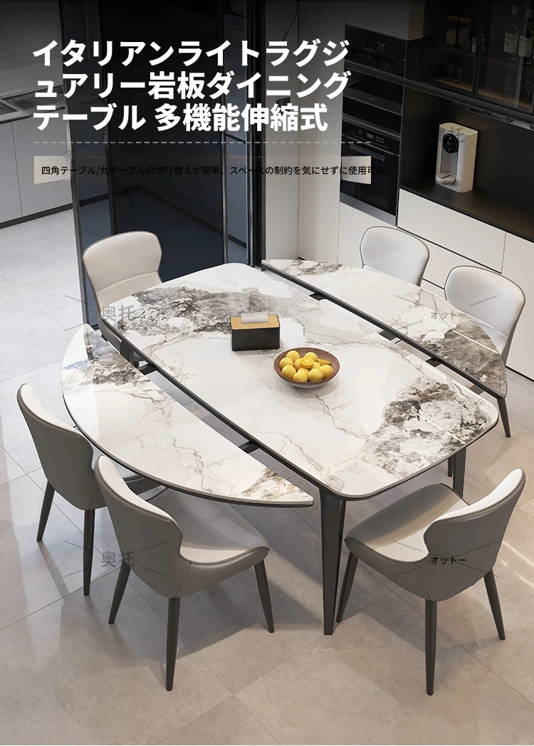 [香港送料無料] スマート伸縮式!現代的なイタリアンミニマルデザインの岩板ダイニングテーブル&チェアセット。四角から丸形へ変形可能、スタイリッシュで機能的な家の必需品!