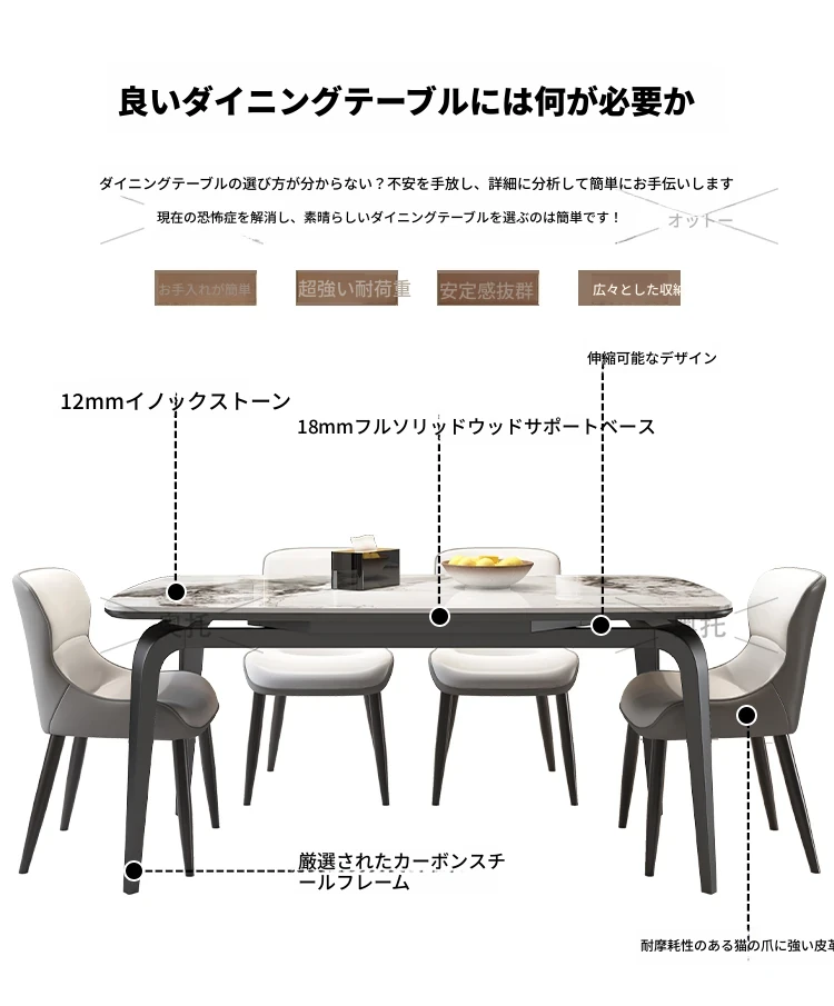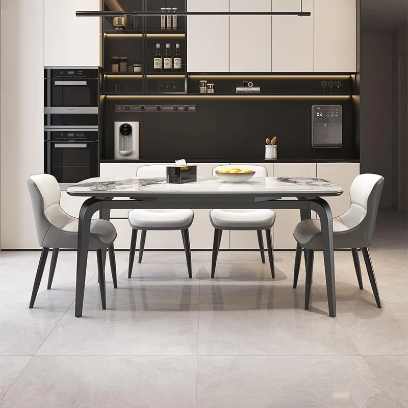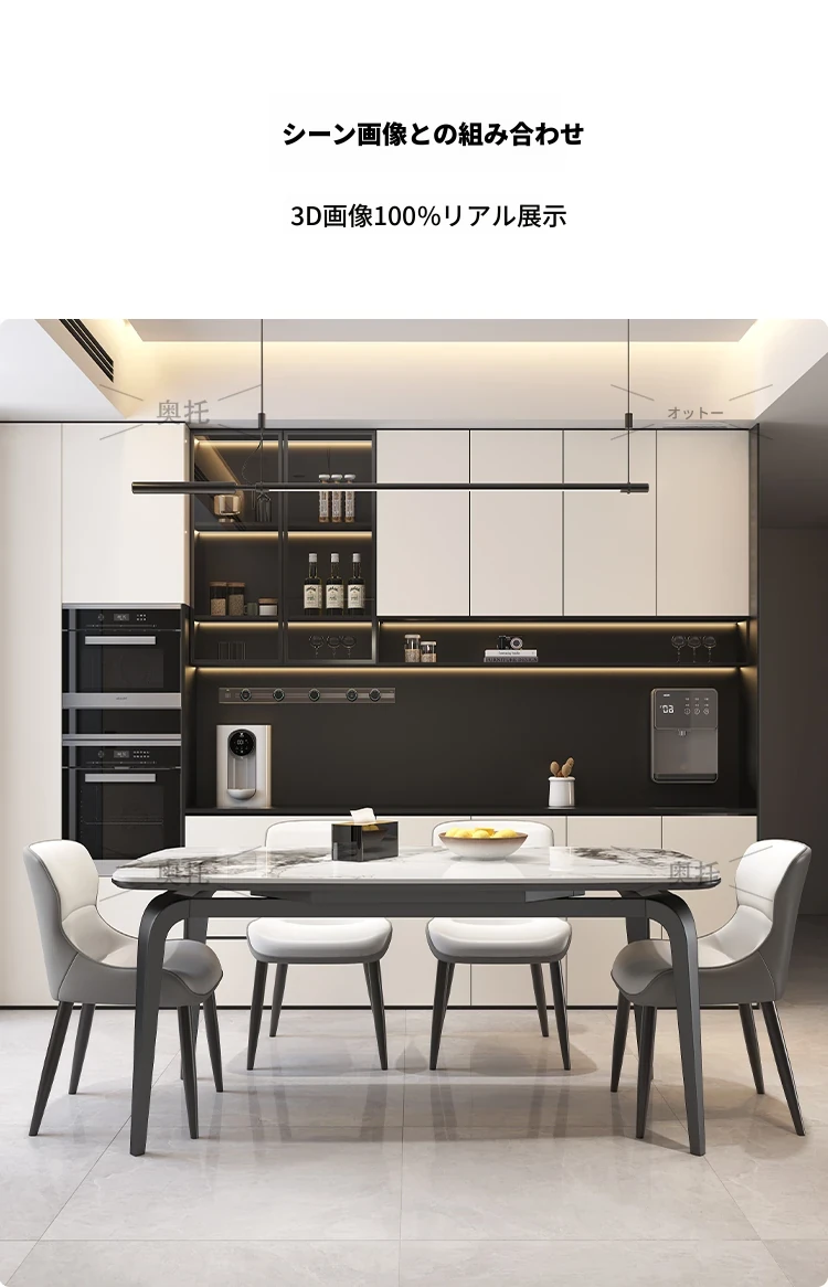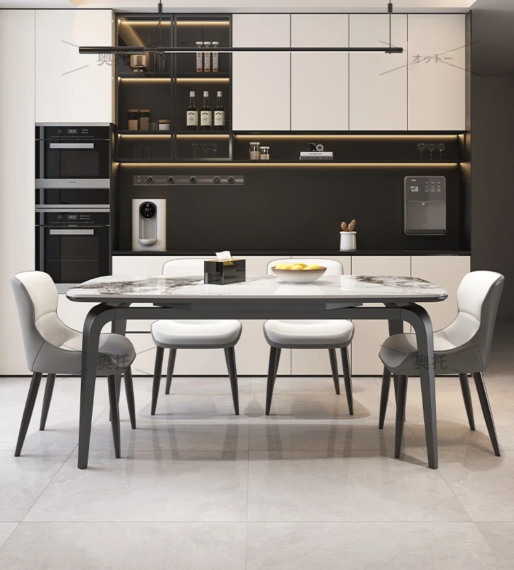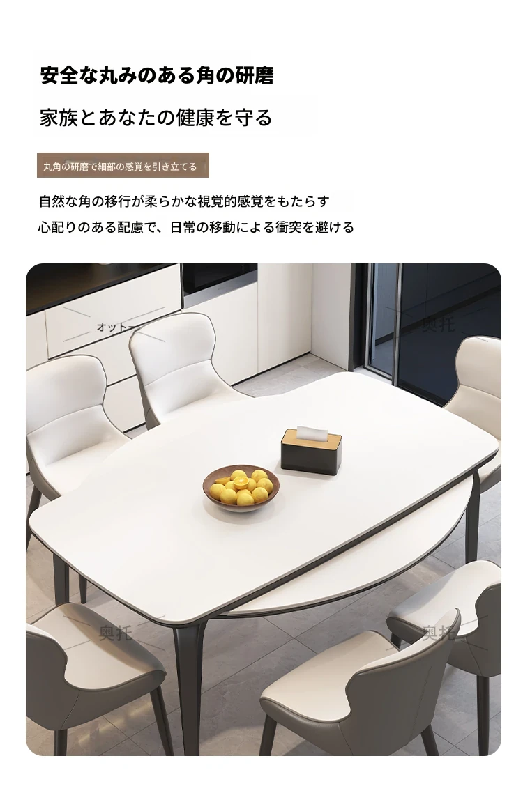 [香港送料無料] スマート伸縮式!現代的なイタリアンミニマルデザインの岩板ダイニングテーブル&チェアセット。四角から丸形へ変形可能、スタイリッシュで機能的な家の必需品!