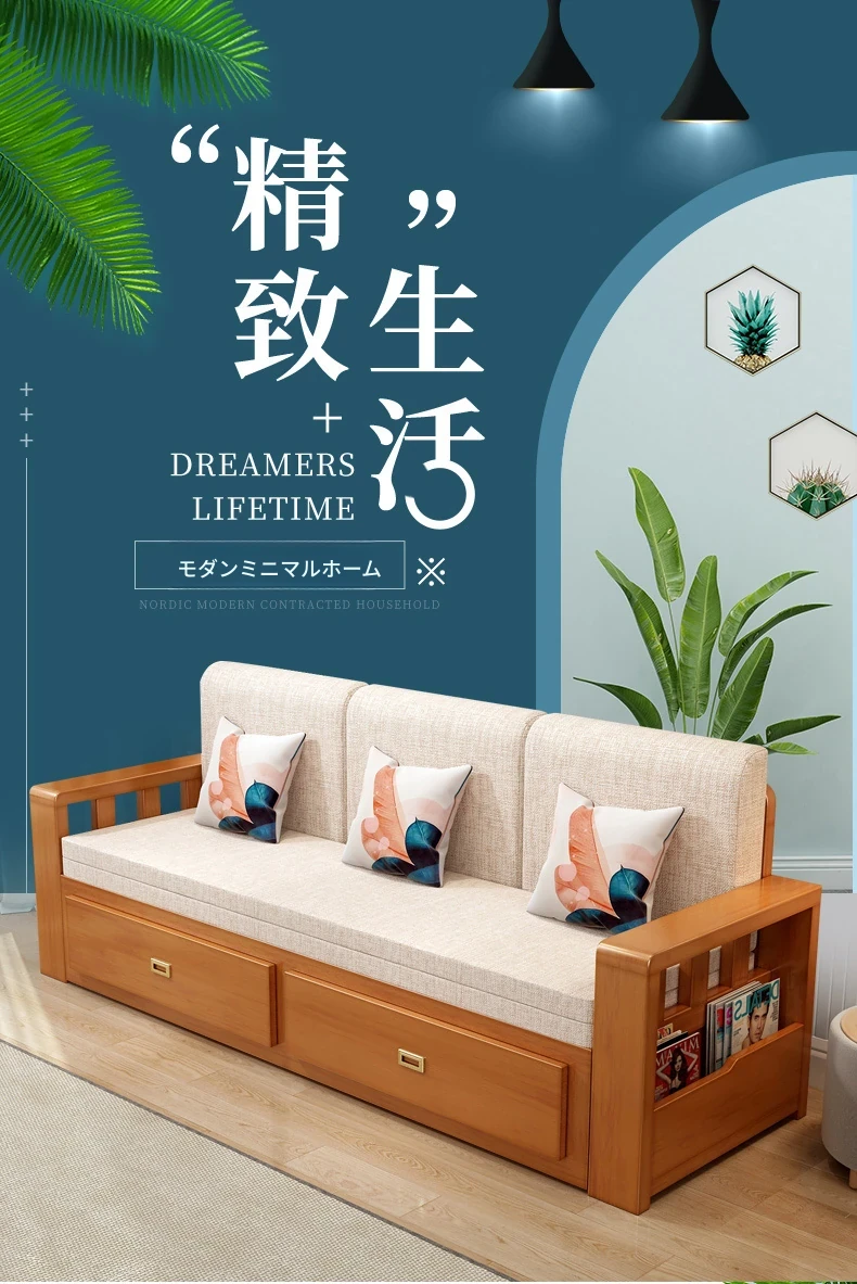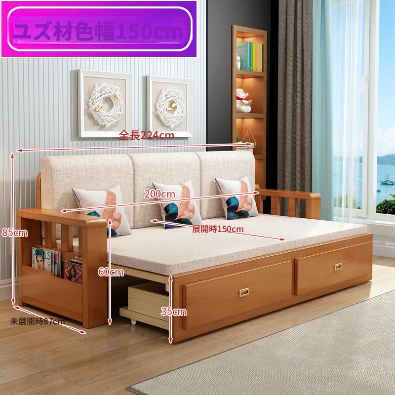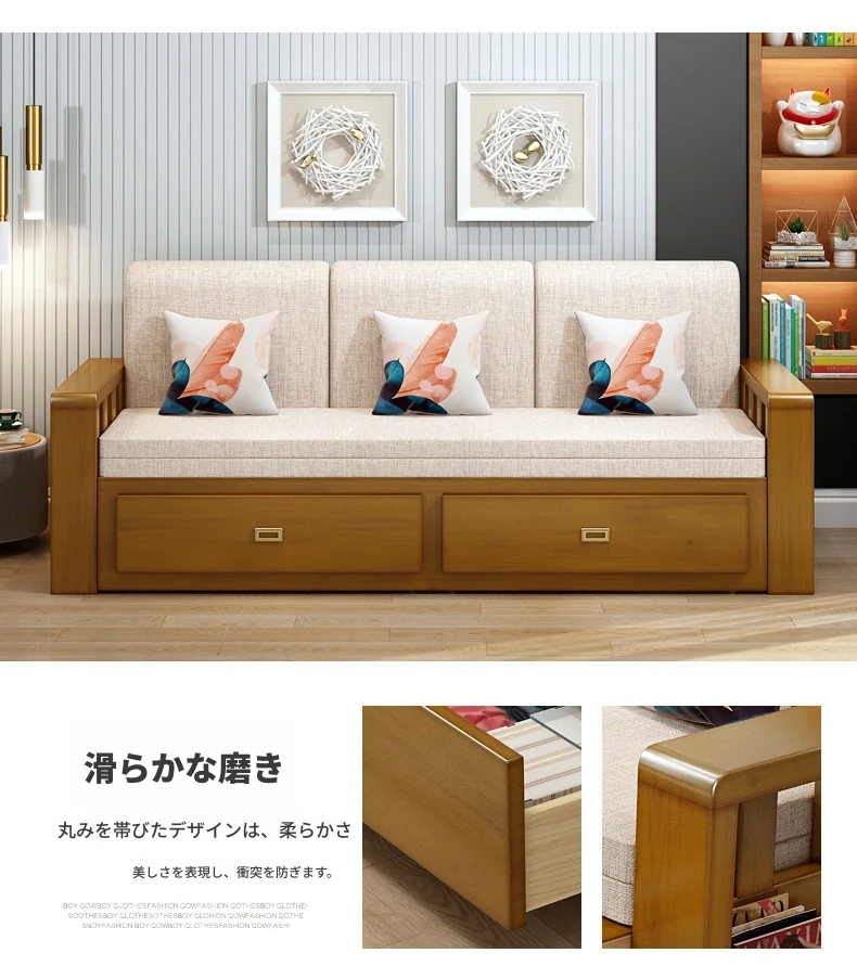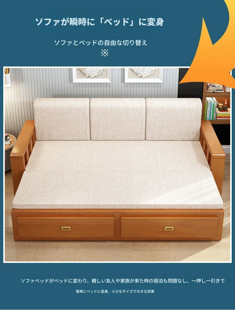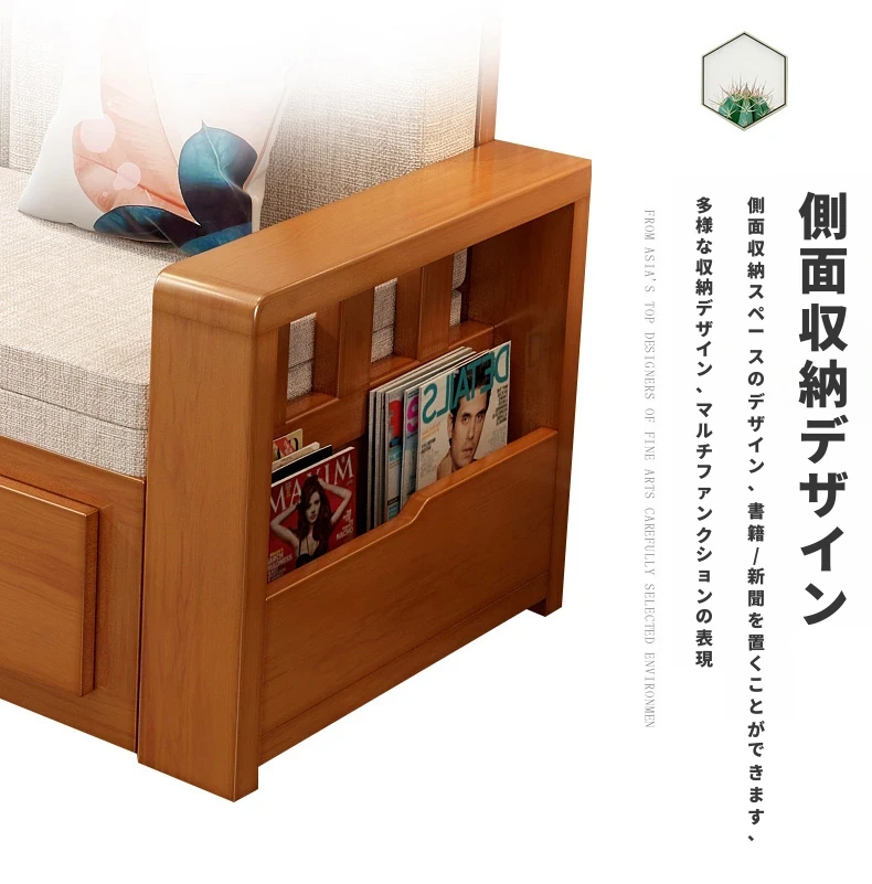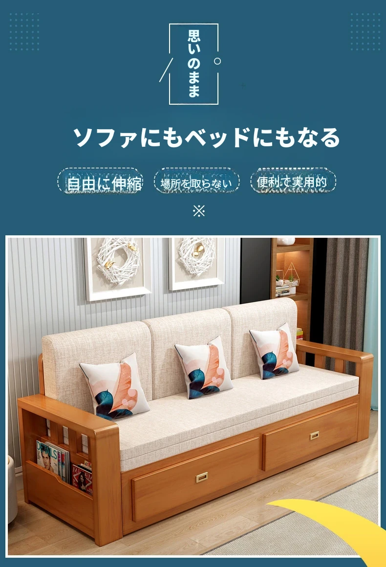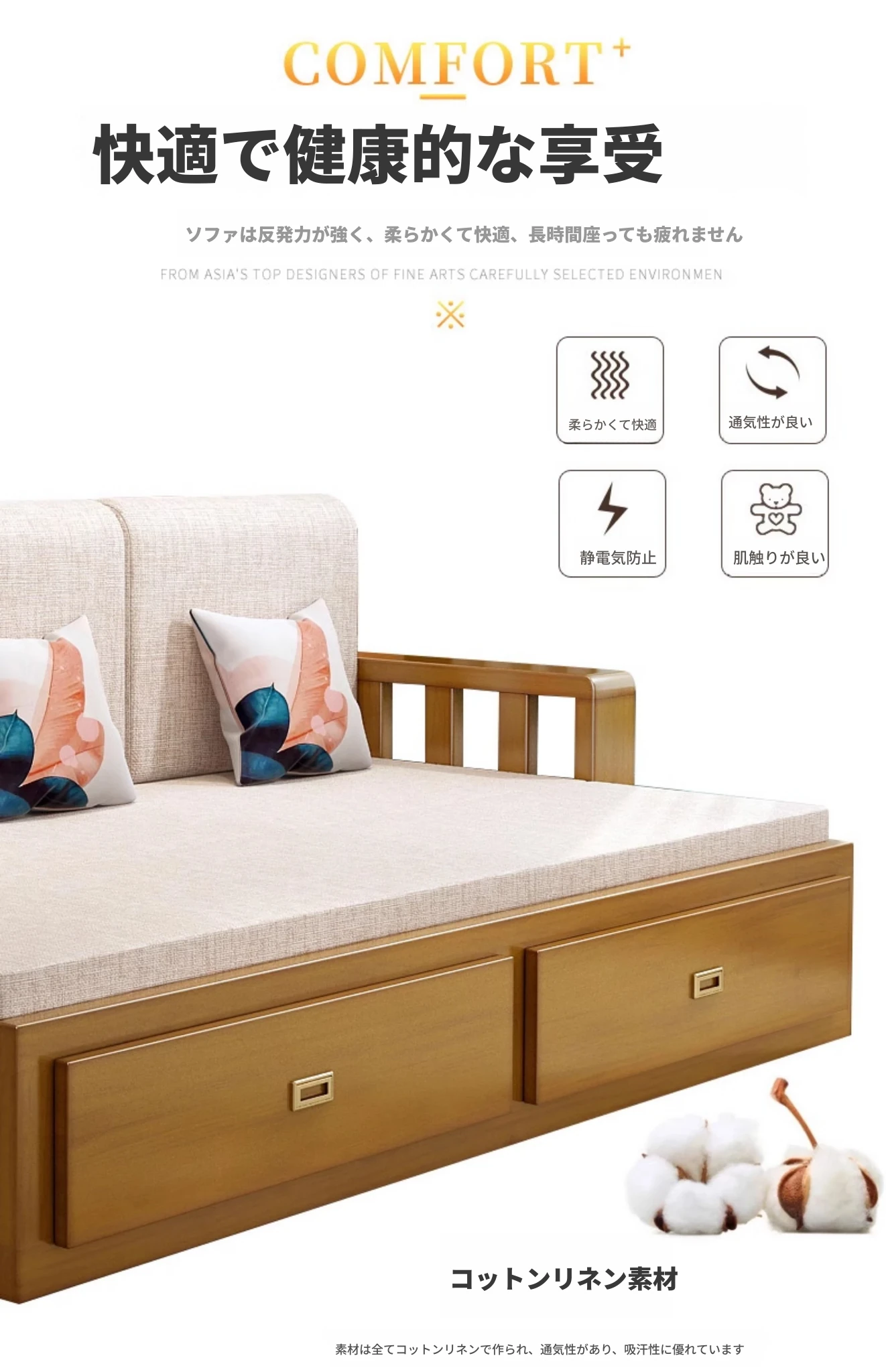 【香港送料無料】新中式多機能ソファベッド!収納付き・伸縮可能・折りたたみ式で小型スペースにも最適!高品質な布地と天然木材を使用したおしゃれなデザインで、快適な生活空間を実現します。