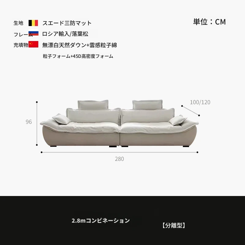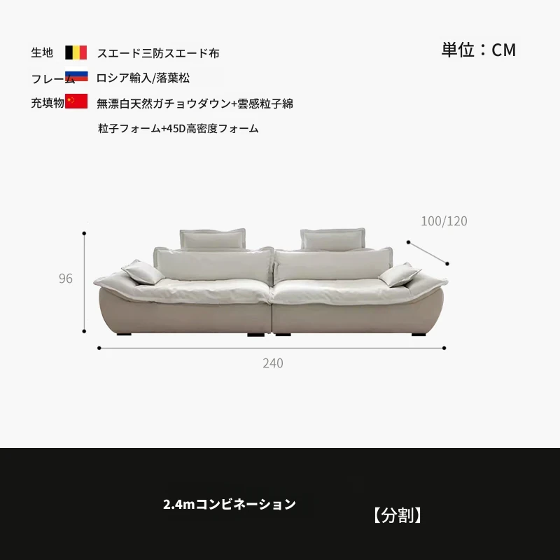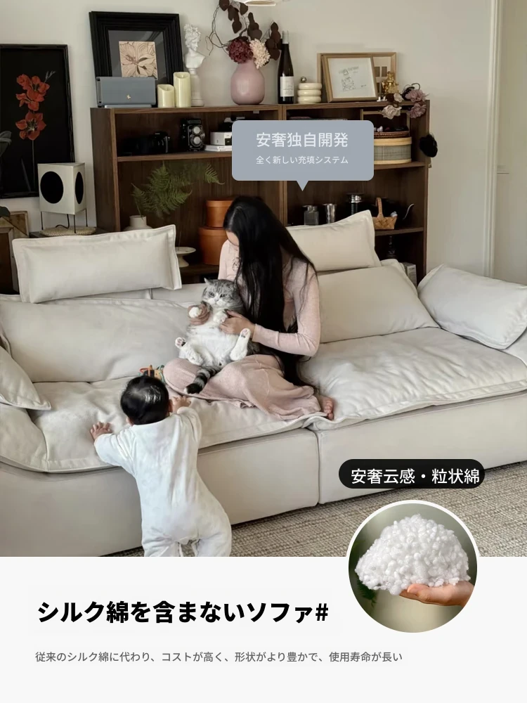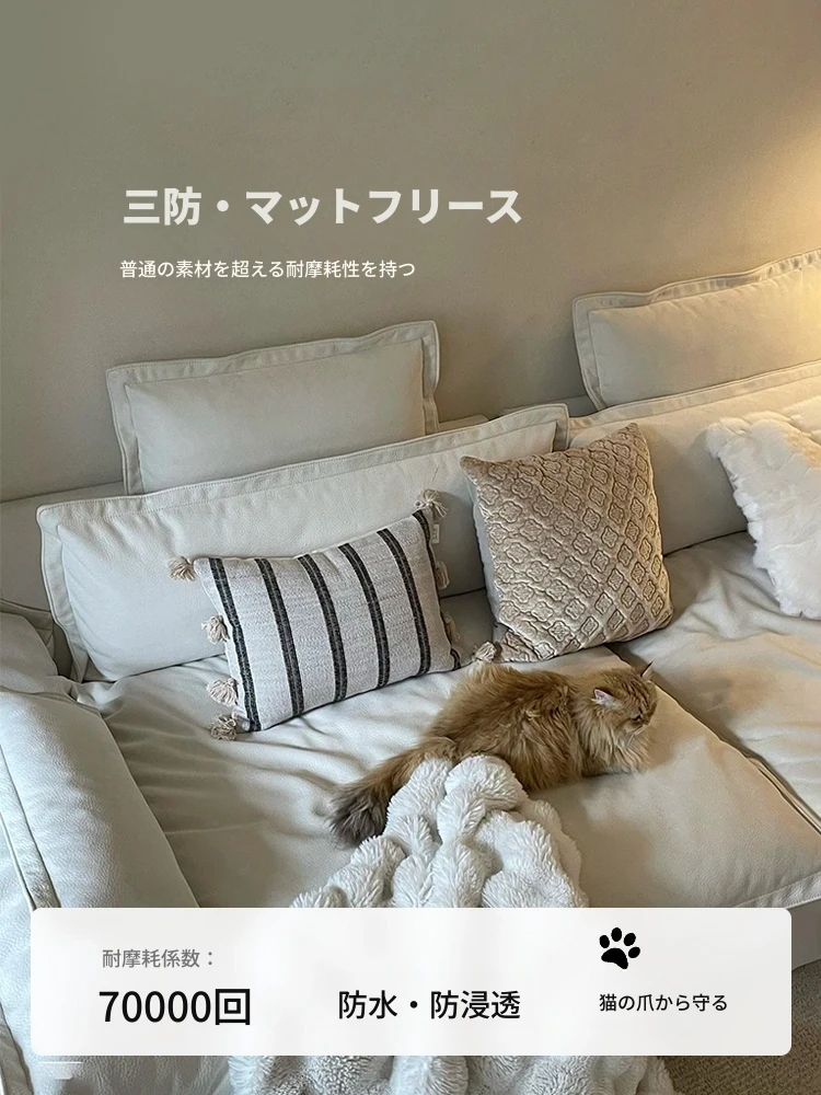フレンチクリーム風の大きなセーターソファ - 洗えるカバー付き、猫の爪も安心!リクライニング機能付き、快適なリビングルームの必需品。おしゃれで実用的なデザインで、あなたの空間を華やかに演出します!