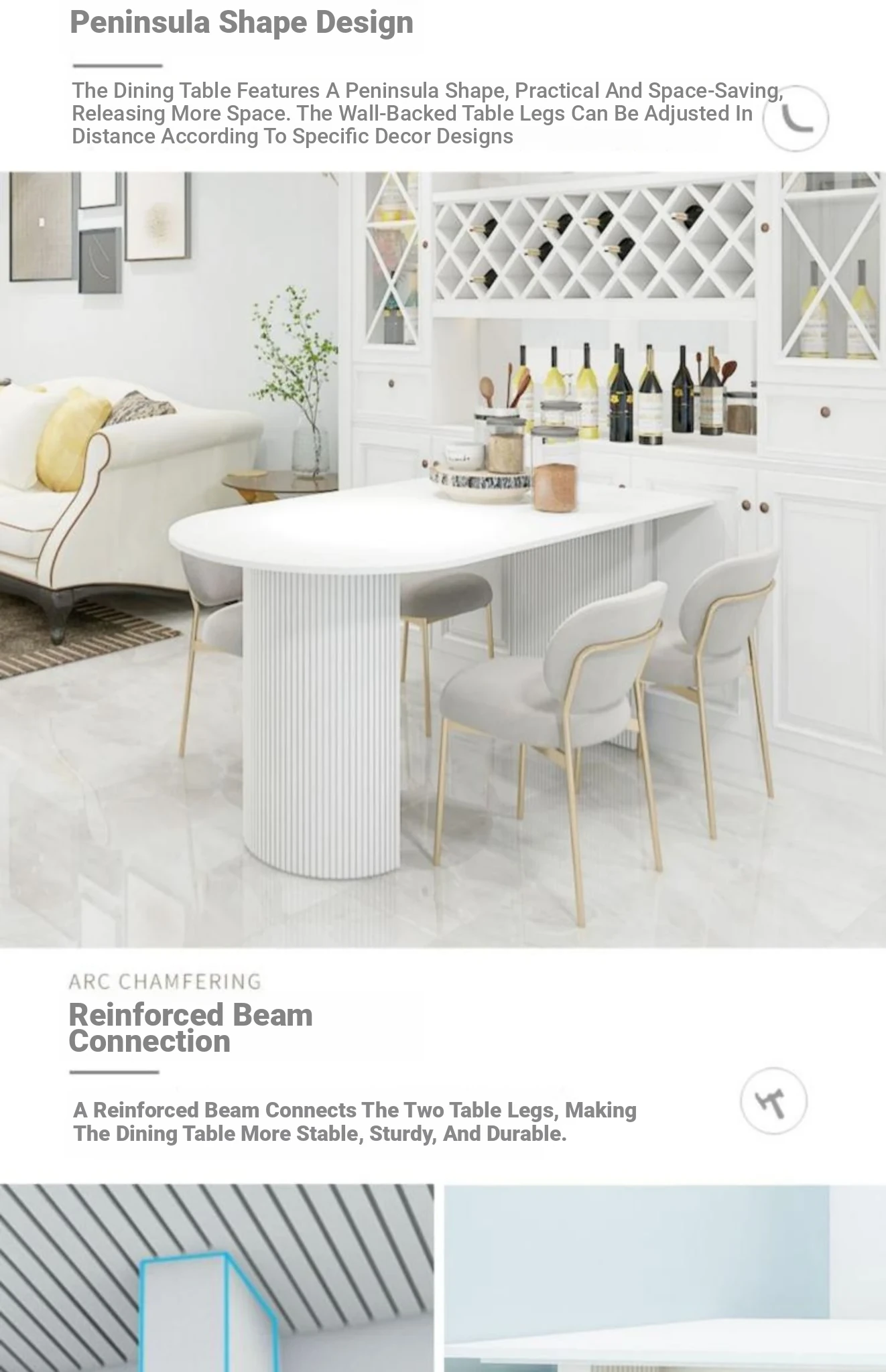 French Cream-Style Compact Island Dining Table - Wall-Mounted, Half-Round Solid Wood Design with Marble Finish for Home Use, Perfect for Small Spaces!
