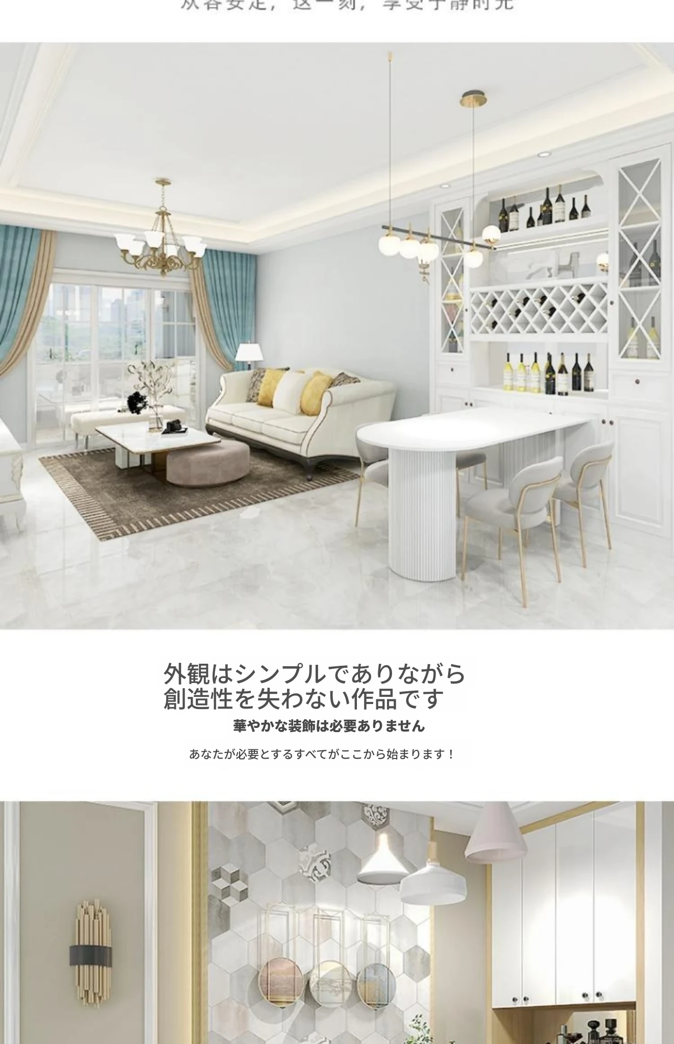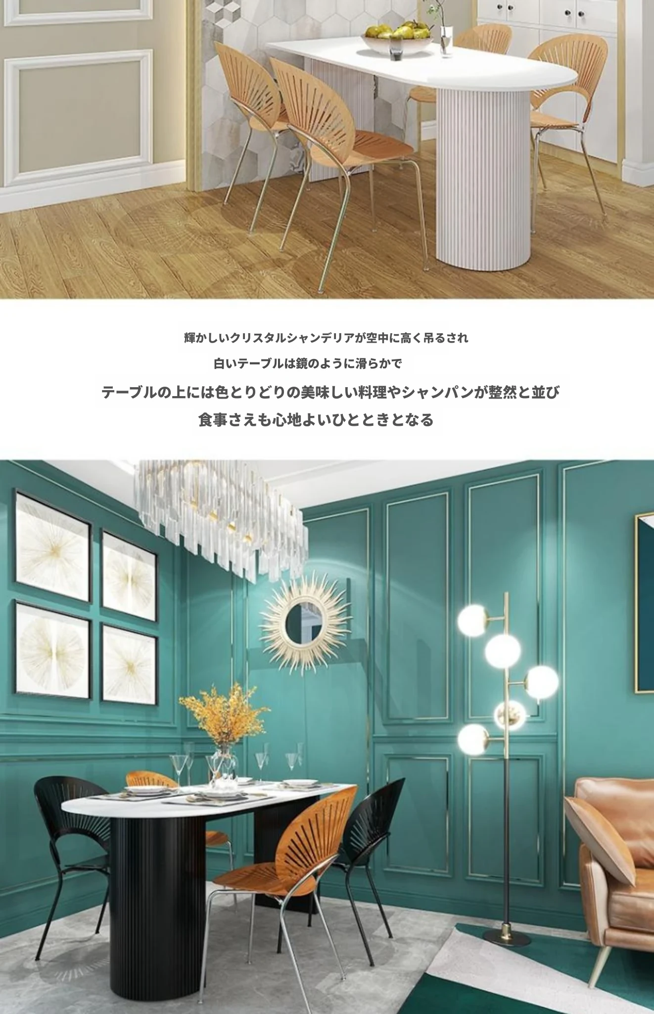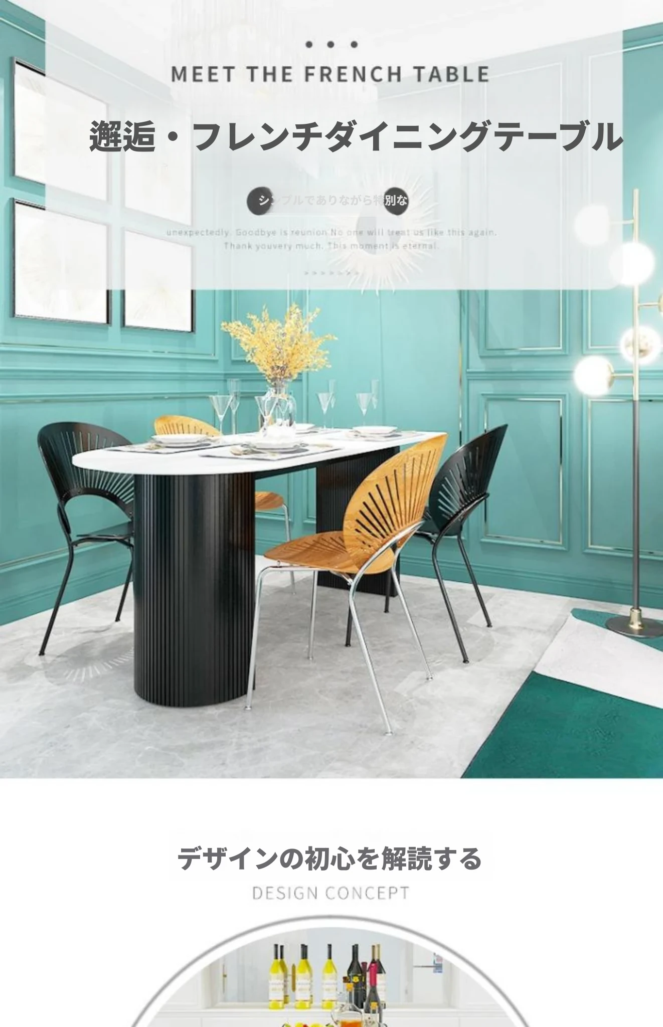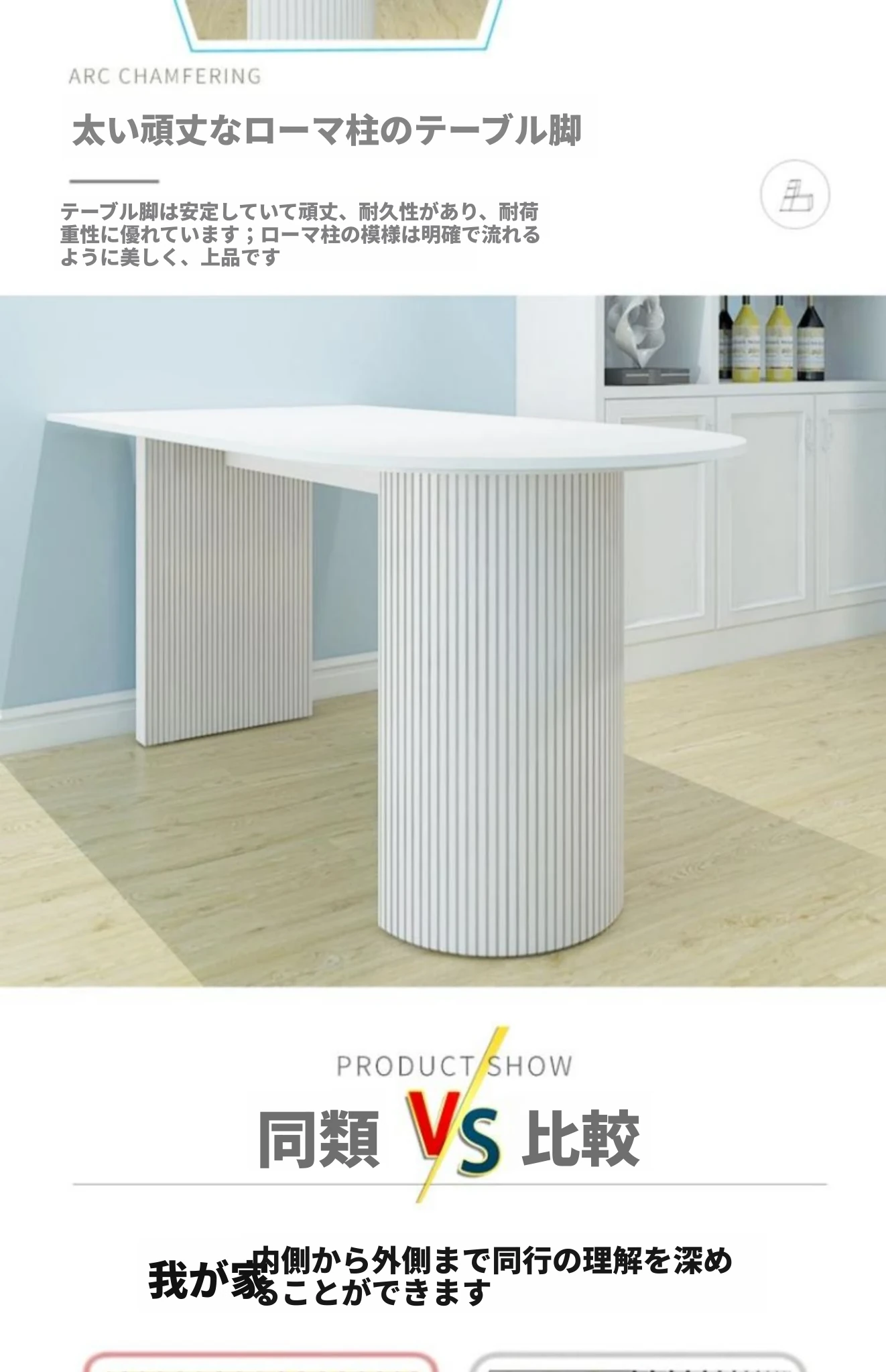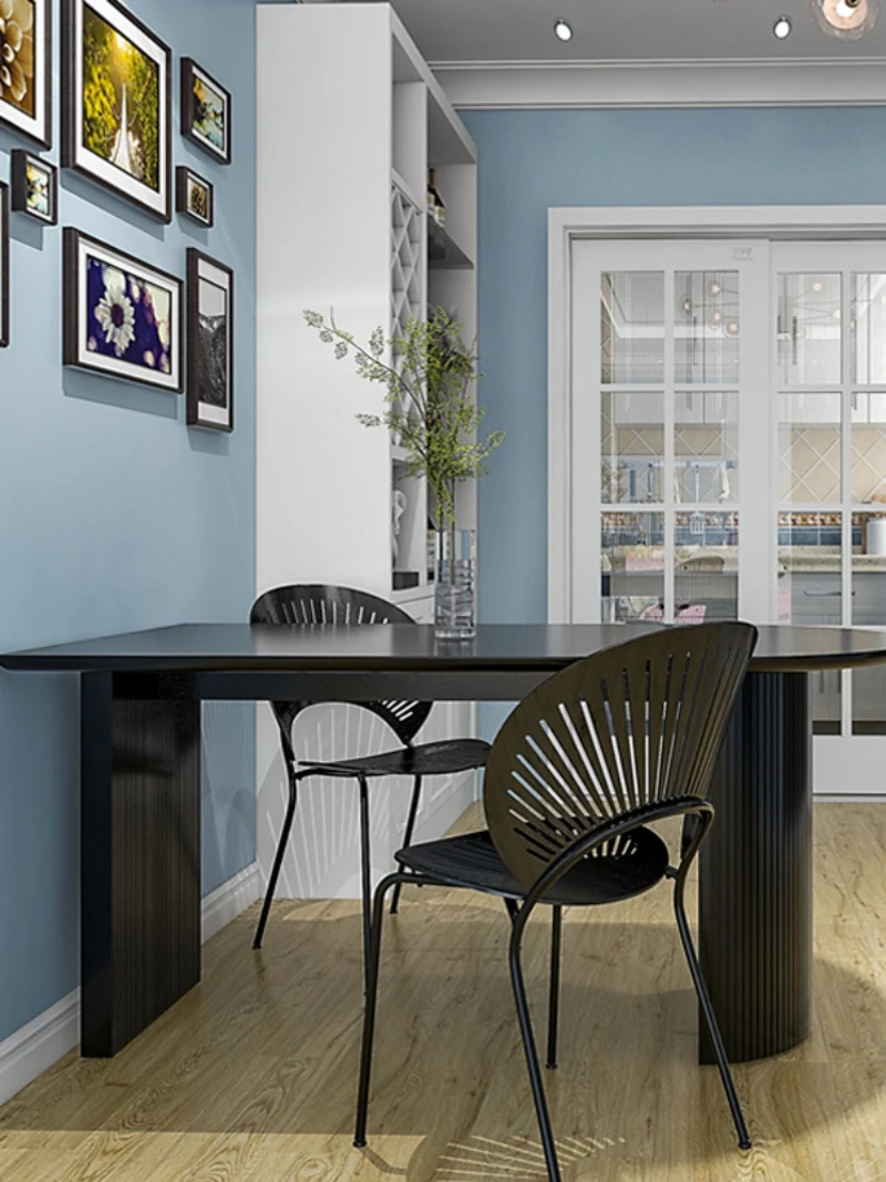 フランス風クリーム仕上げの小型アイランド型ダイニングテーブル - 壁掛けデザイン、天然木製のハーフサークルテーブル、エレガントな大理石仕上げでおしゃれな食事空間を演出!