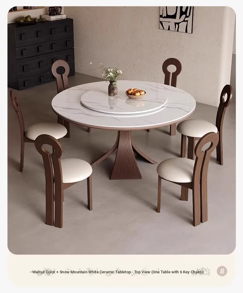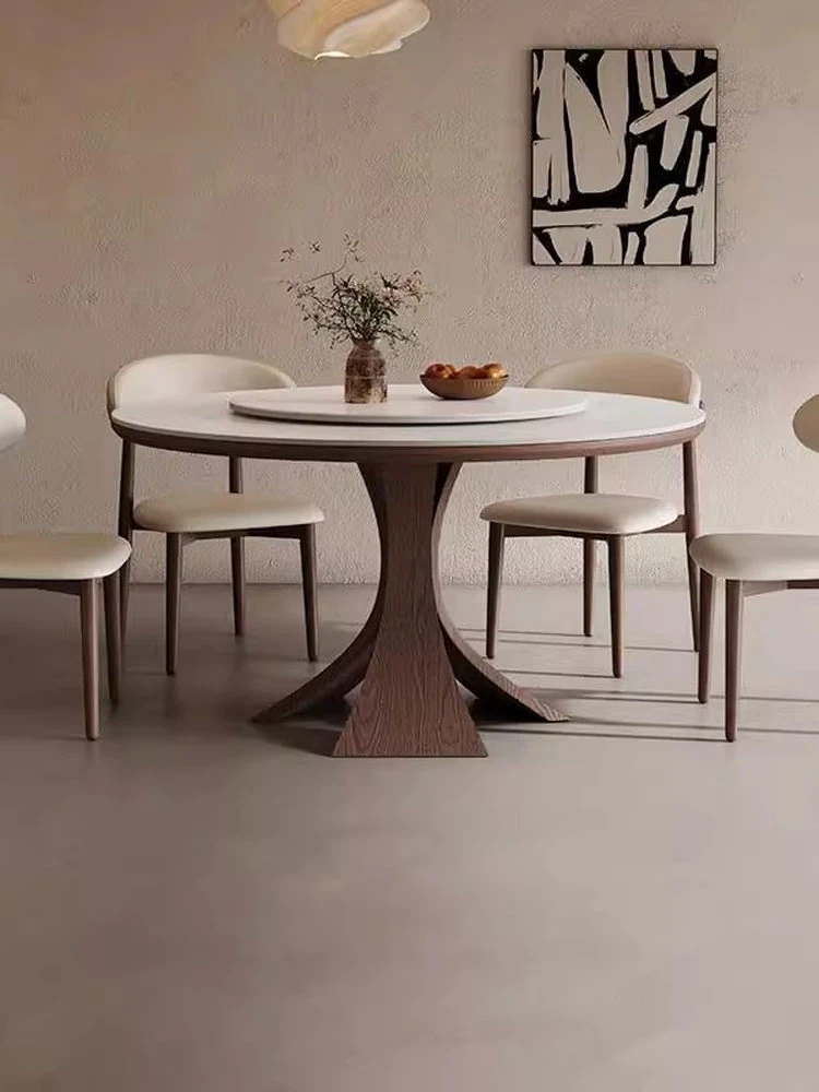 French Vintage Solid Wood Round Dining Table and Chair Set - Retro Style Circular Table for Small Spaces, Perfect for Cozy Meals at Home