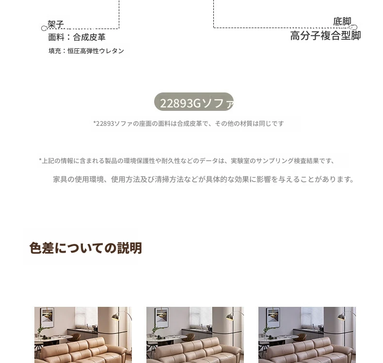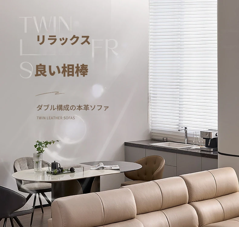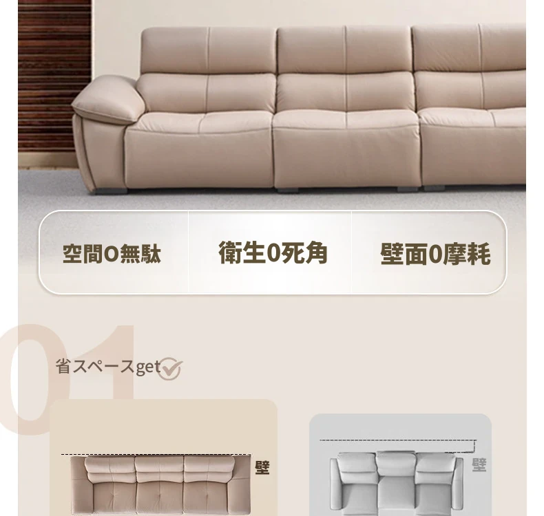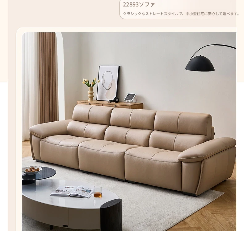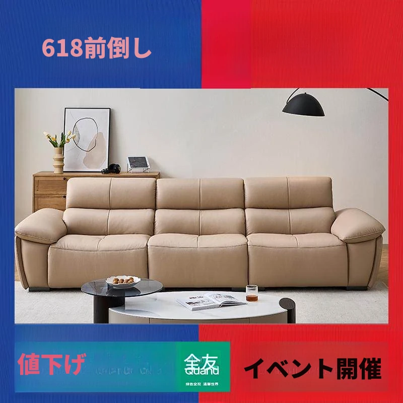 全友家居同款!2289G3輸入本革イエローカウレザーソファー - スタイリッシュでシンプル、背面を壁にぴったりフィット!快適な座り心地と高級感を兼ね備えた一品。