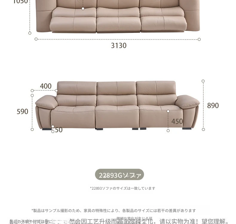 22893G電動皮ソファ(左1+中1+右1機能)3点セット