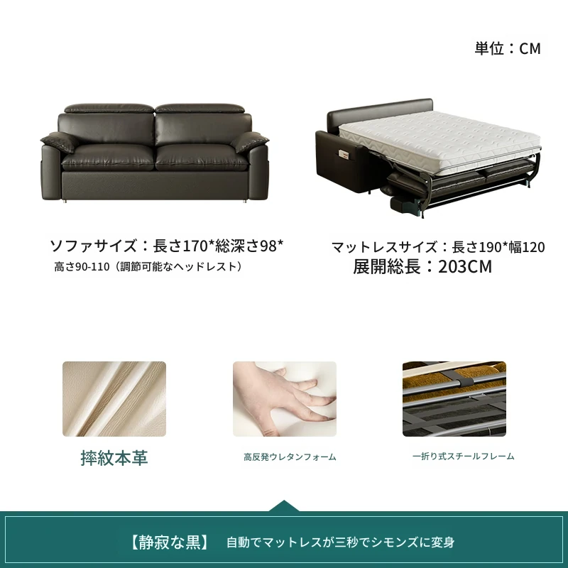 エコレザー-静寂なブラック170CM【ラテックスマットレス含む】