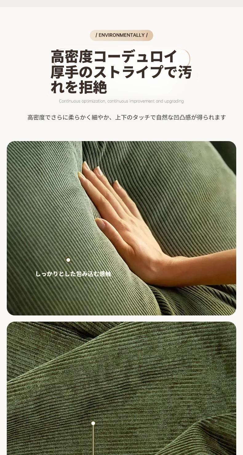 コーデュロイ-田園グリーン210CM【ラテックスマットレス含む】