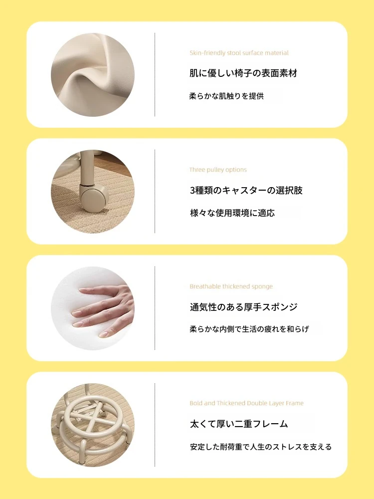 家庭用スライドロール小スツール - 美しい仕上げ、足のケア、子供の学びをサポート!コンパクトで便利なデザイン、どこでも使える!