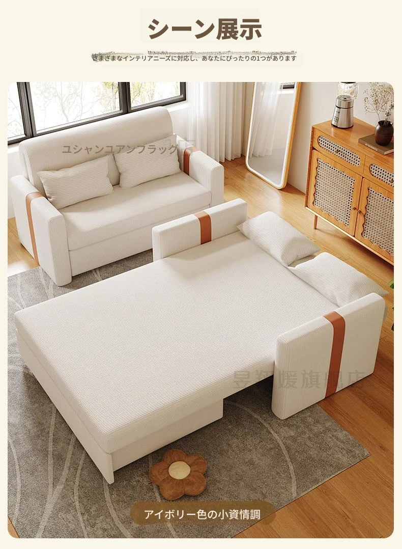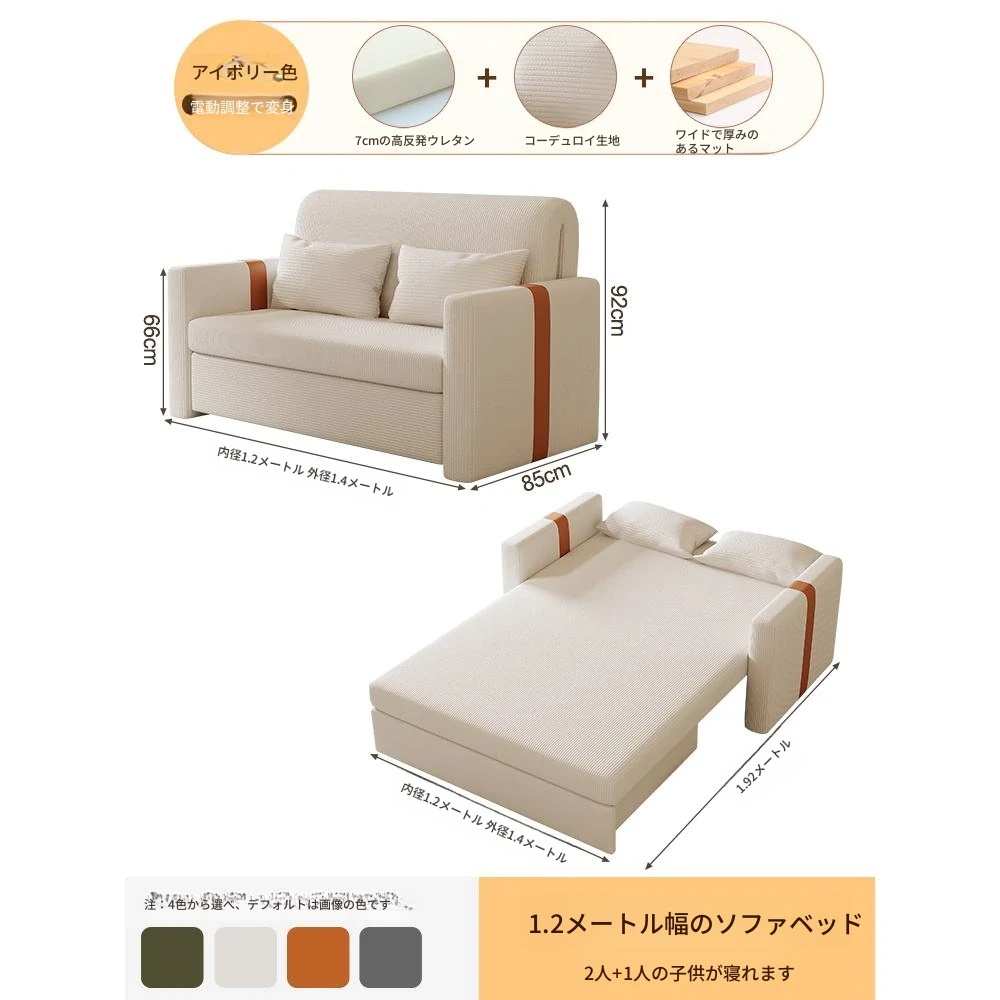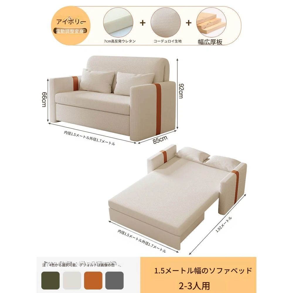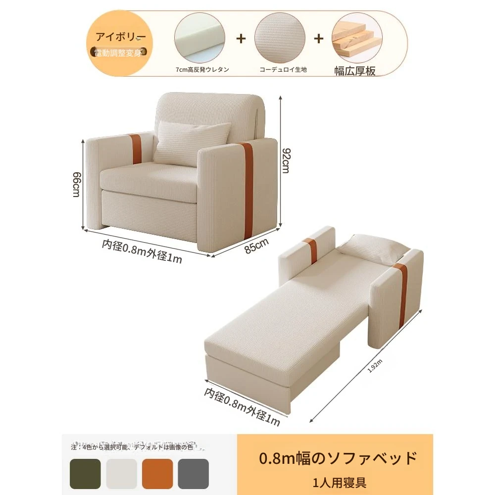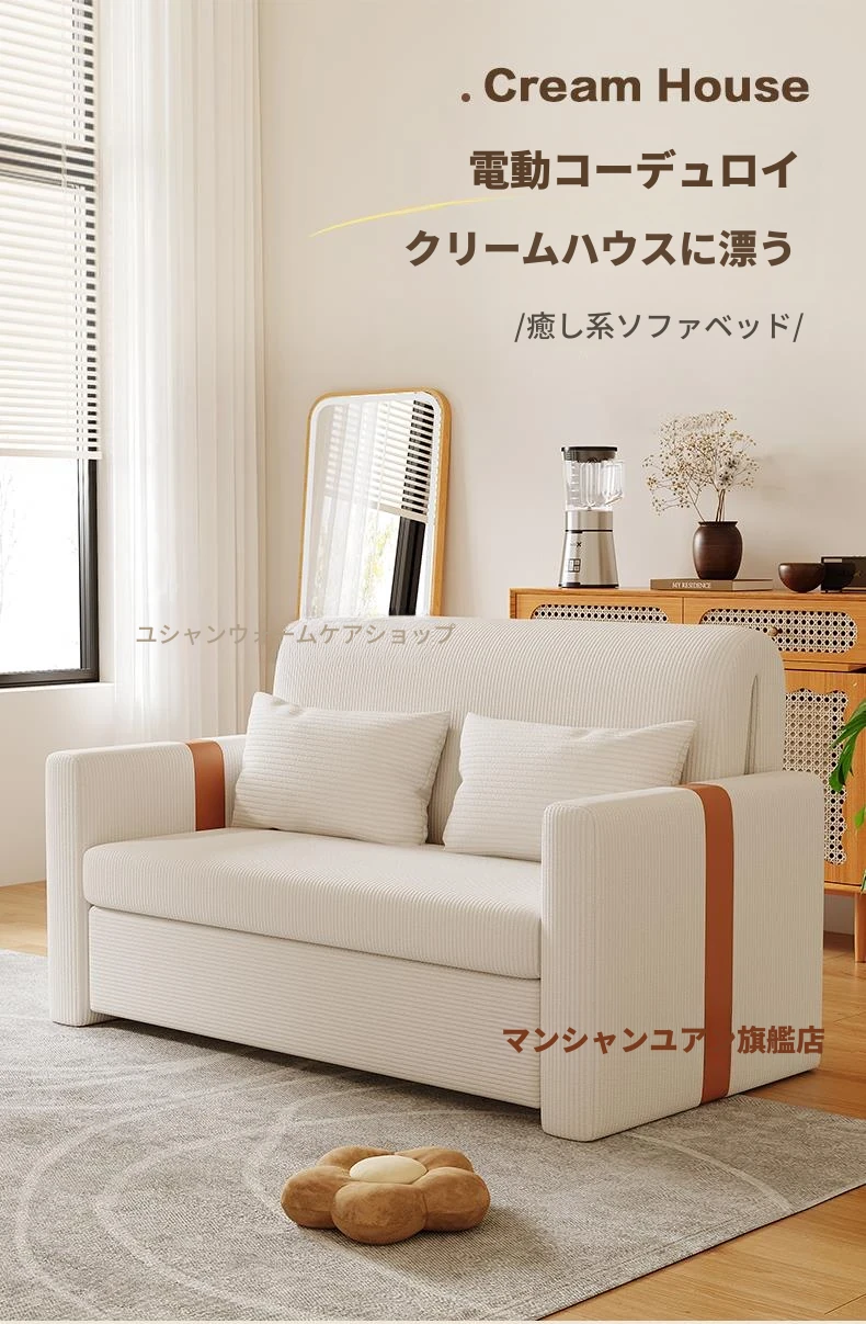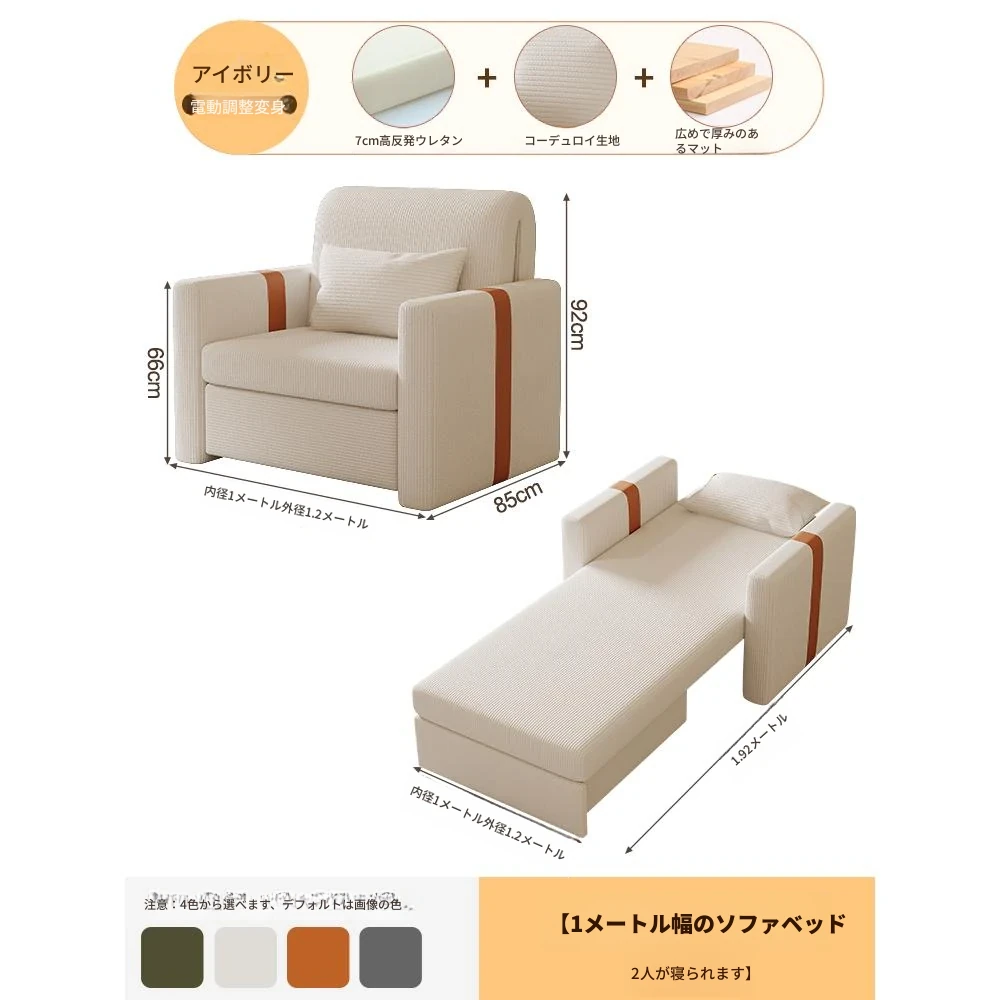 香港製 ソファベッド 電動 折りたたみクリームカラー 小型リビング・寝室向け スライド・伸縮機能付き 即日配送!快適な空間を演出します!