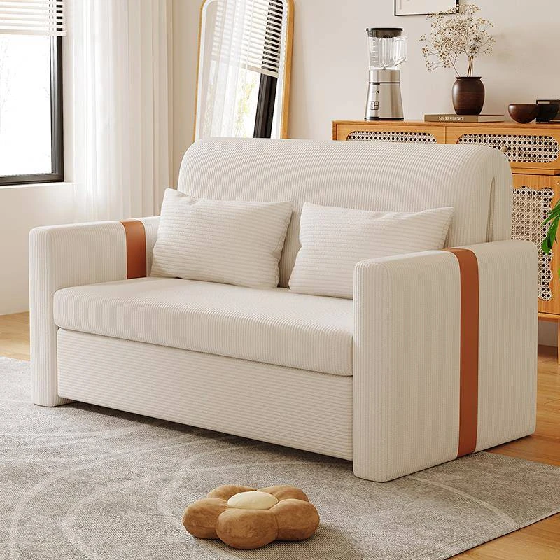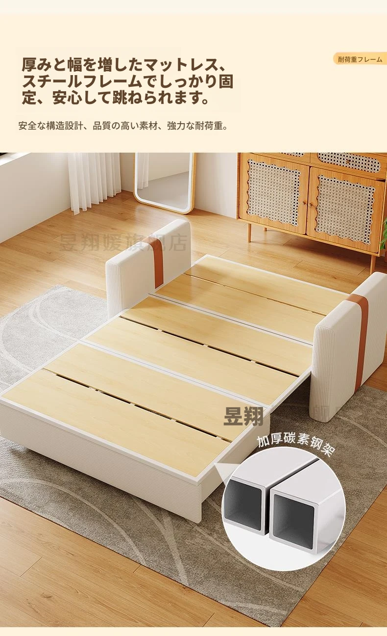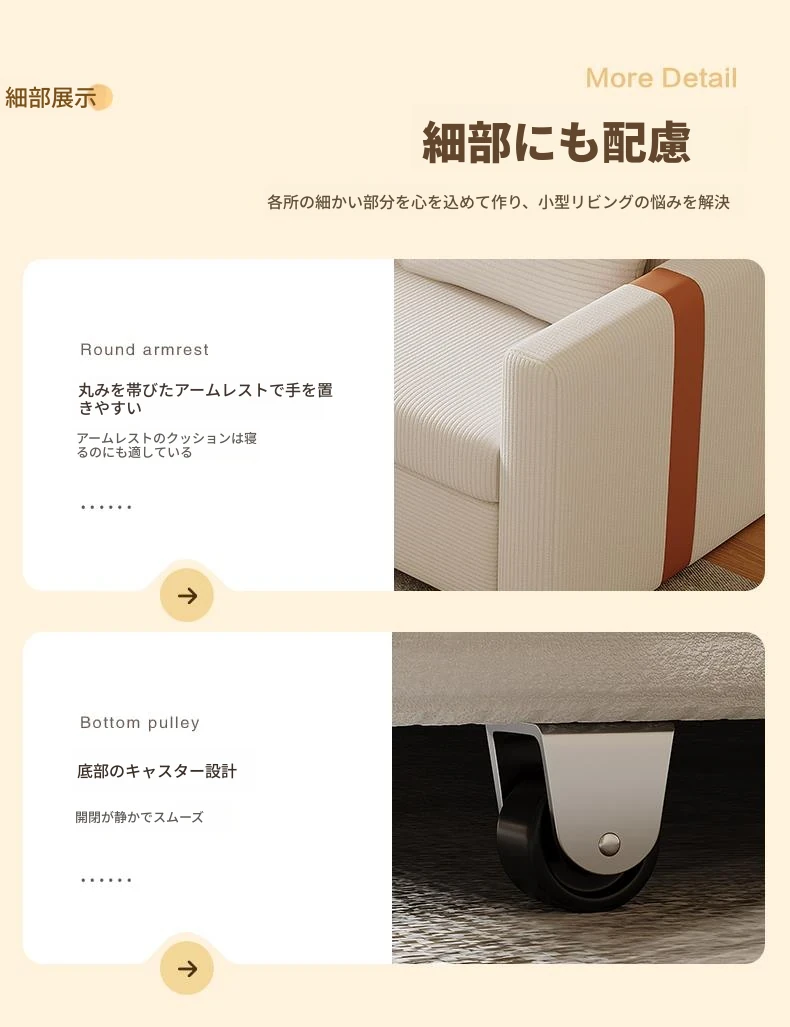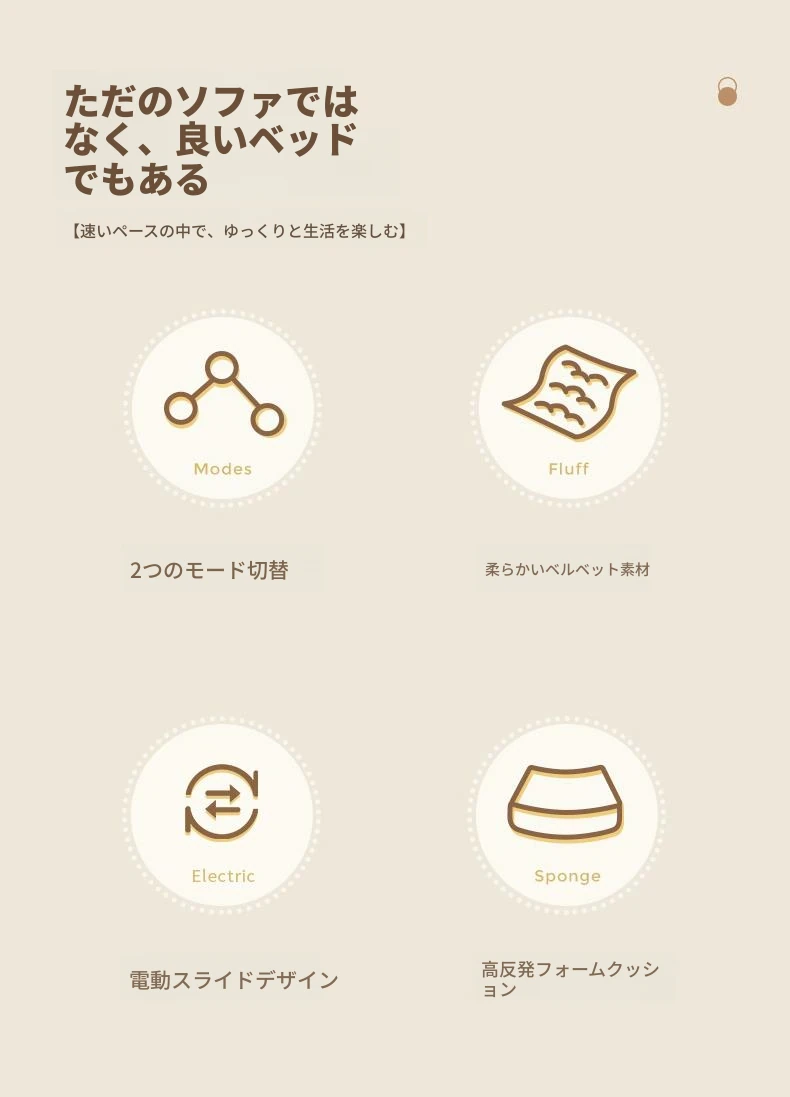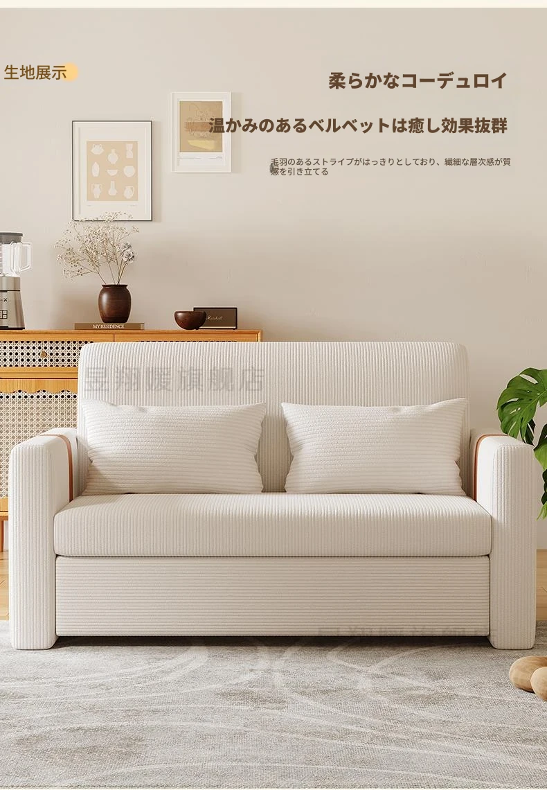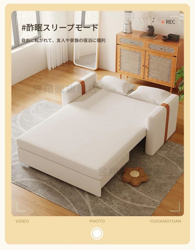 香港製 ソファベッド 電動 折りたたみクリームカラー 小型リビング・寝室向け スライド・伸縮機能付き 即日配送!快適な空間を演出します!