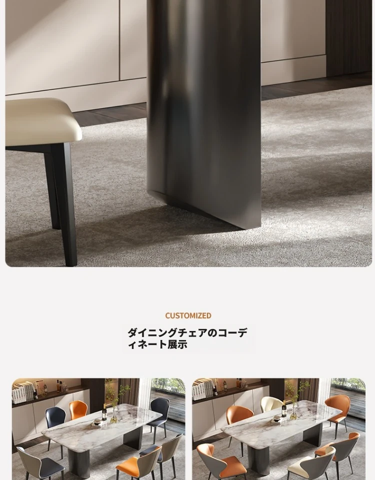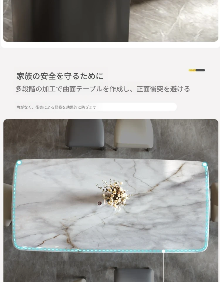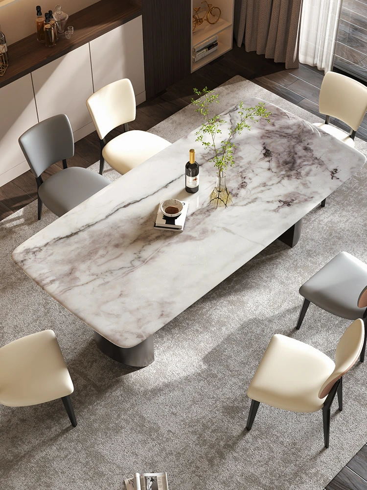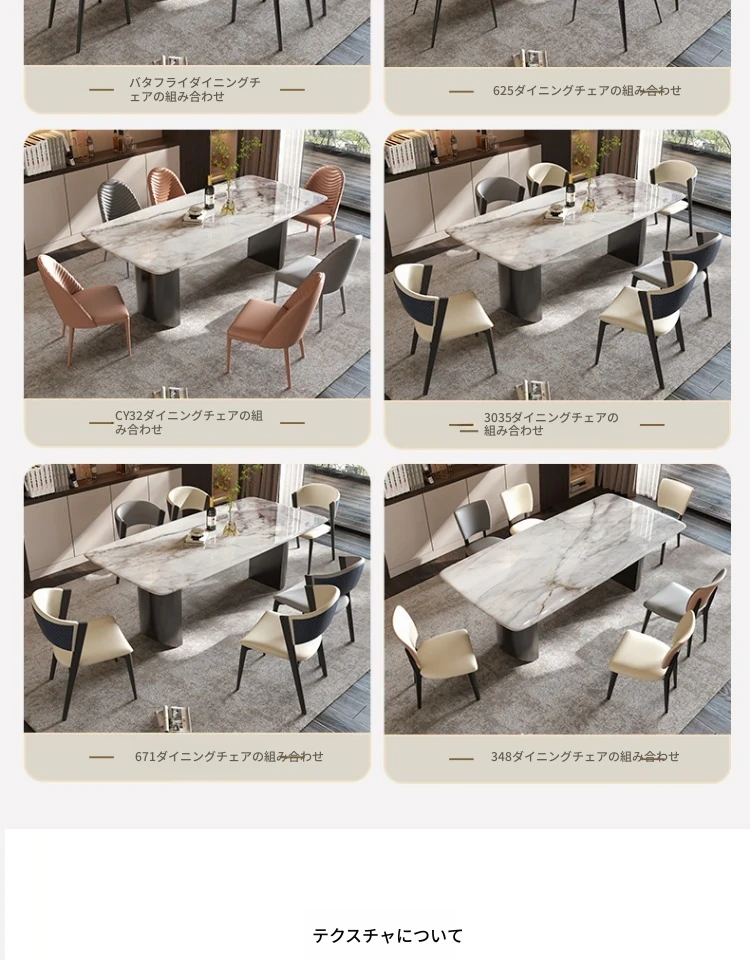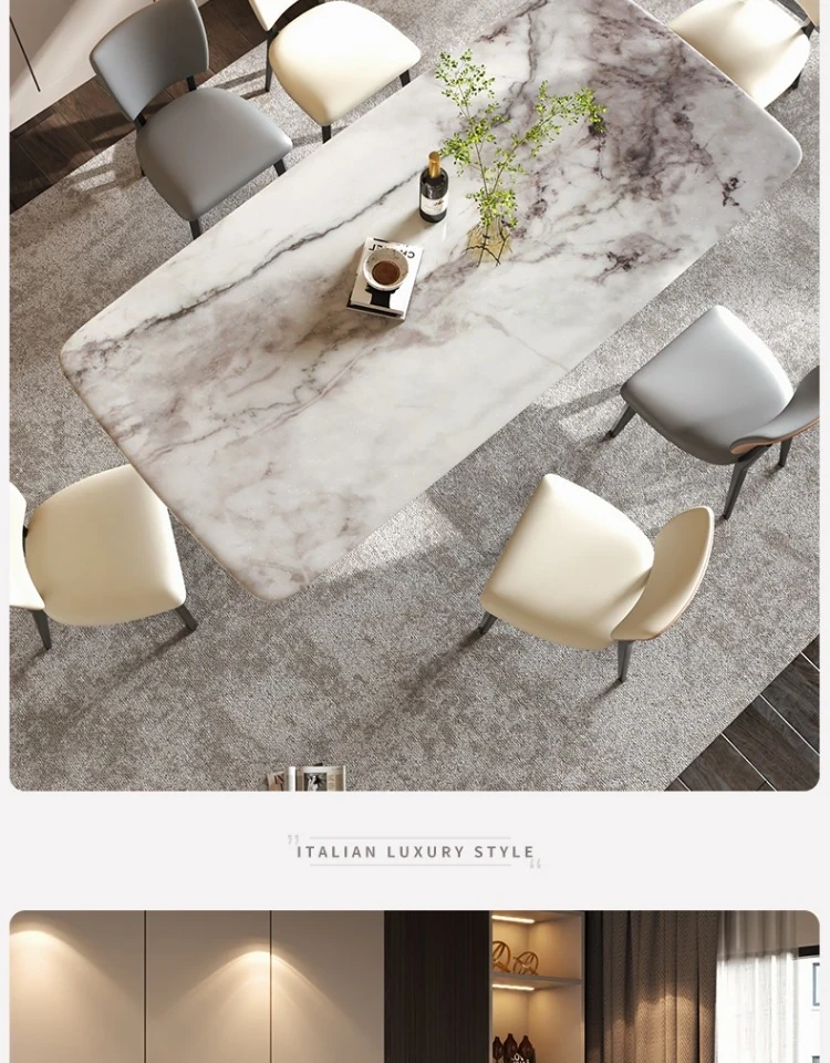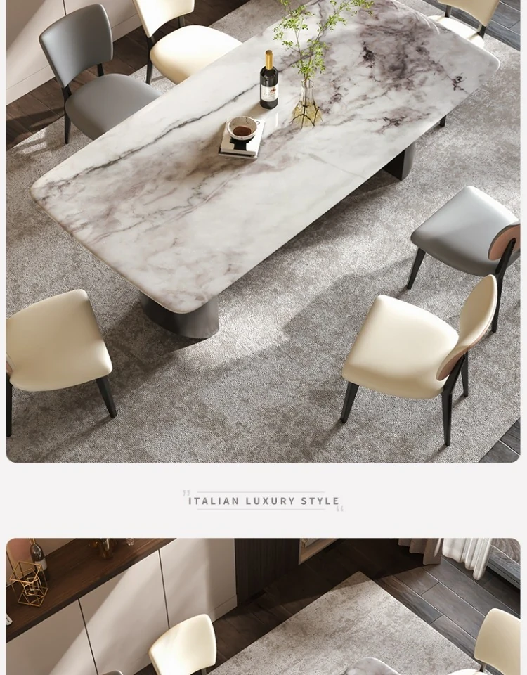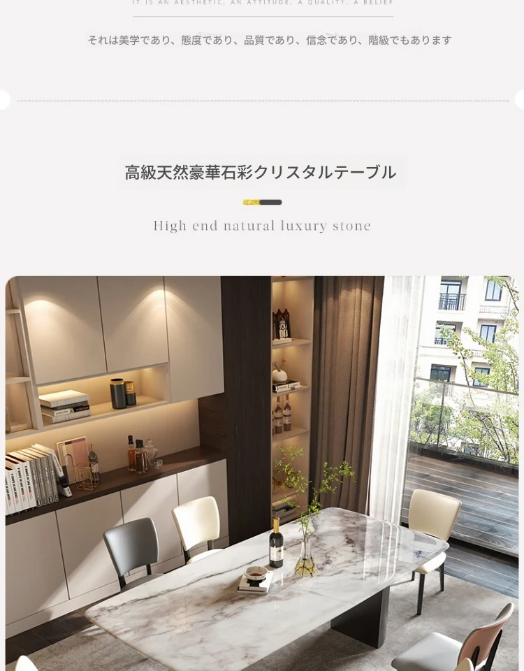 イタリアンラグジュアリー風の天然カラージェムストーン大理石製の高級感あふれるミニマリストデザインの長方形ダイニングテーブル&チェアセット