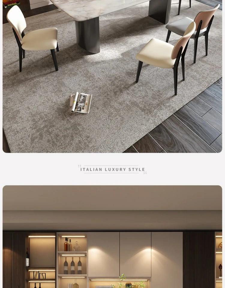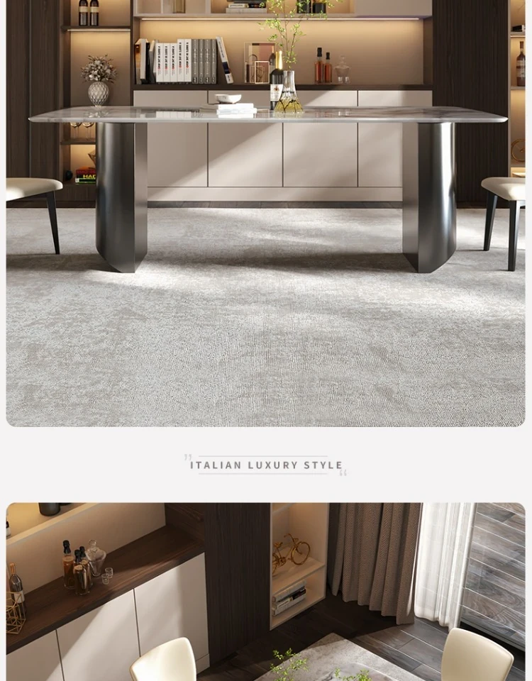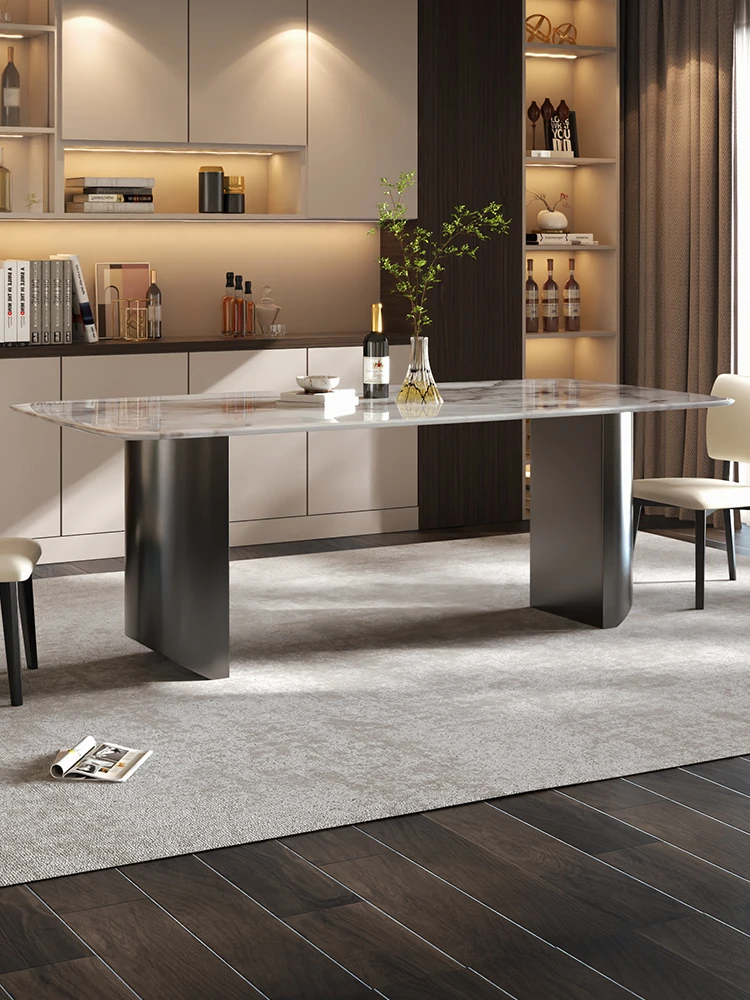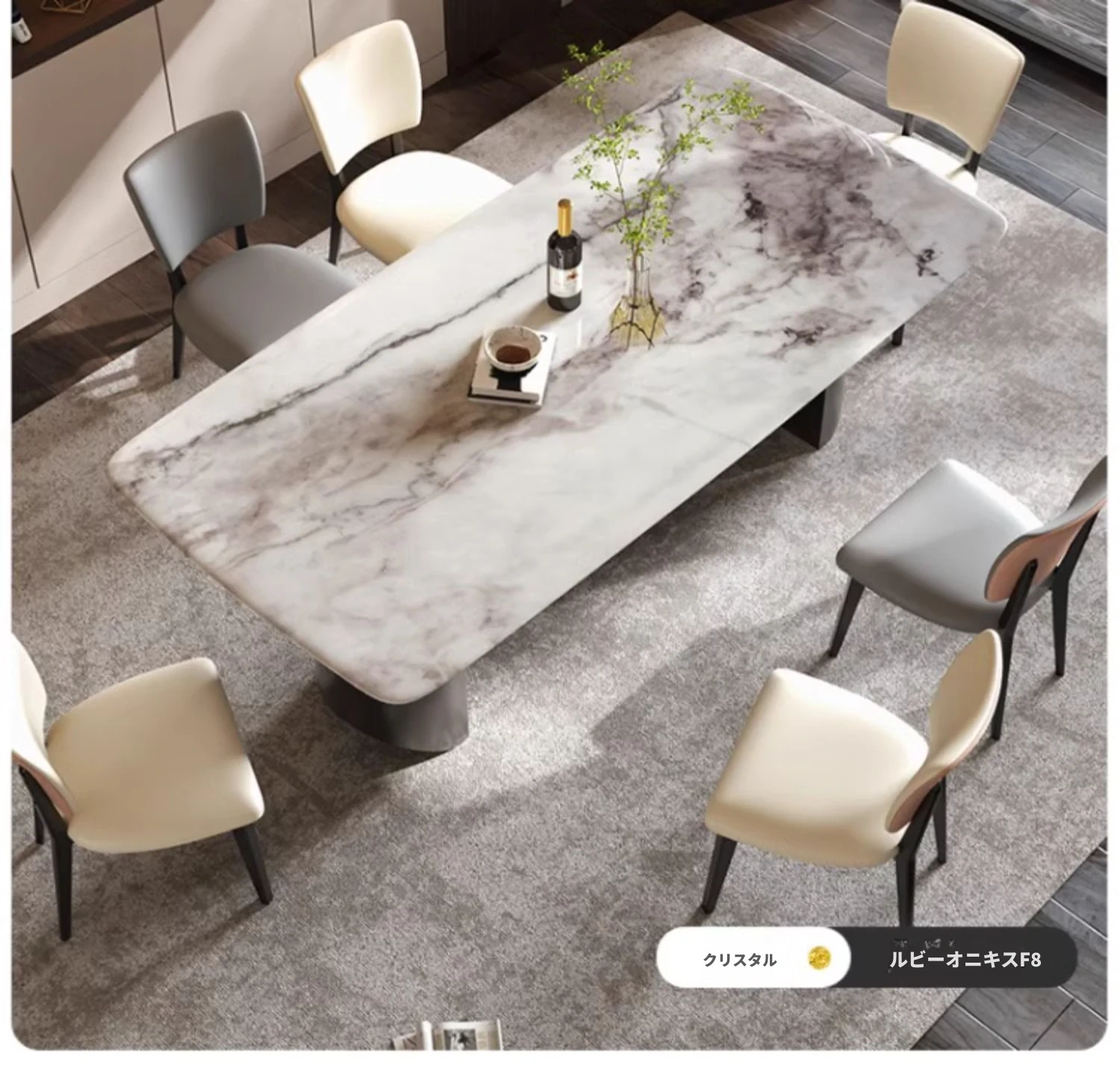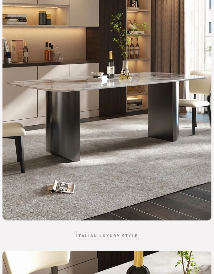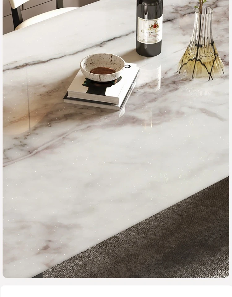 イタリアンラグジュアリー風の天然カラージェムストーン大理石製の高級感あふれるミニマリストデザインの長方形ダイニングテーブル&チェアセット