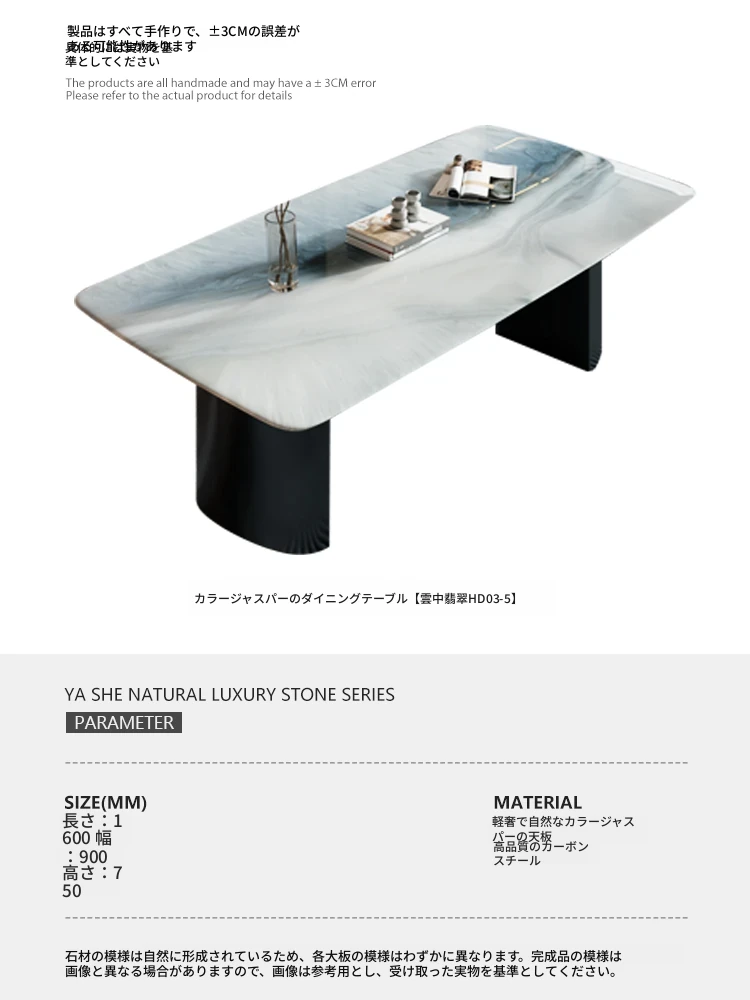 【ラグジュアリーストーン-天然カラージェムストーン】1.8*0.9m単品テーブル