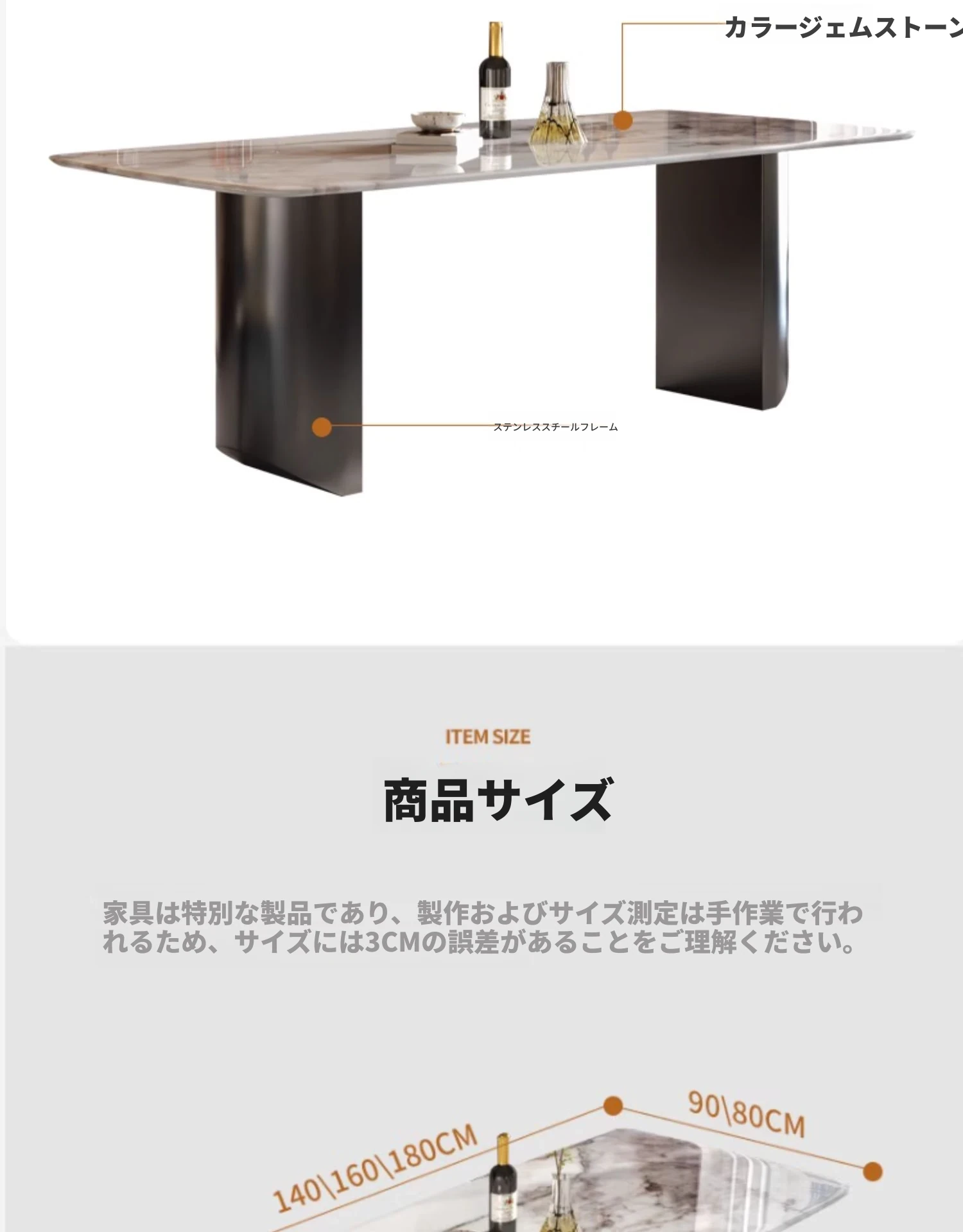 【ラグジュアリーストーン-天然カラージェムストーン】2.4*1.0m単品テーブル