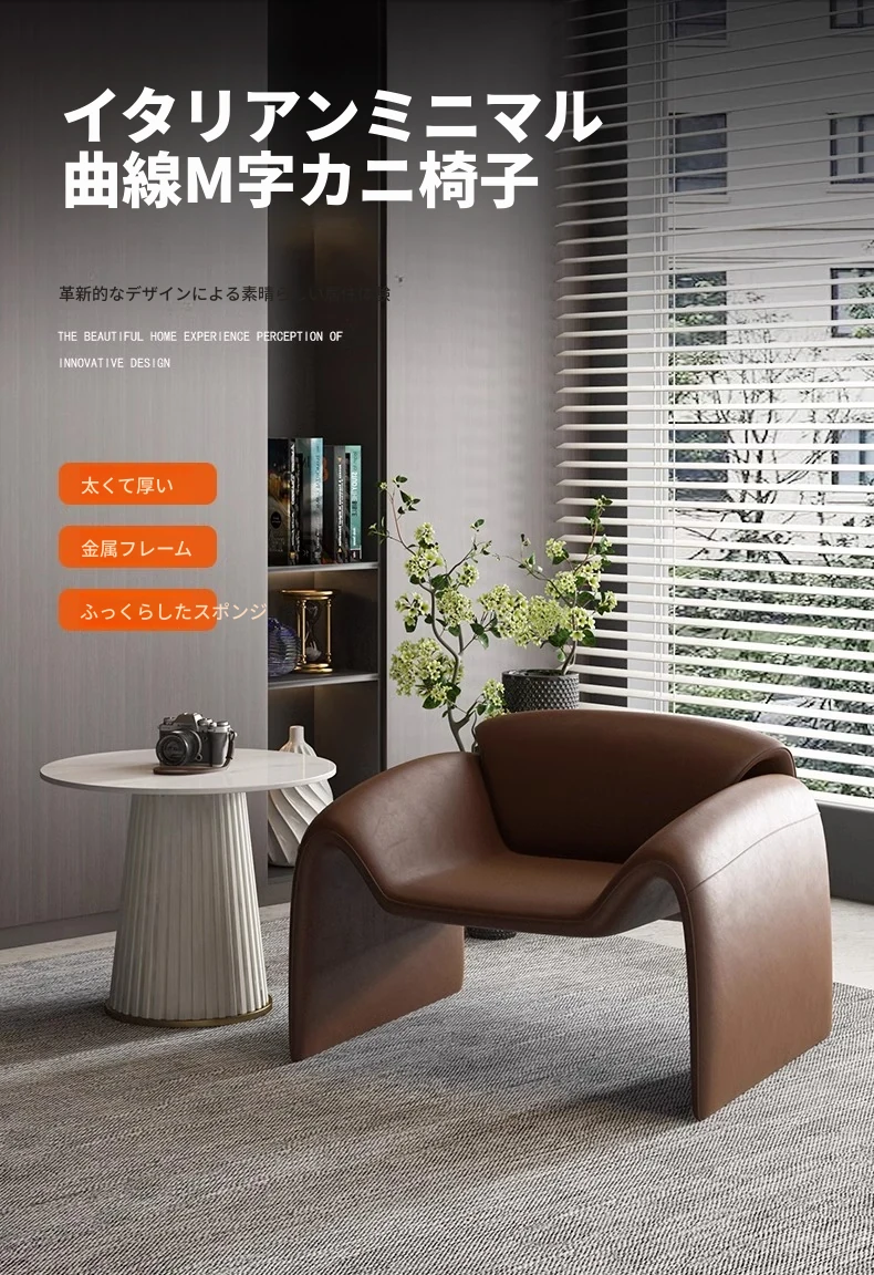 イタリアンミニマリストデザインのクリエイティブなM字一人掛けソファチェア - リビングにぴったりな個性的なカニ型チェアとトラ型チェアで、心地よいひとときを演出!