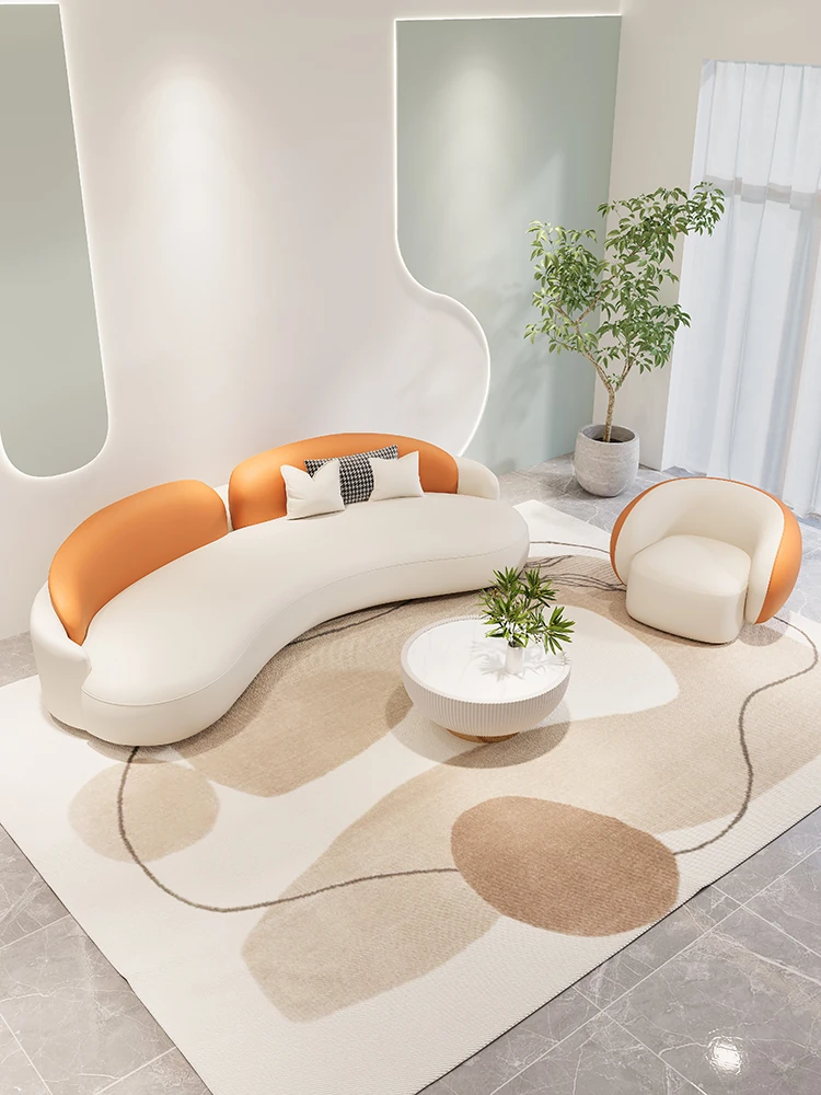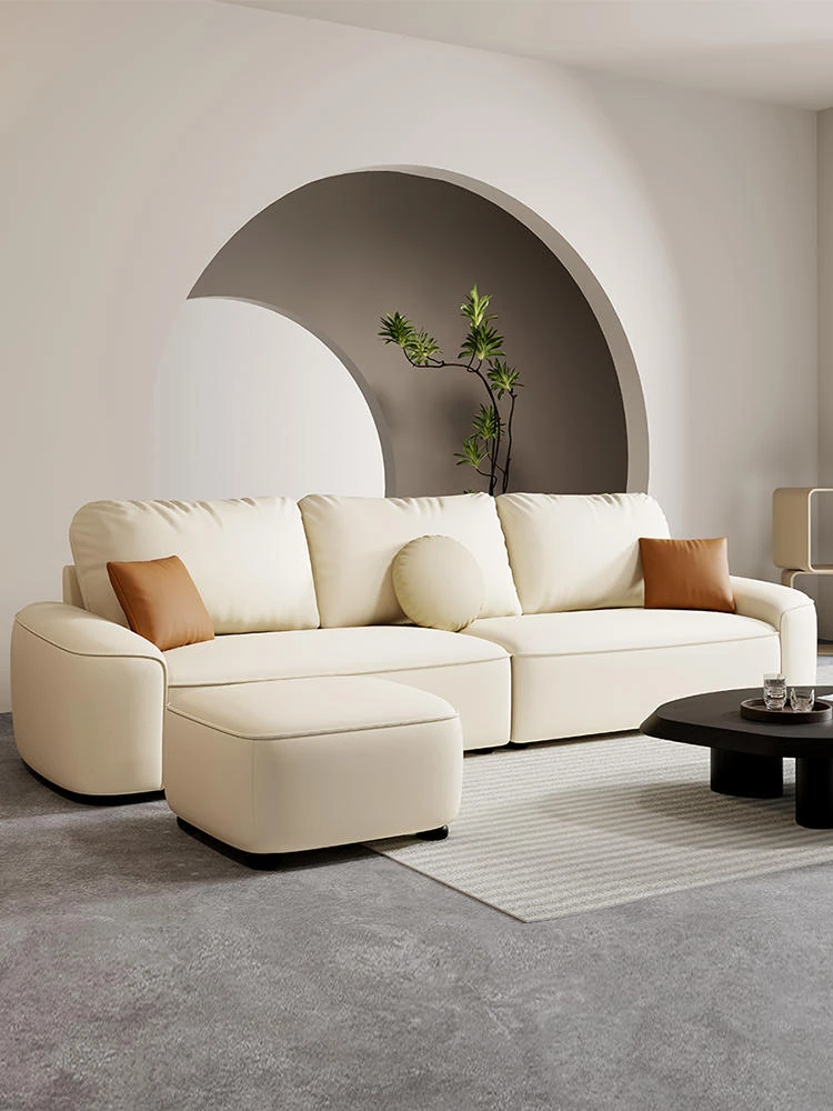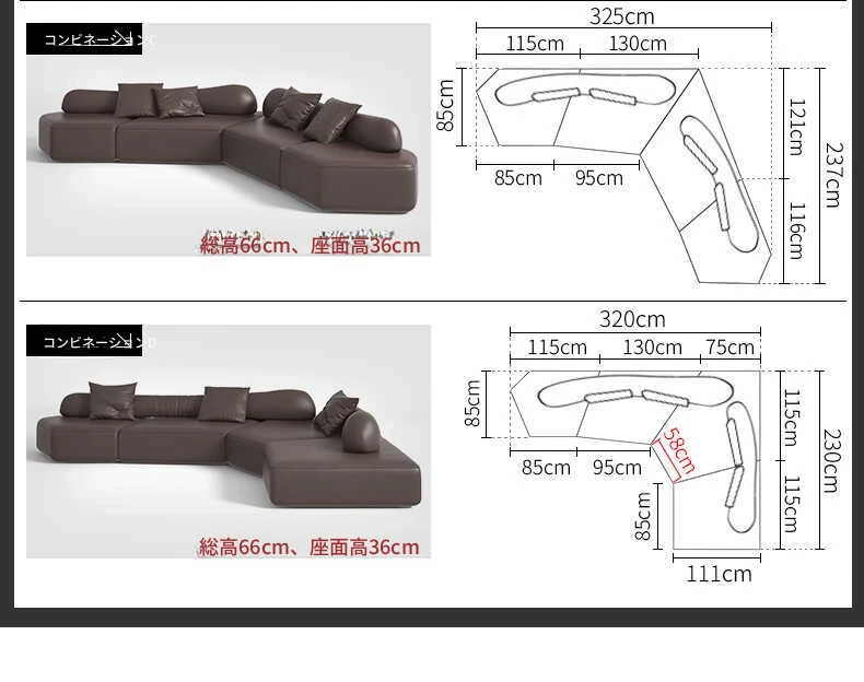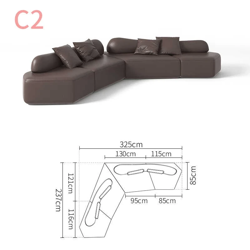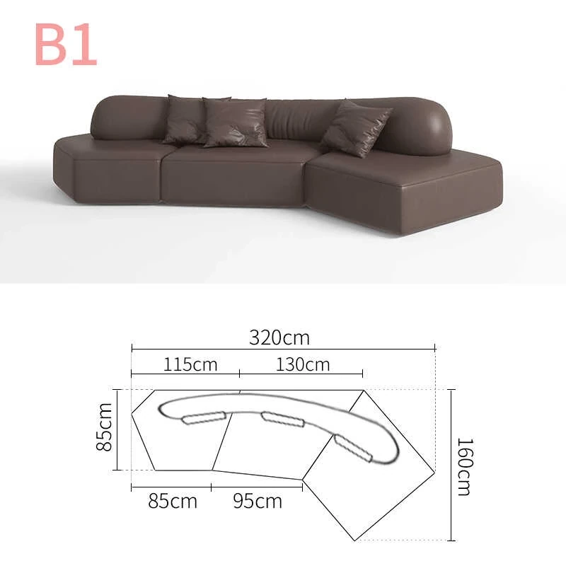 イタリアンミニマルデザイン 本革使用 モダンリビング用 コーナー型ユニークソファ 小型バージョン デザイナーズアイテム 高級感あふれるスタイルでお部屋を彩ります!