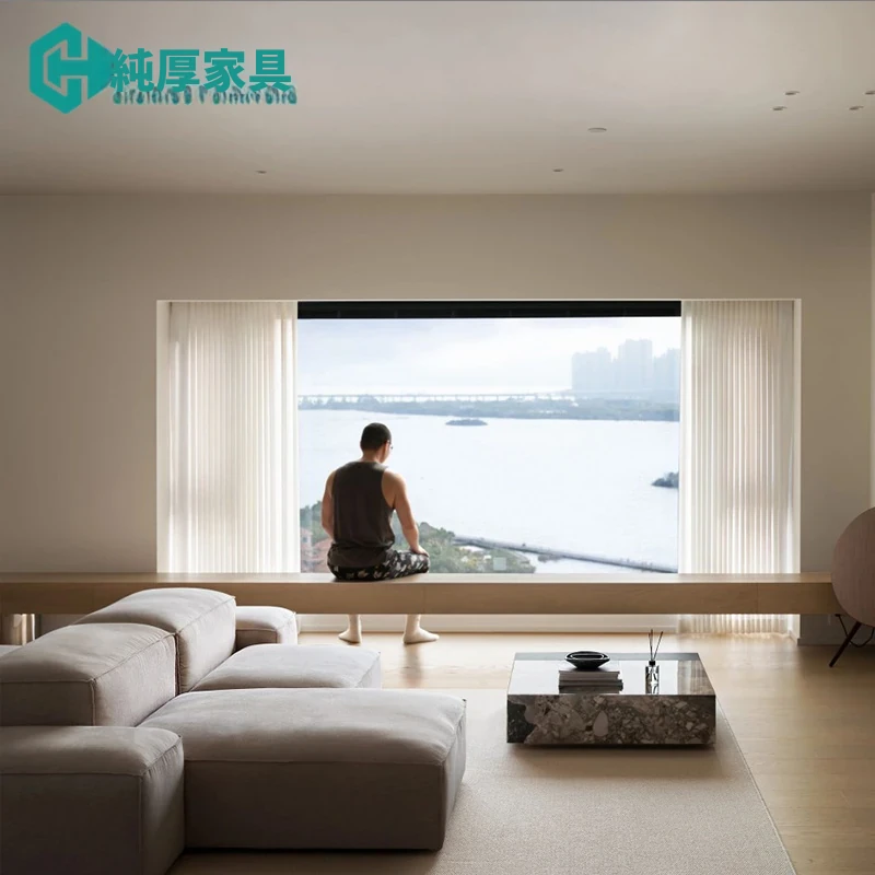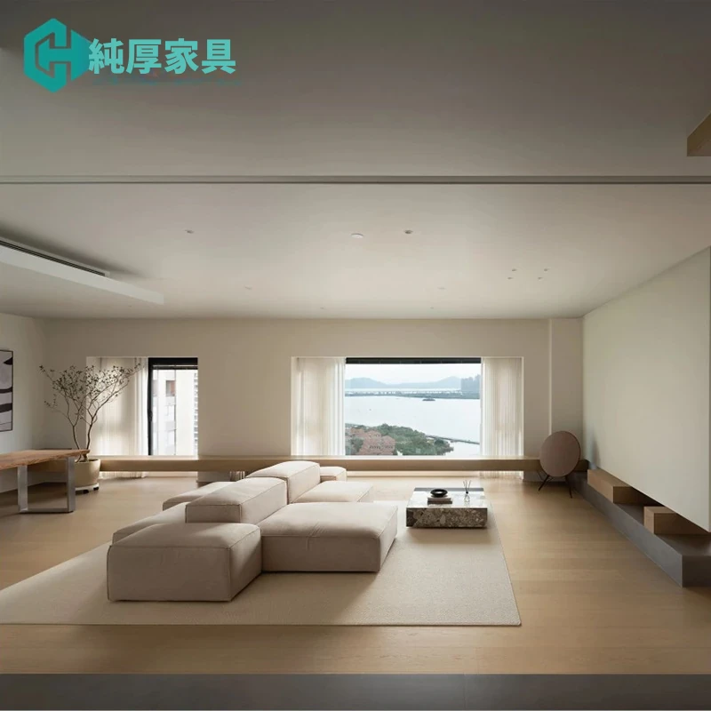 イタリアンミニマルスタイルの豆腐ブロックソファ|ホテルやリビングにぴったりな直列モジュラーコンビネーション|両面使用可能なファブリック&レザーソファで、スタイリッシュな空間を演出!