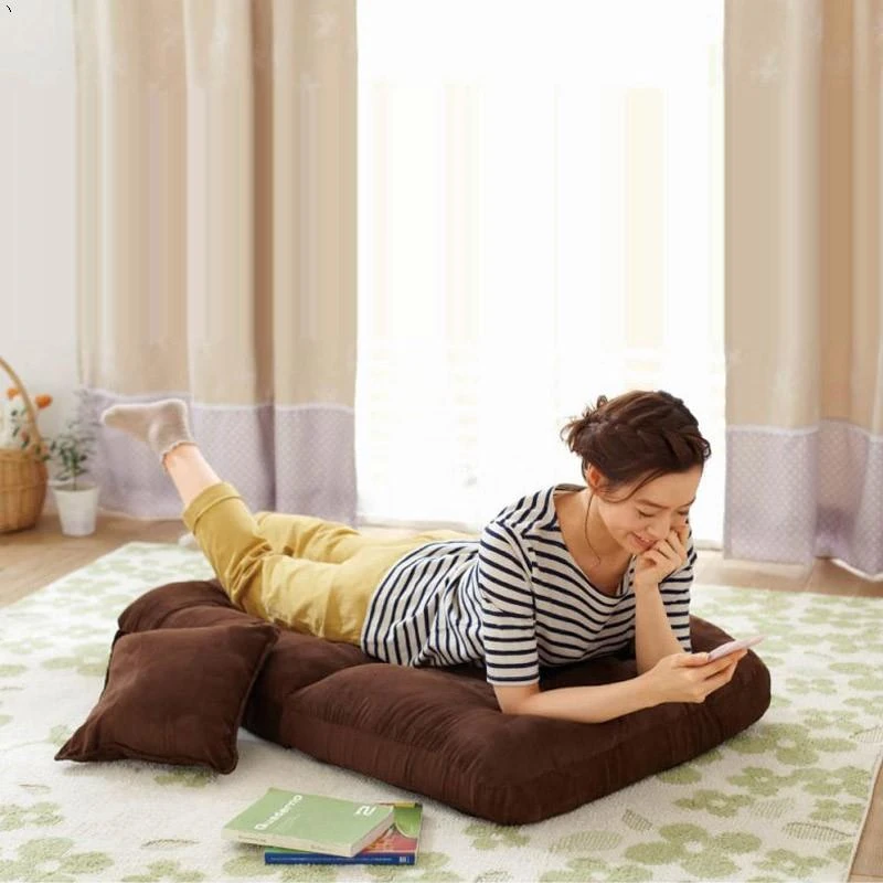 布製の快適な一人用ソファ - 寝室や寮にぴったりな折りたたみ式畳スタイル!背もたれ付きで、足のないデザインが窓辺でも使いやすい!リラックスしたひとときをお楽しみください。
