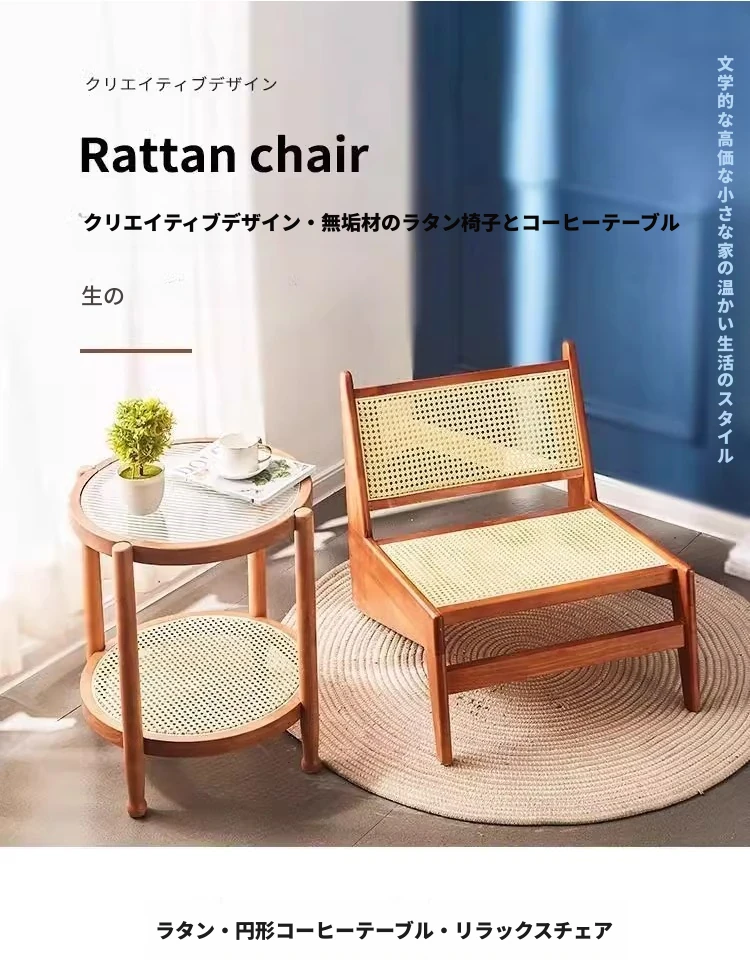 和風リクライニングチェア|北欧スタイルの民宿にぴったり|ラタン編みでおしゃれ&快適|バルコニーやリビングに最適な一人掛けソファ|リラックスしたいあなたにおすすめ!