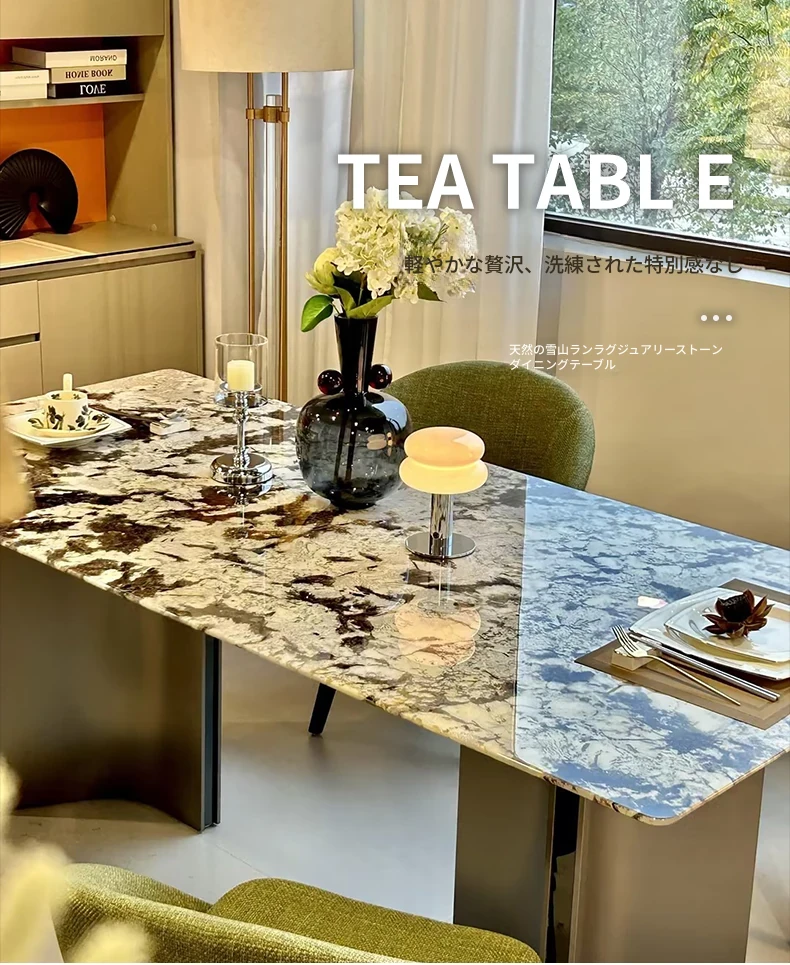 加澄の天然雪山ランセラミックテーブル - イタリアンラグジュアリー、ハイエンド別荘スタイルの高級感あふれるダイニングセット。天然石の魅力を引き立てた美しいデザインで、特別なひとときを演出します。