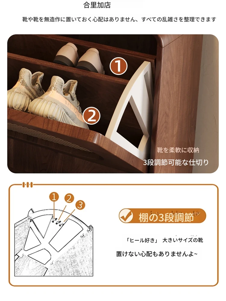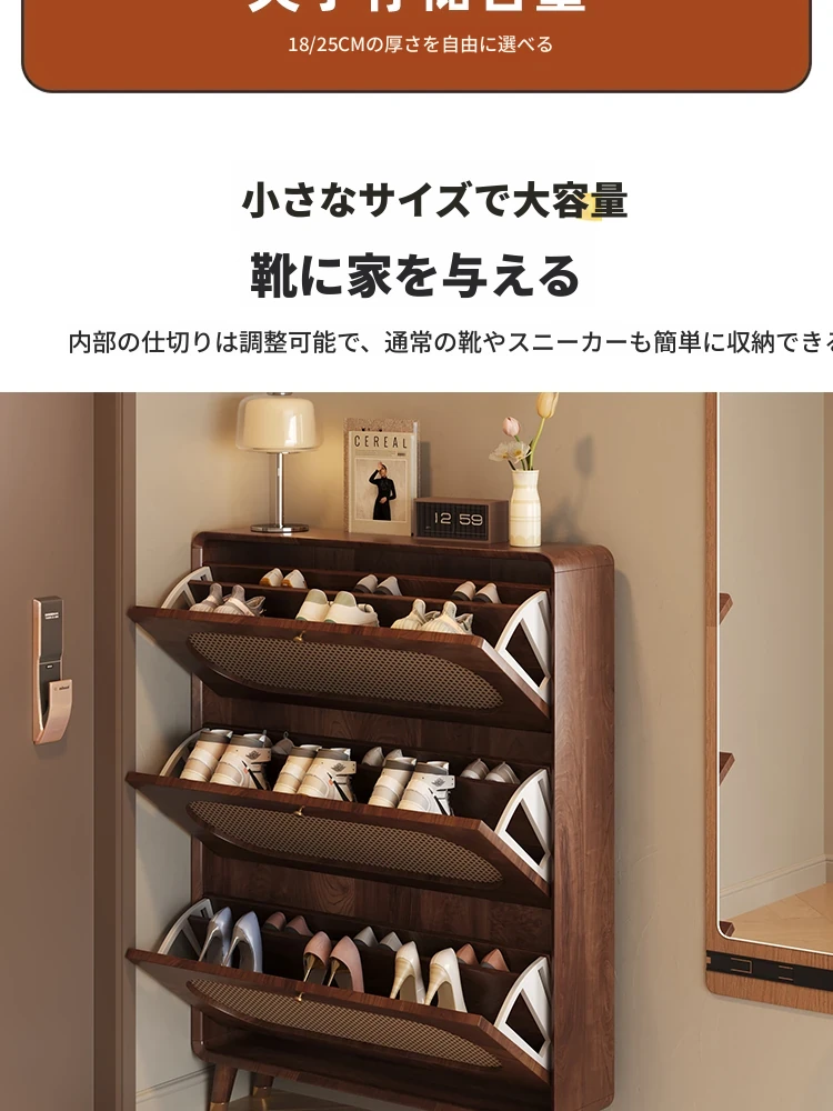 超大容量シューズキャビネット - 多層収納でスッキリ整理!壁に寄せて設置可能、玄関や家の入口に最適な分けられた棚で靴をスマートに収納。家族みんなの靴も楽々整理!