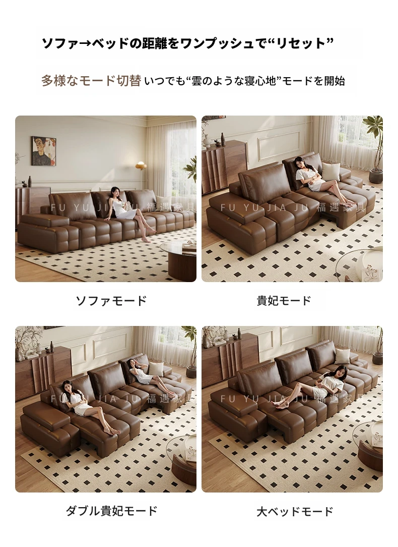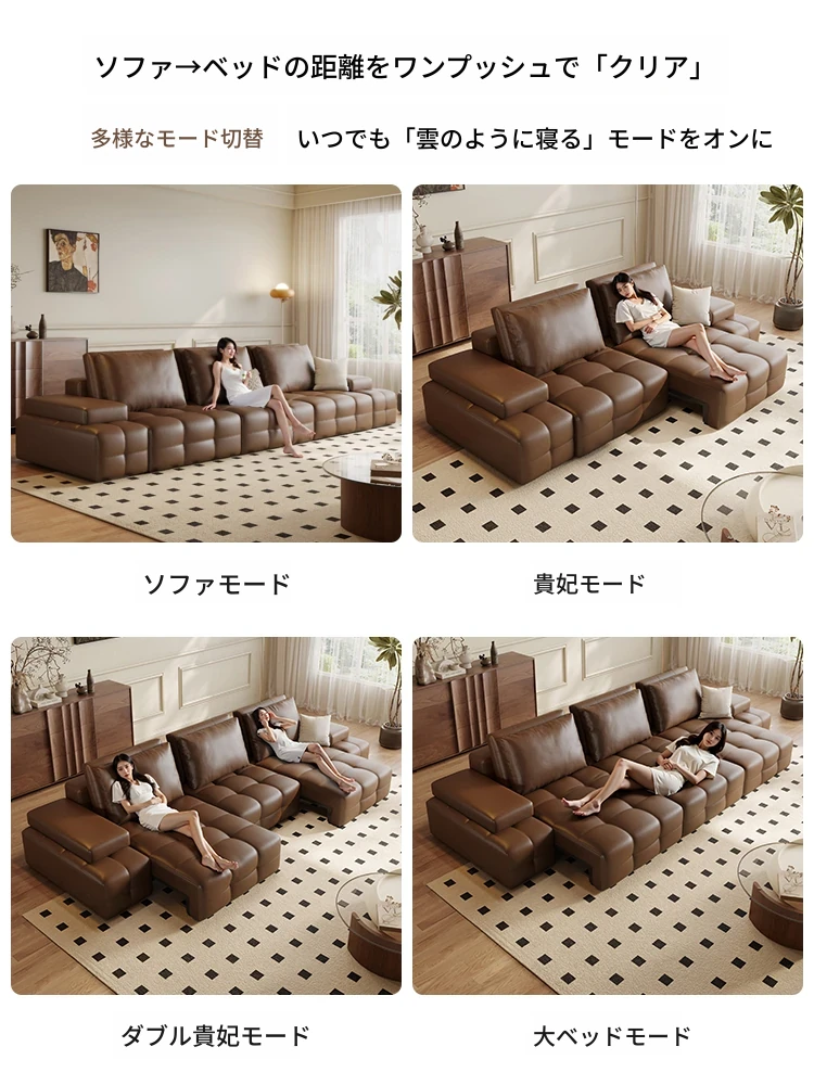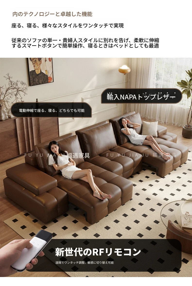 ローレンス本革電動ソファ・ファーストクラスのソファベッド、全自動伸縮機能付き、イタリアンヴィンテージデザインのリビング用ソファで快適なひとときを!