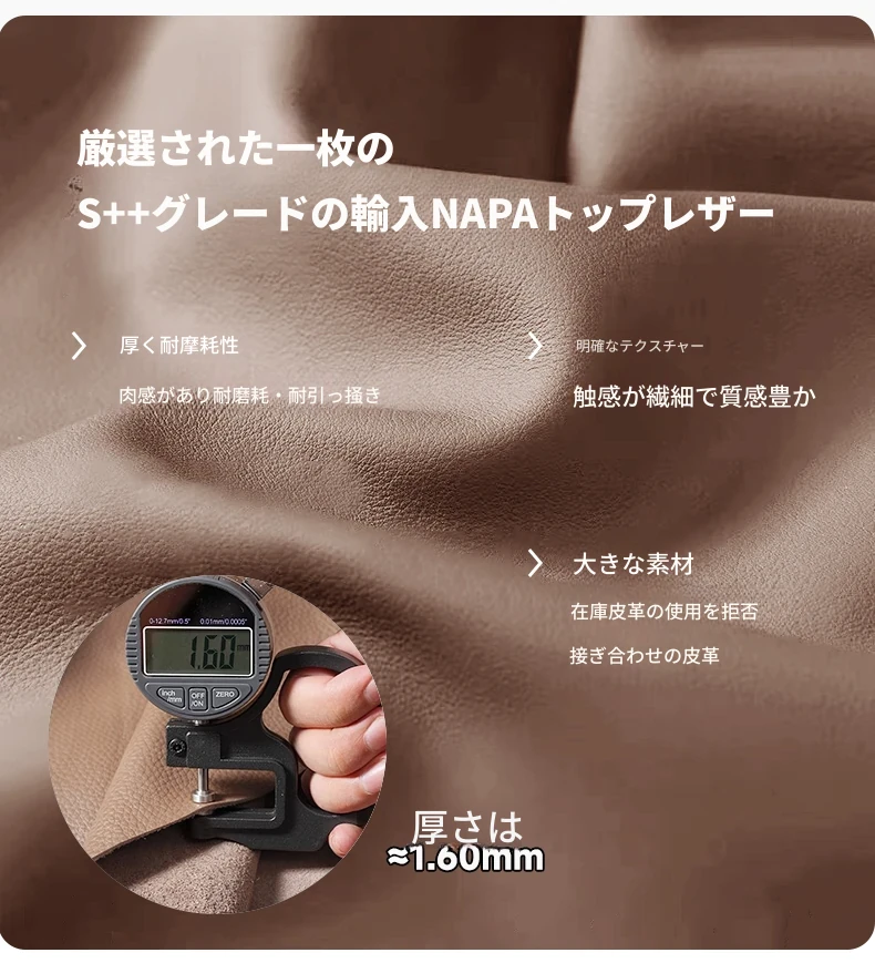 【接触面:S++級輸入NAPA頭層黃牛皮+乳膠款】